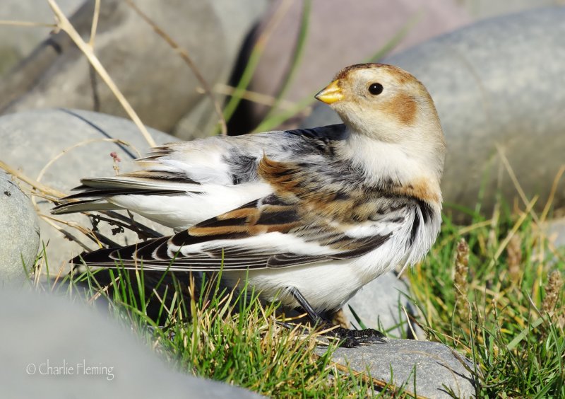 Snow Buntings have been quite easy to find in Devon this winter and we have had them both in North Devon near to Bideford at Sandymere where this picture was taken in October, and also a nice bird on the beach at Budleigh Salterton.