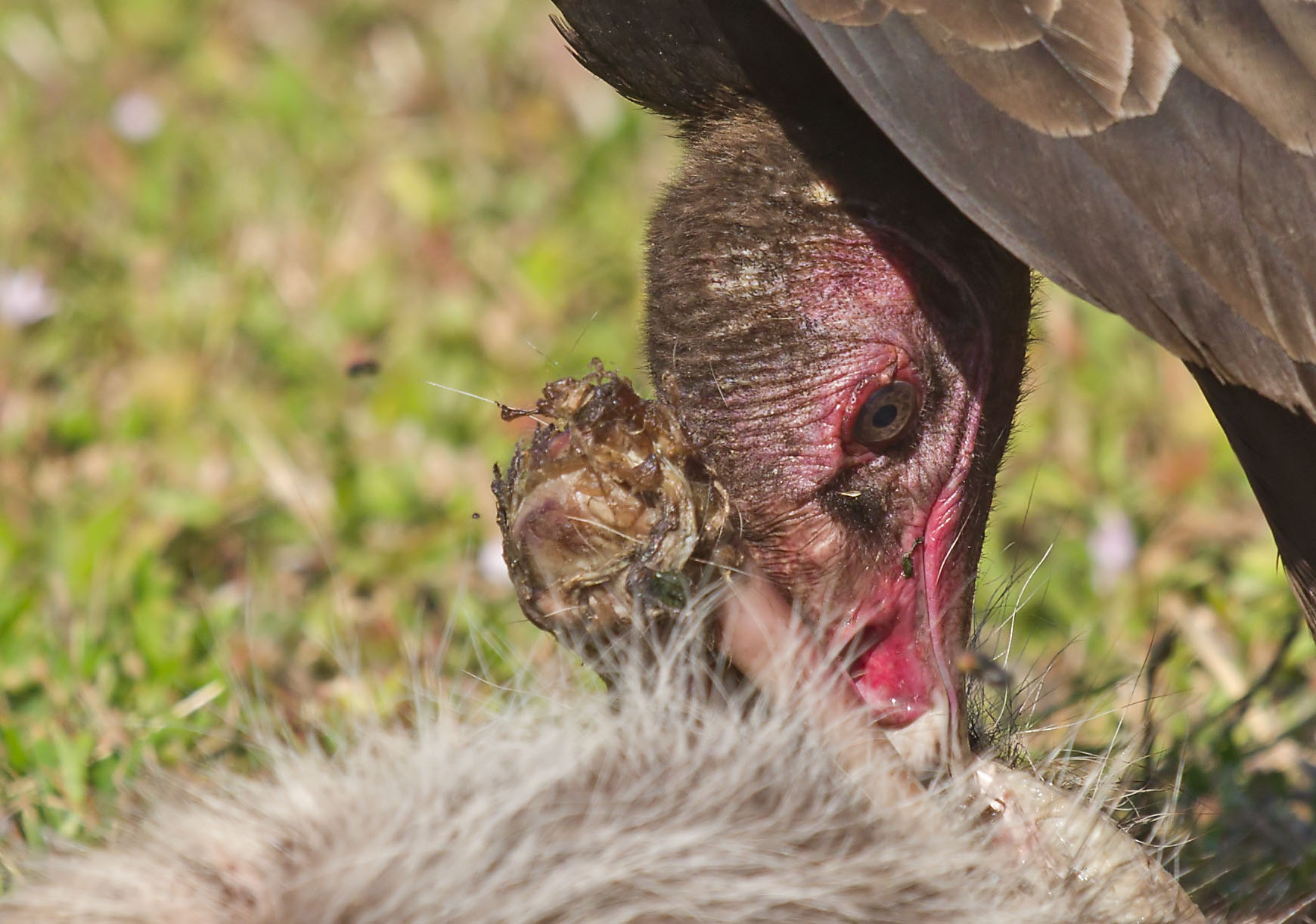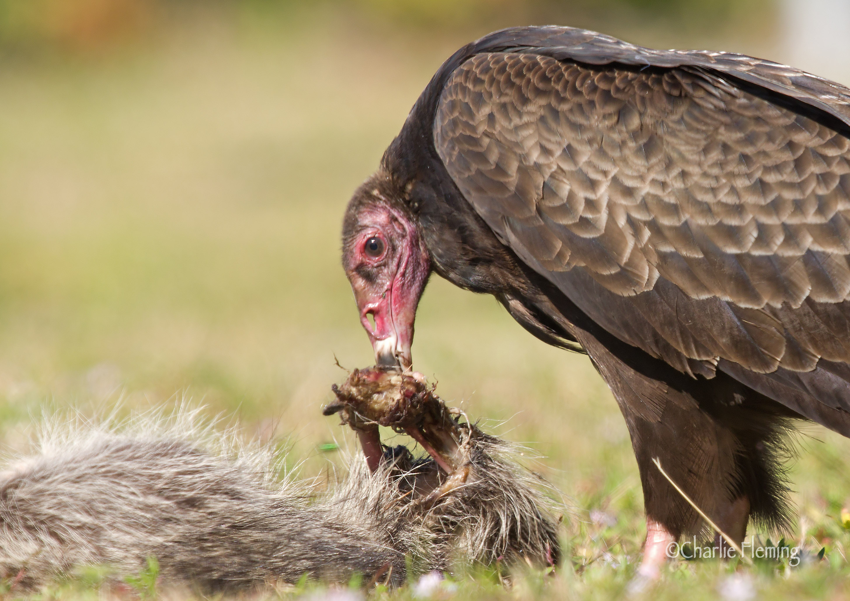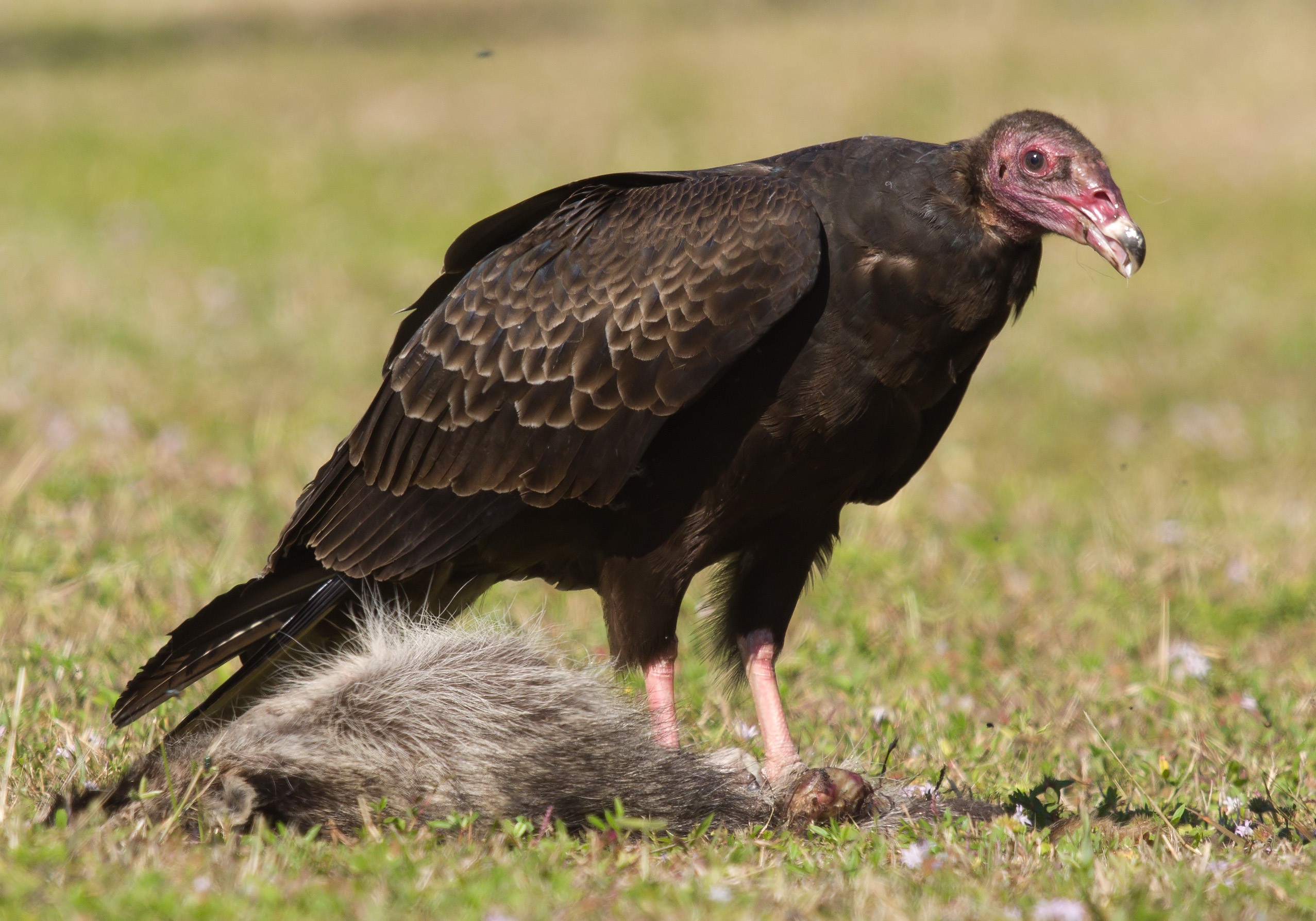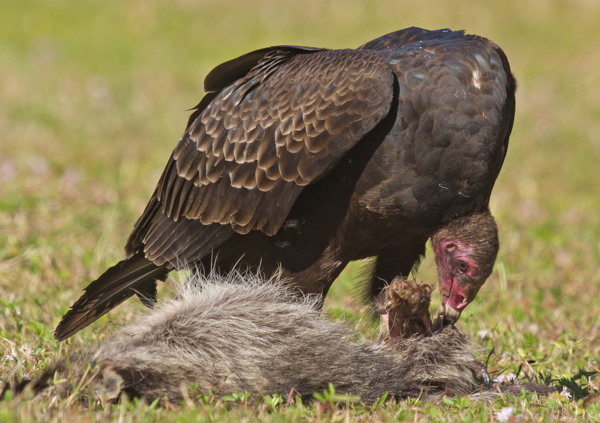 Turkey Vultures are not in the least bit hard to see in South Florida, they are in fact one of the most noticeable birds. Never the less I have rarely been as close to them as I was today. Being Sunday and a really nice day to boot, the beaches and beach car parks were very busy. As we drove down one of the main roads close to home, I noticed…… well it was impossible to miss…… a Turkey Vulture feeding on a dead racoon. It wasn't going to be distracted by me and I got really close, too close really because the smell of the rotten carcass was almost too much too much to bear. It may be an ugly bird around the face but the plumage is impressive. They are doing a great job keeping everything healthy and clean by eating road kill and other rubish.