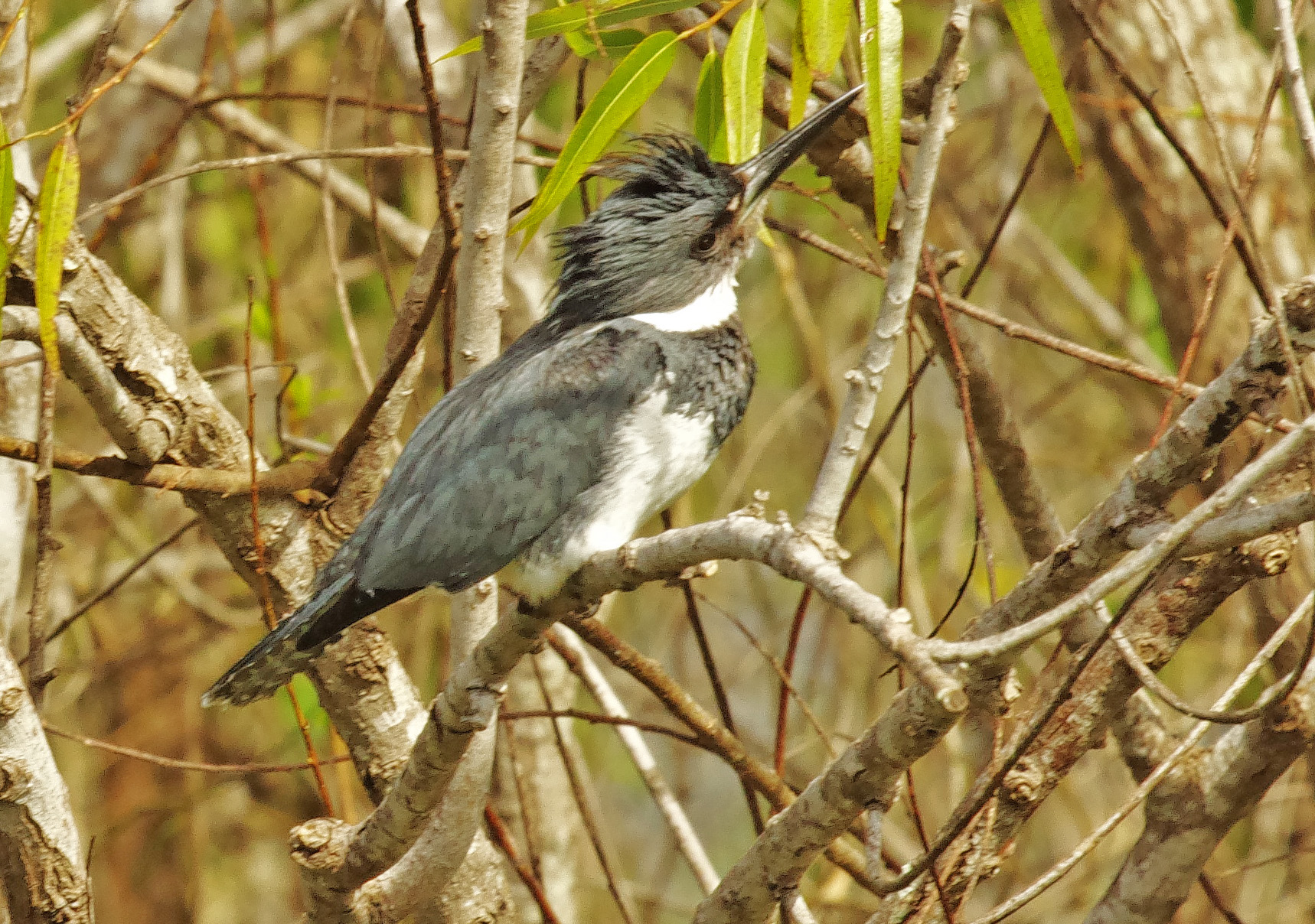 One particular big specimen was oblivious to us, or though it seemed. I put that down to the coolish temperatures because on the return an hour later, when he had warmed himself out of his lethargy, he scurried back in to the water when we approached. The trip finished with a close encounter with a Belted Kingfisher (Megaceryle alcyon), Florida's only kingfisher species. They are twice the size of Europe's Common Kingfisher (Alcedo athis) and frankly nowhere near as attractive but their habits are pretty similar. This was the closest that I have ever been to a Belted Kingfisher but it was unfortunate that we approaced it in to the sun and therefore it was almost impossible to photograph, however minutes later the bird was senn again in a more advantageous position and I managed to get at least some kind of shot.