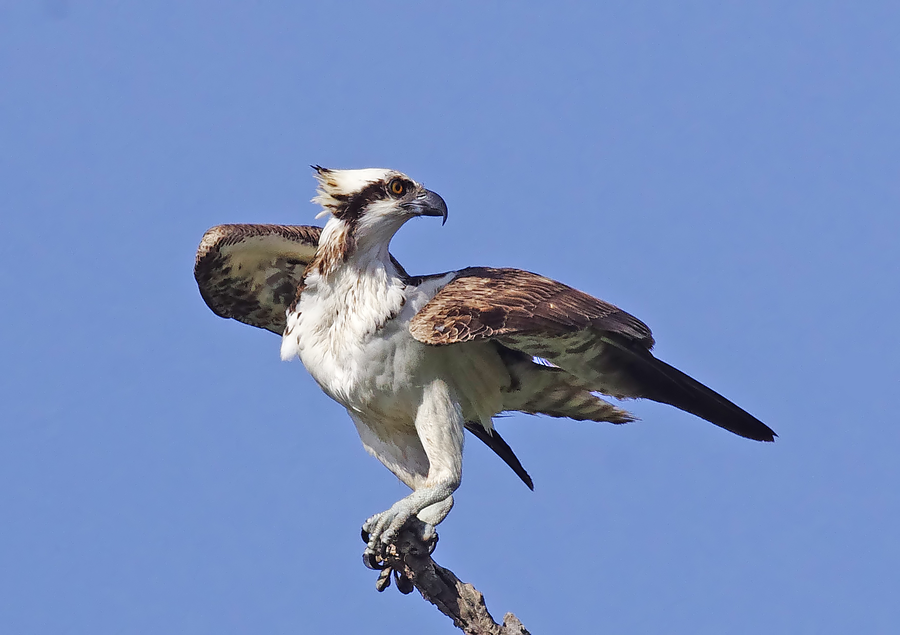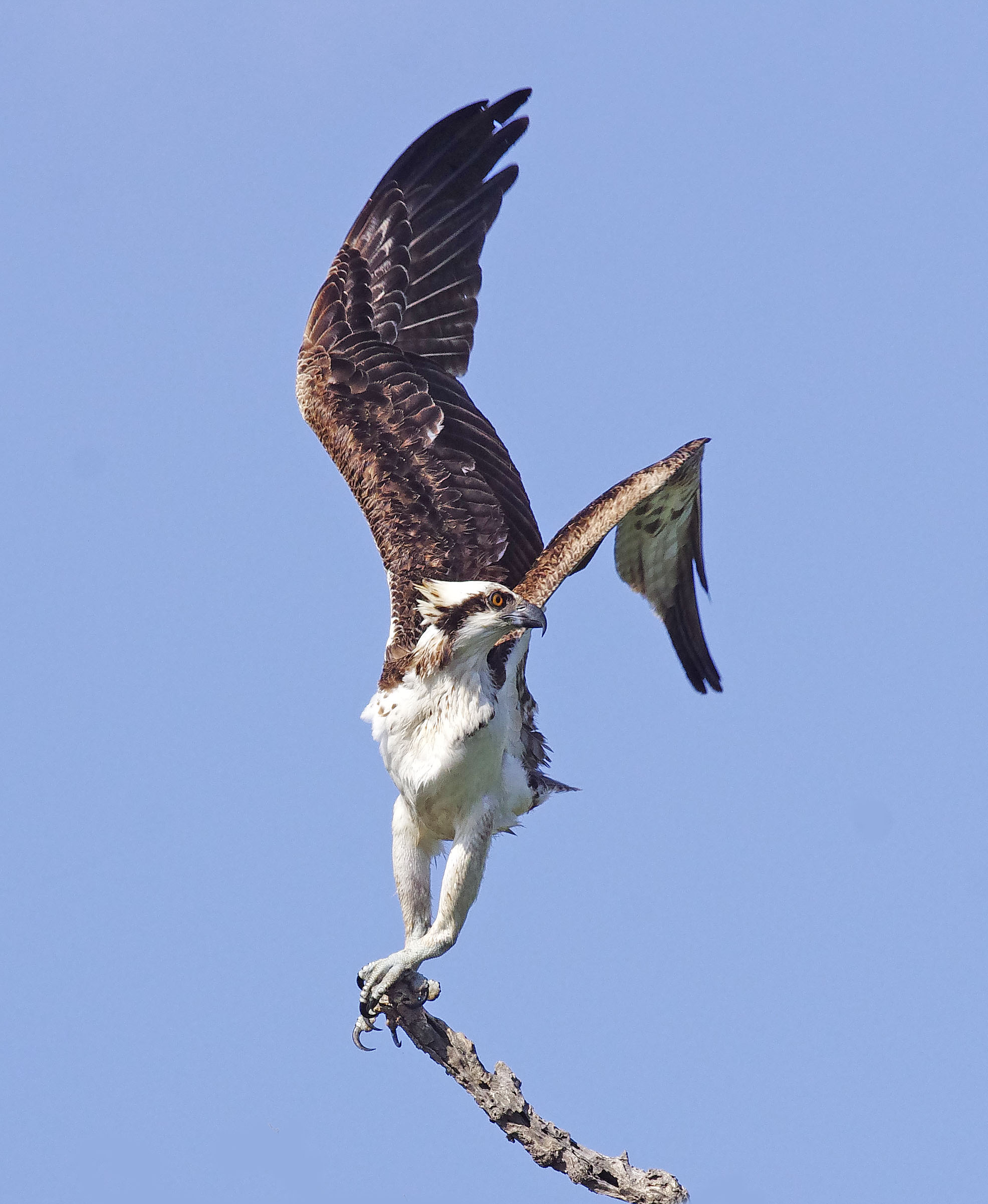 A quick update to include these shots of the Osprey that I have been watching since I got here in the US. I have learnt that between 9 and 10 most mornings it perches on the same exposed dead tree trunk. This morning I concealed myself under the bridge close to the stump and waited……waited and waited some more for it to come. Eventually after around 2 hours there it was. Very quickly it flew from that perch to another and in absolutely perfect light. I have been trying to get that glory shot as it dives in the water. It almost happened today but not quite. She….. I just have a feeling that she is female…… left the perch after seeing something and plunged in to the water just behind my line of sight and then she emerged and flew past me carrying a large mullet. It was a magnificent, awe inspiring sight and one that I will never ever forget.She flew past me with the fish and then shook herself in mid-flight like a dog would shake to dry itself. A wow is in order at this point!