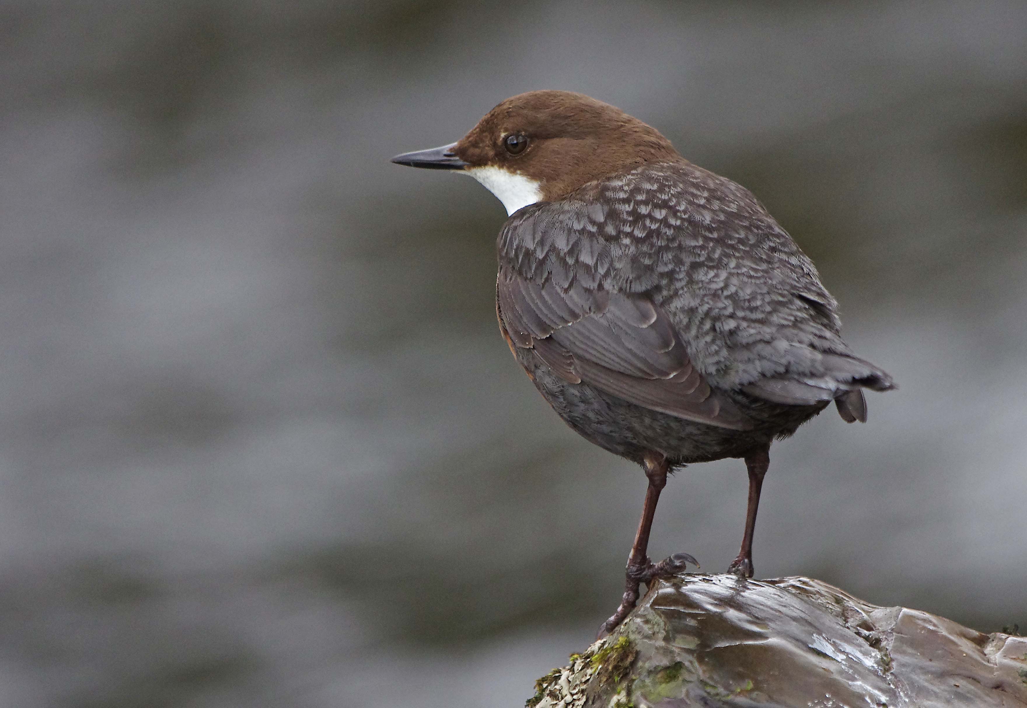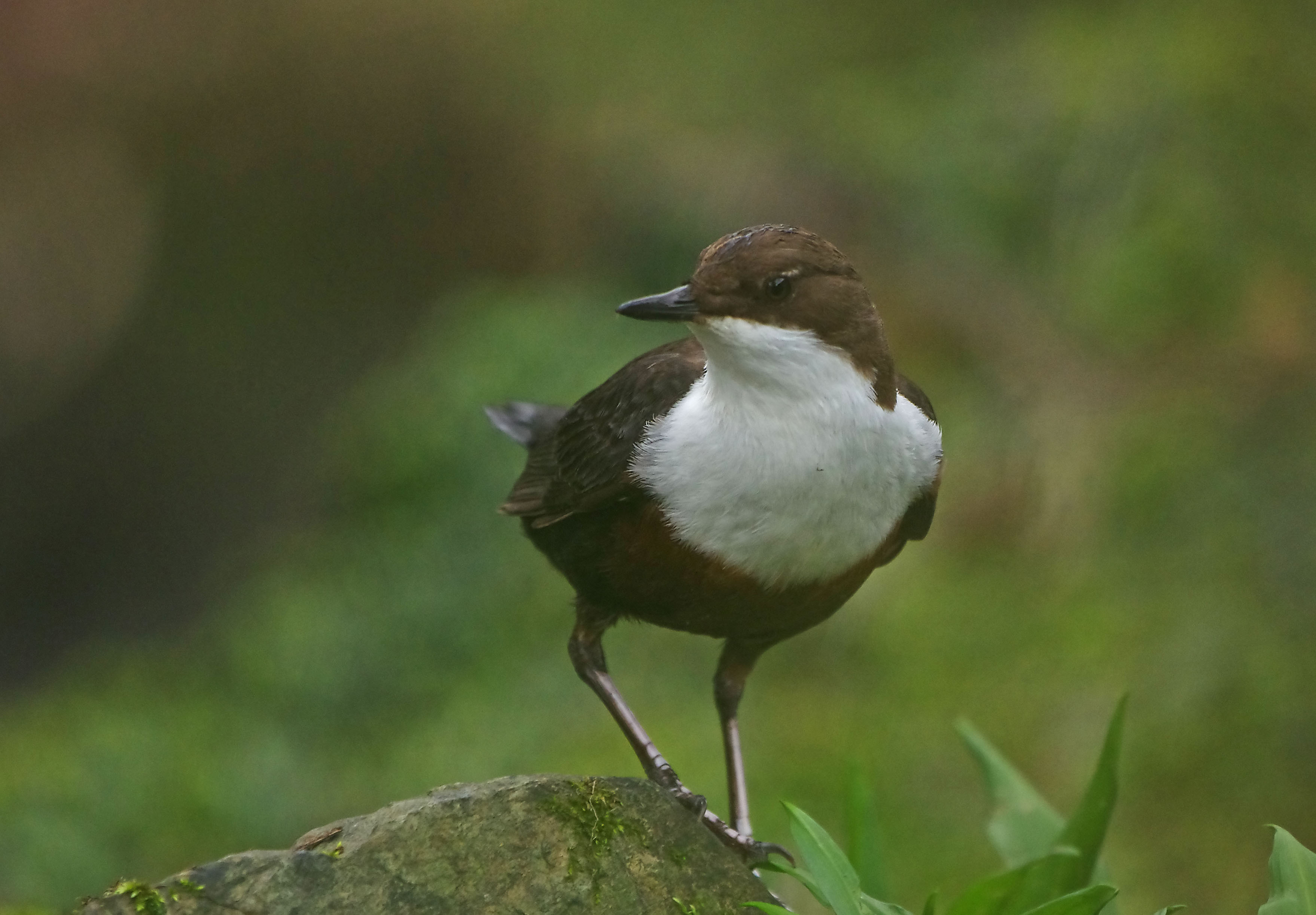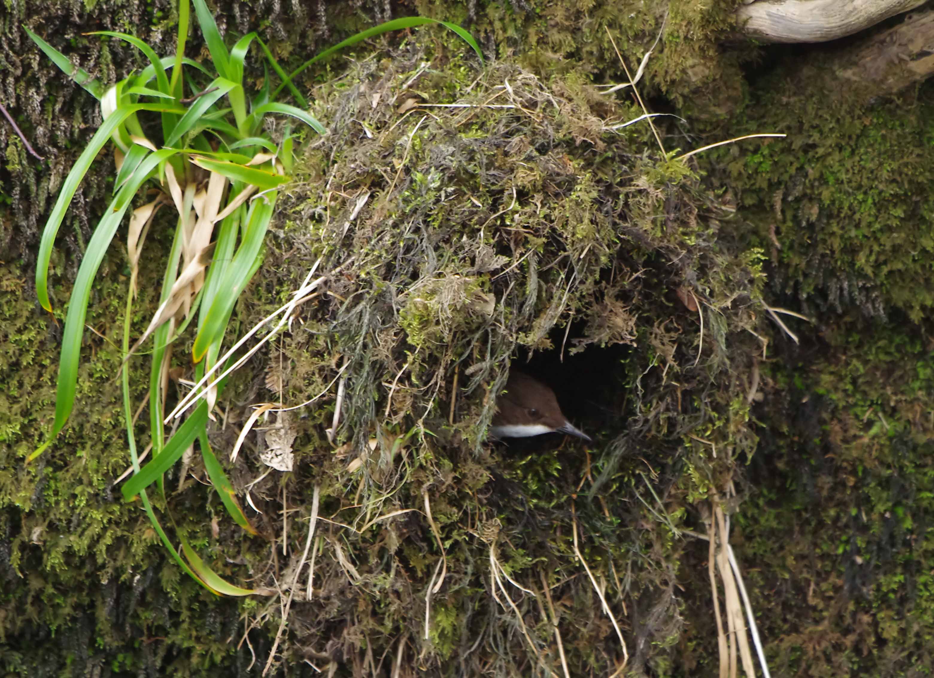 Once inside the nest I could hardly see the birds because the external structure is now a complete ball with just a smallish entrance hole. There was a definite calming of intensity with birds carrying material to the nest but not in the frantic way of previous days. The nest seems to be nearing completion now and it's going to be interesting to see for how long they continue adding the final touches. As I watched one of the pair in the nest I couldn't help admire the perfection of it. When I built the hide opposite I had disguised it with leaves and moss, hoping that it would be undiscovered. The Dippers had done exactly the same thing, building a camouflaged nest disguised with moss and leaves, albeit instinctively but in a way, the end result was the same. Because of that, I felt some kind of real connection with the birds today. It's going to be difficult to assess the commencement of egg laying. I will not want to cause any disturbance whatsoever so I will not be investigating the nest. I am developing a real fondness for this pair of birds that have given me so much pleasure already and I feel a real sense of responsibility for their welfare.