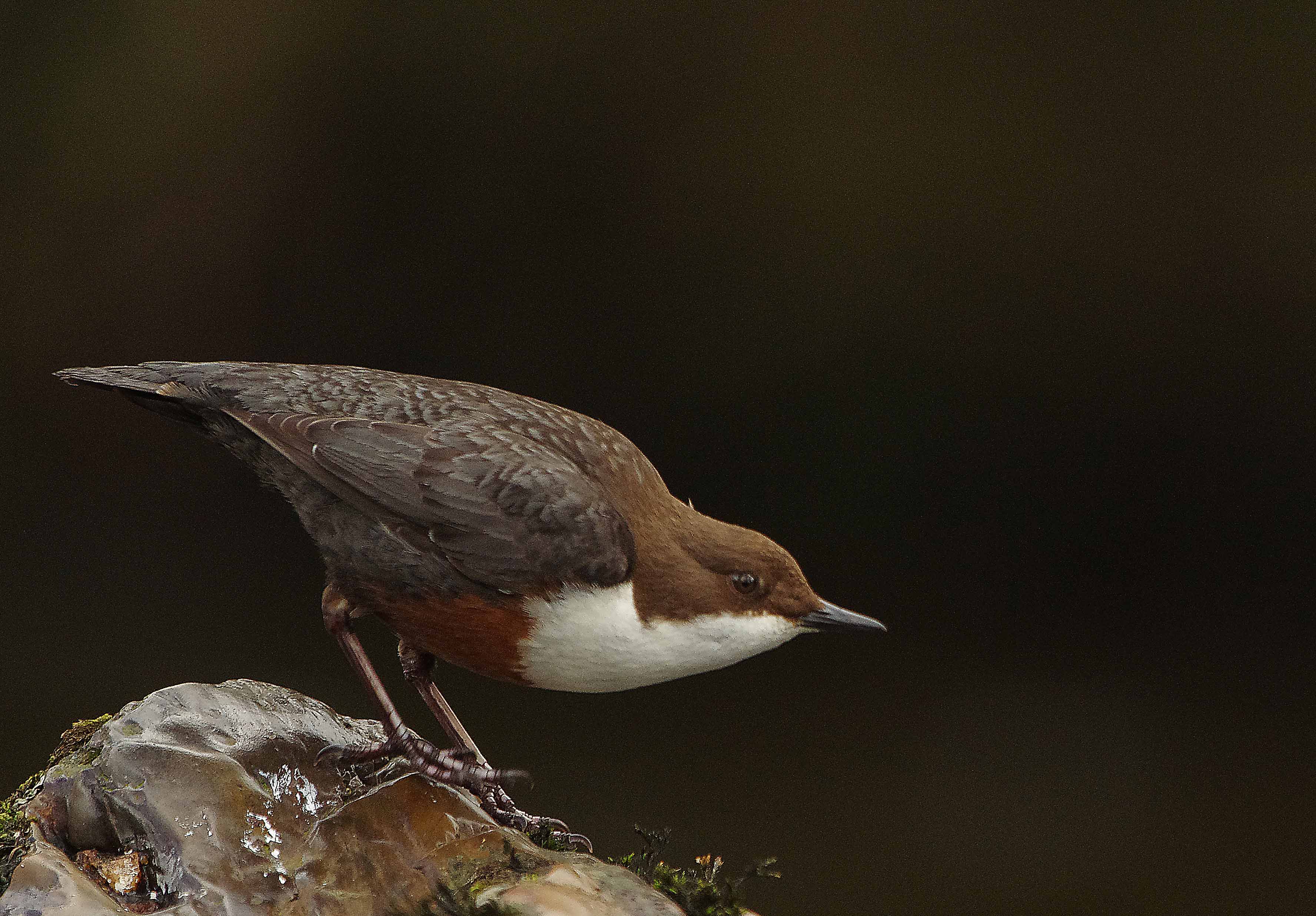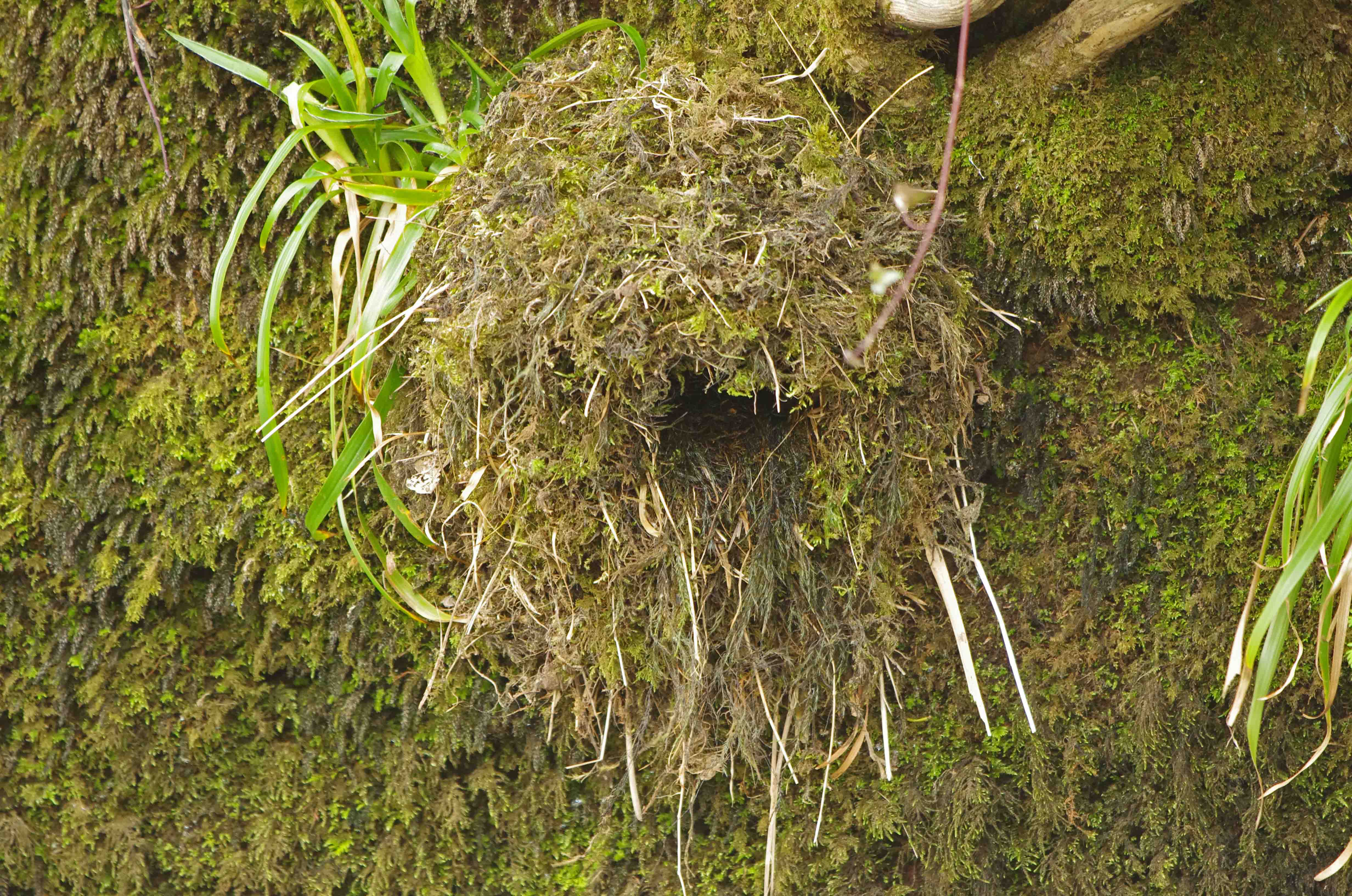 He seemed to encourage her in to the nest a couple of times, excitedly singing as he flew in before she flew in after him. I could then hear singing from inside the nest, again I suspect that mating took place inside the nest. I need to undertake some research in to this. As as yet I have not been able to find any information that this takes place. On another occasion the male went in to the nest without a leaf and then immediately flew out again with a leaf which he dropped in to the river. Quite why he did this we will never know. It's worth mentioning what a spectacle it is when the Dippers fly in with their brightly coloured leaves, the combinations of brown feathers, stunning white breast and almost golden brown leaves is a glorious sight. If you now study the photos of the nest you can see how much moss has been used, all carried in a few pieces at a time, an immense task and you can understand why it has taken 17 days so far.