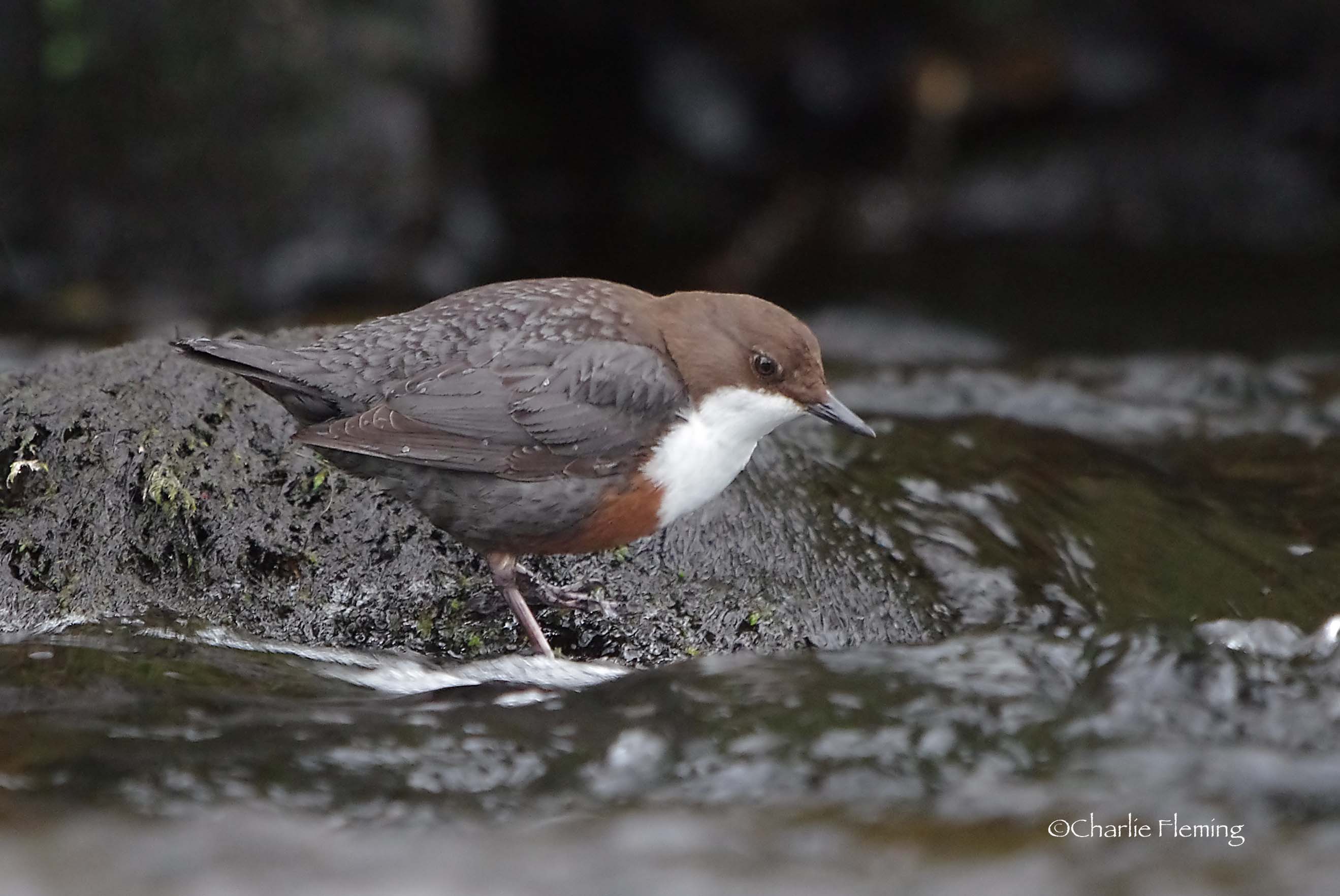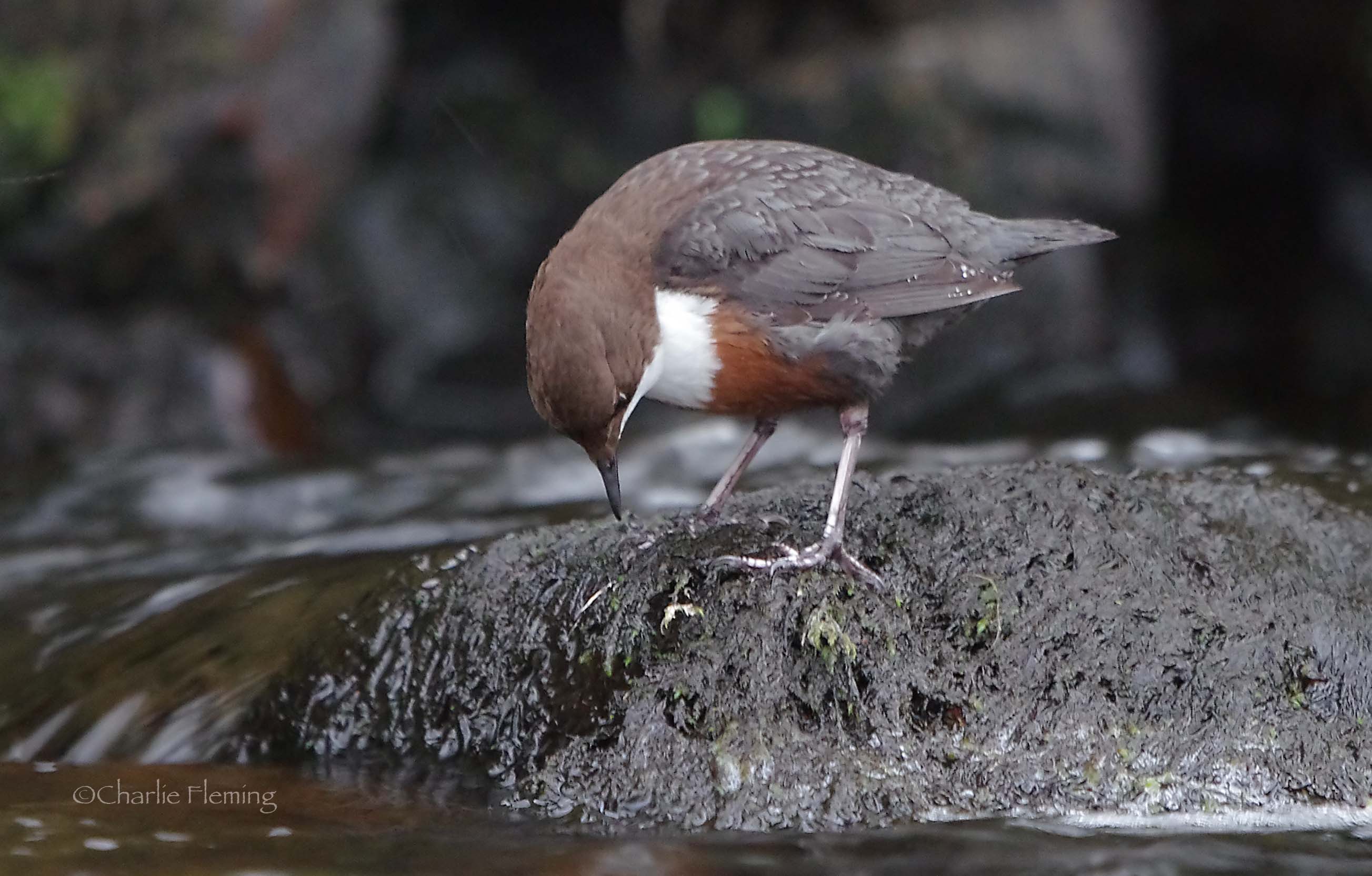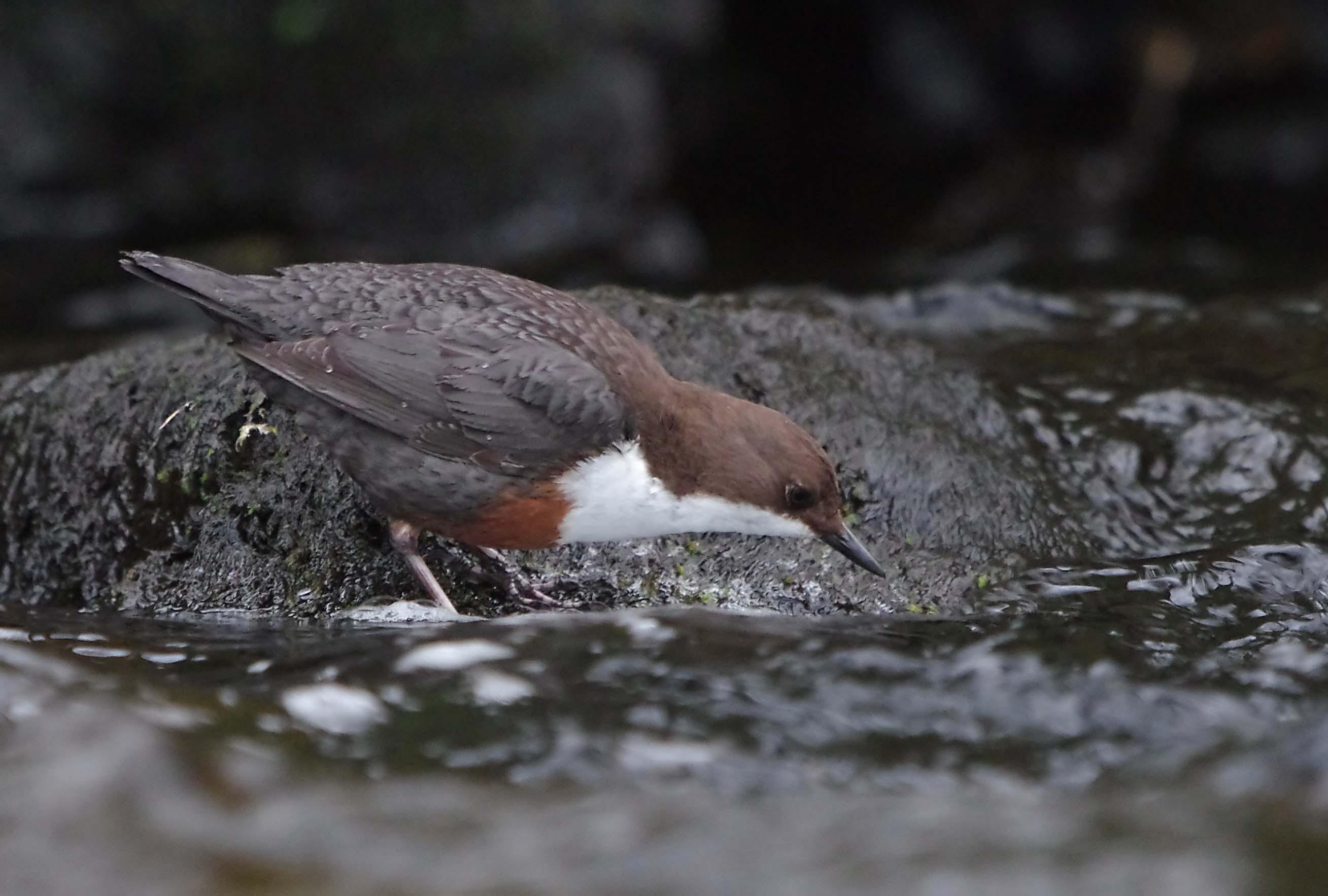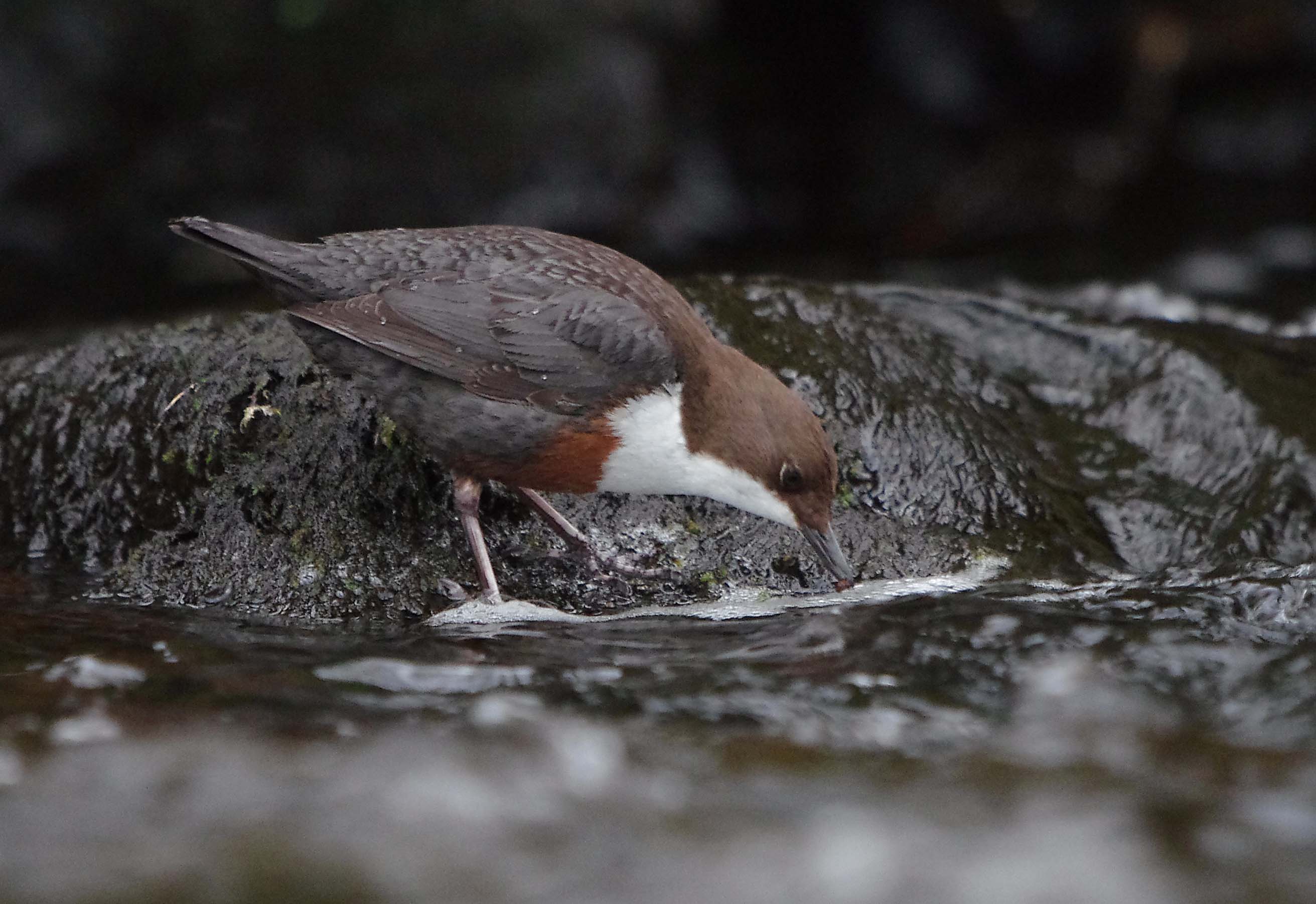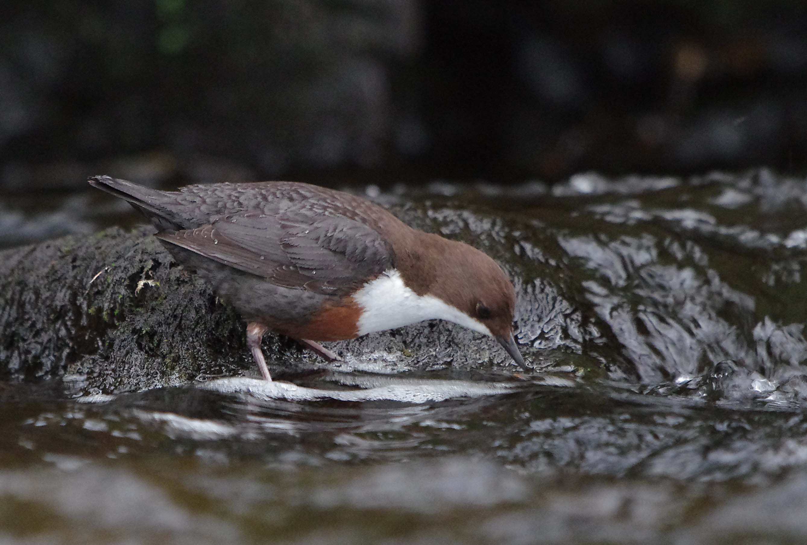 Below, the Male Dipper finds food as he waits in front of the nest.