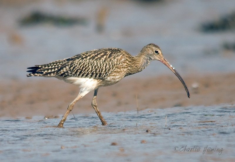 Whimbrel, browner, with a shorter beak and noticeably different "patterned" head.
