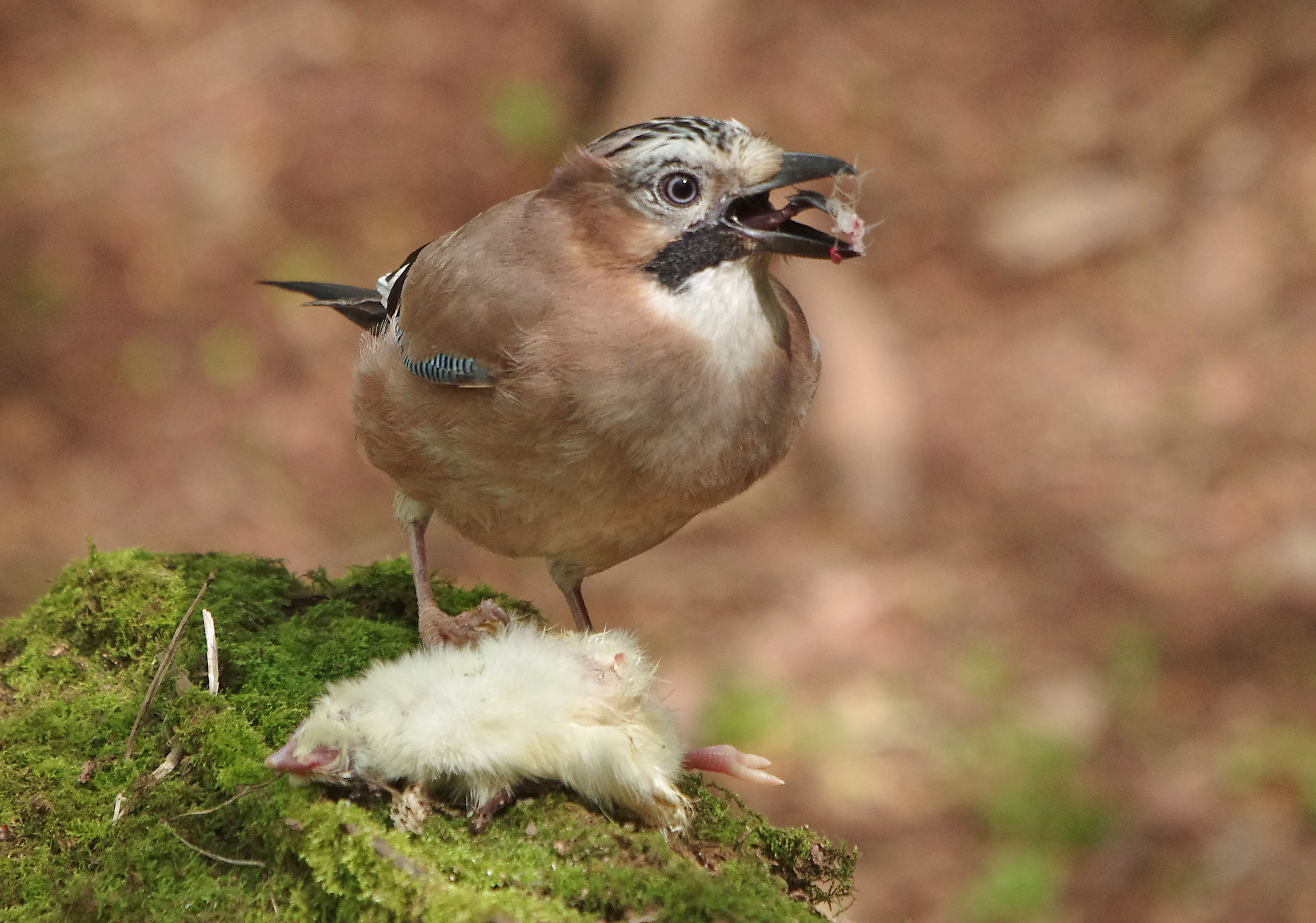…………………then it plucked the down from the breast before breaking it open to get at the chest cavity and the tasty internal bits.