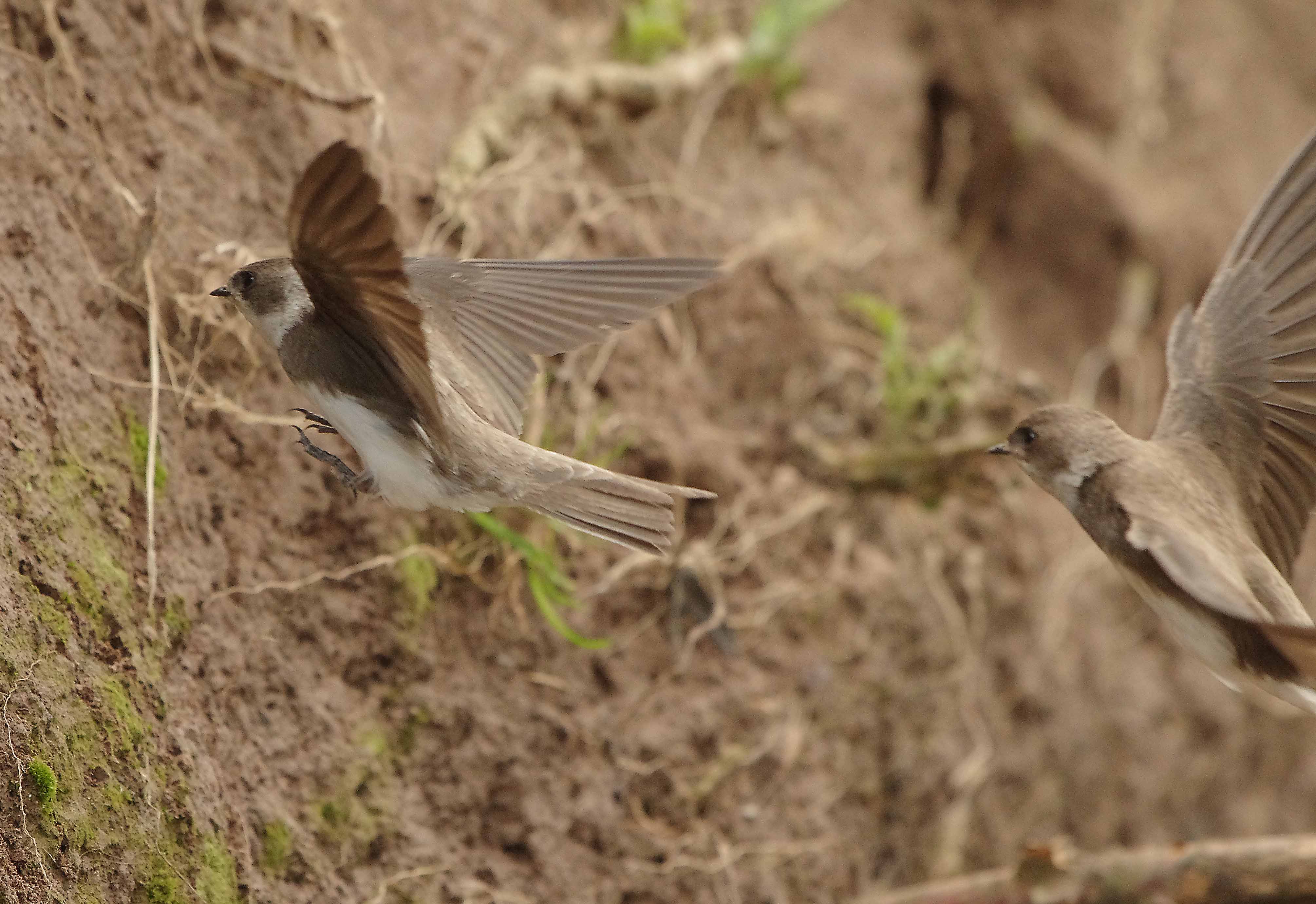 I went to check on my Kingfisher nest on the river this morning, glad to see that there was more obvious signs of activity around the burrow and lots of maggots were tumbling out of the hole. I moved away as quickly as I could incase of disturbance. Then further down the river bank I was very pleased to see Sand Martins using a nest burrow in the same area that they have bred in for the last few years but they haven't been able to get to their burrows because of the height of the river. Now the water has returned to normal level, or almost, just one pair has started to breed where last year there was at least 15 nests here. Thats not to say that others will join them over the next few days. Anyway, I took the opportunity to photograph the pair coming to their nest and from a respectable distant watched as they entered the burrow. Interestingly there was a breeding pair, both carrying grass in to the burrow, but also a singly bird would also go in with them. I returned in the afternoon with a plan to try to get a really good shot and almost did, but you can always do better. This time I photographed from the opposite direction as you can see.