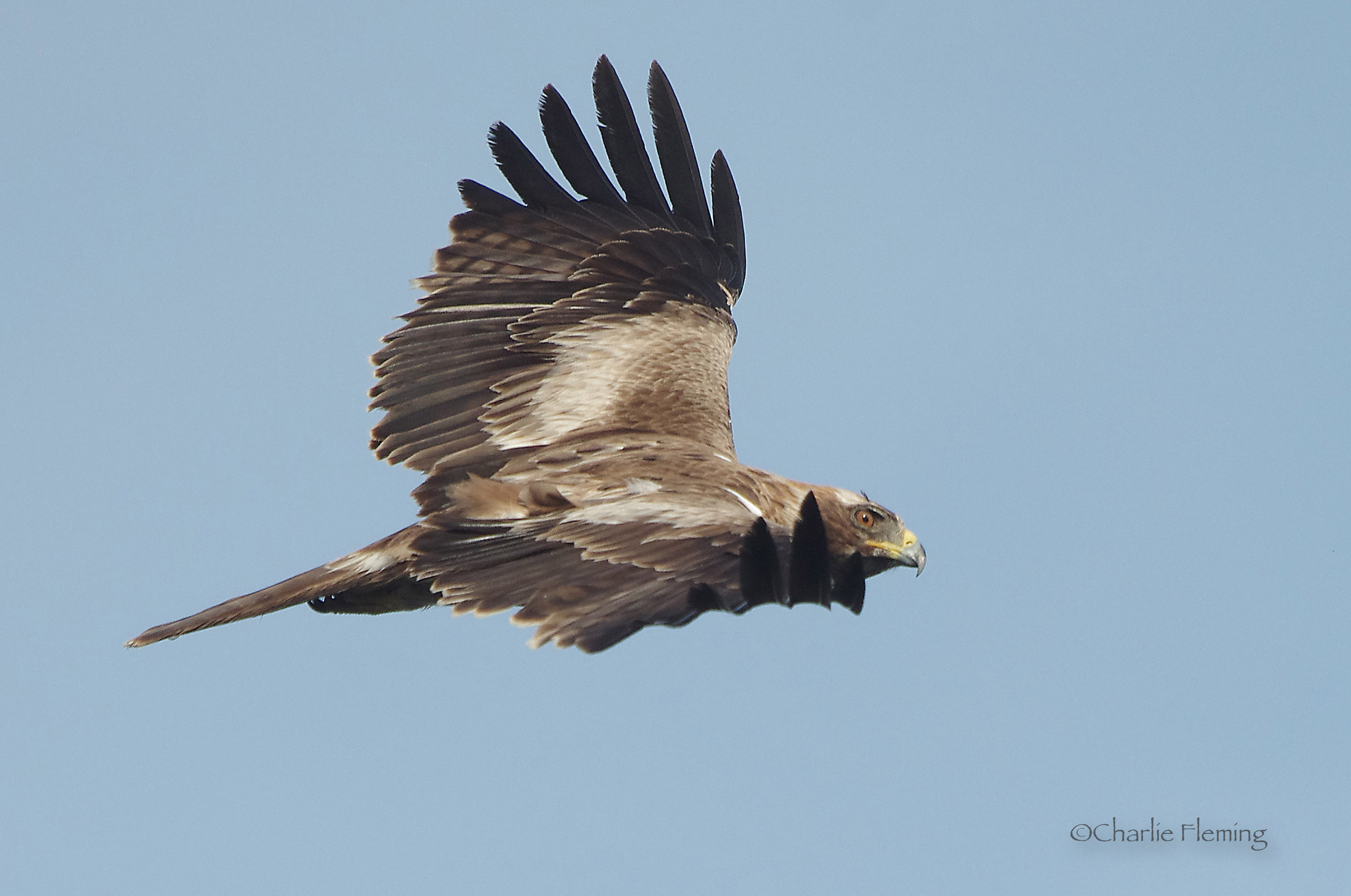 Our apartment for the week was perched precariusly down 74 steep steps, half way down a steep rocky cliff. From this vantage point we had gorgeous views of the inlet and beach beneath us. It was also, as it turned out, the best place for me to see birds and one species in particular was fantastic to watch. Particularly when it was windy, firstly one then two Black Kite came to try and take the eggs or chicks of the numerous nesting Rock Doves or more accurately Feral Pigeons nesting on the steep cliffs. At first I wondered what the attraction could be but then I saw one dive steeply and land on a ledge. From time to time they would glide right past my balcony at eye level, a real spectacle. I always say that if you can't see the eyes of your photographic subject then you are not close enough so I was thrilled when I took this picture.
