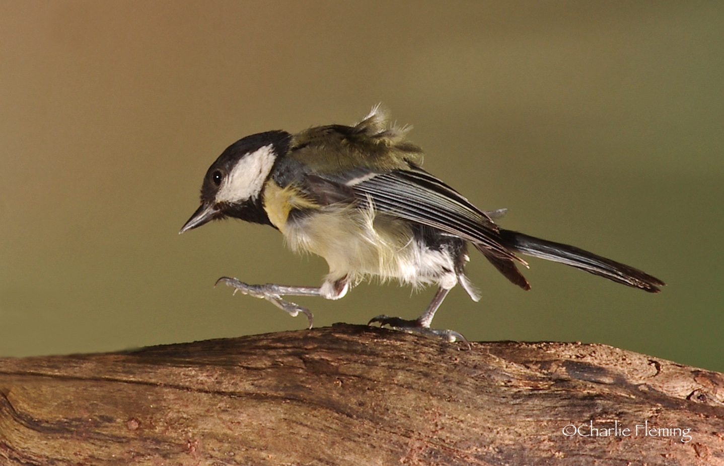 I set all all the gear up, in it'self a time consuming affair with lots of adjustments and testing required. Eventually it was all ready and all I needed now was a bird! I expected a certain amount of resistence because of the clutter of the flash guns but the birds were very reluctant to perform, in fact it turned out to be the quietest session in the wood so far. Great Tits were the only birds prepared to enter the "stage" and even they were freaked by the flash guns. I only managed one photograph and that one wasn't of a bird in flight but it proved to me that if and when the rest of the residents get used to the set-up, I will get some wonderful shots. Nuthatches in flight are the images I am after so watch this space.