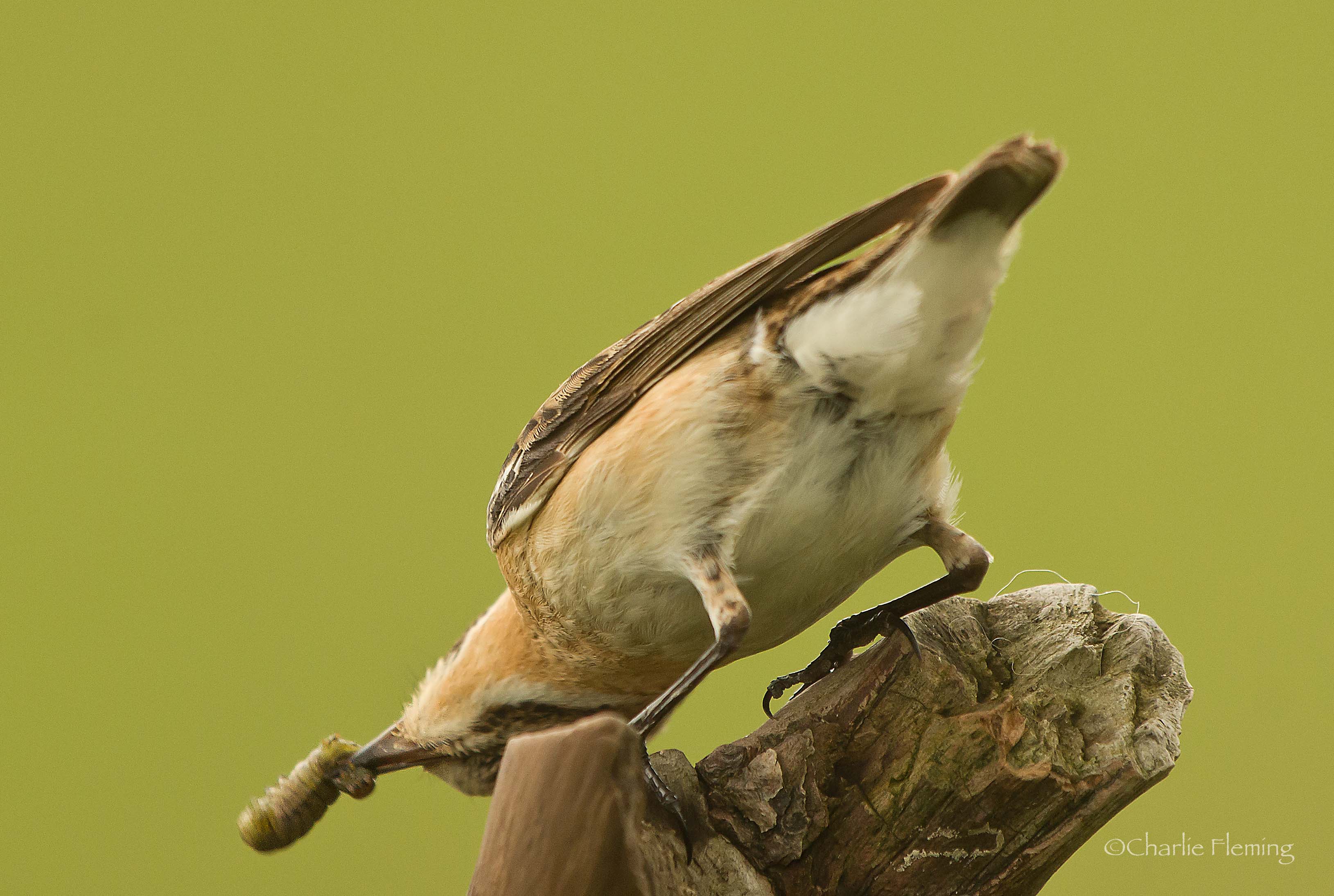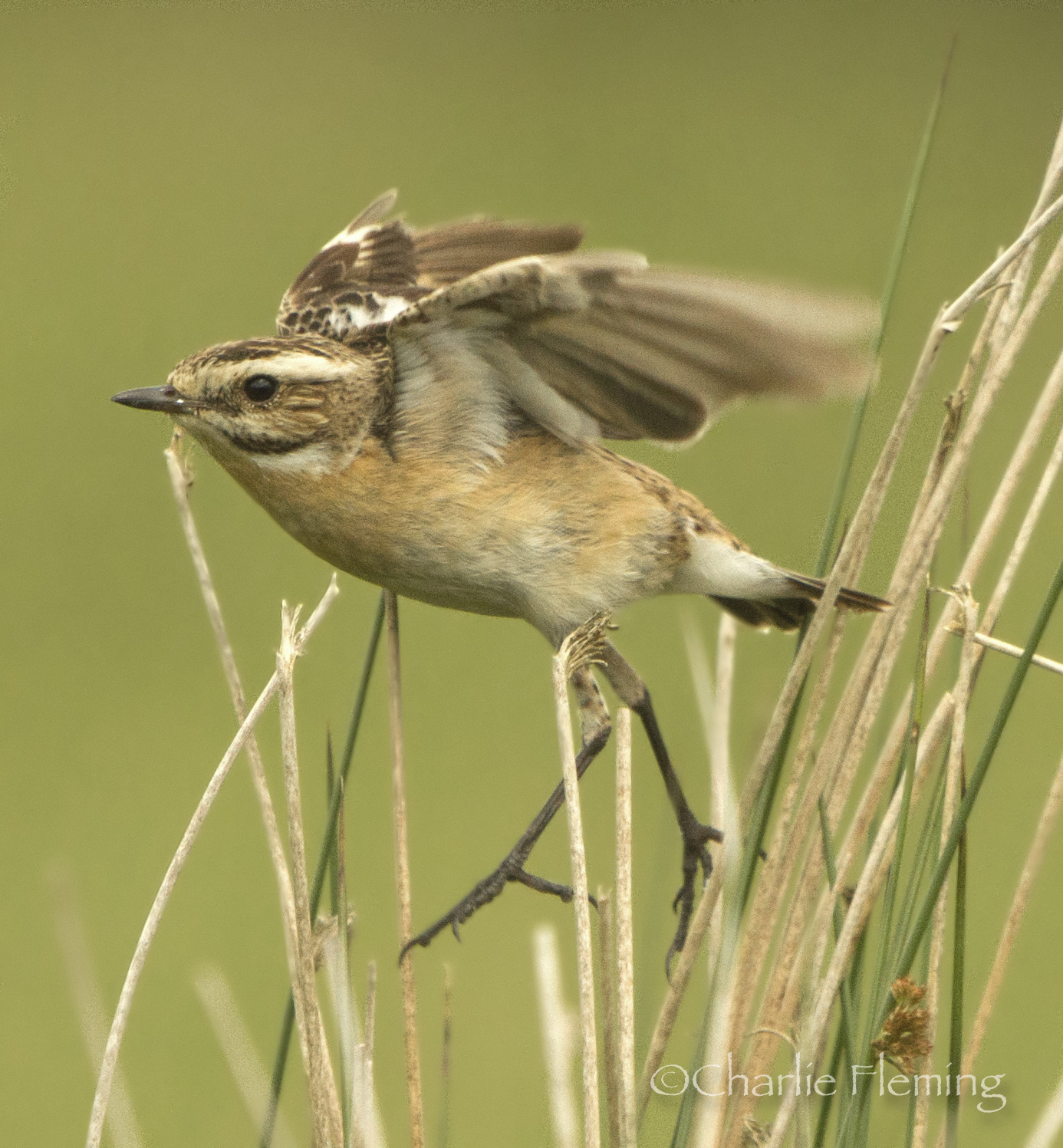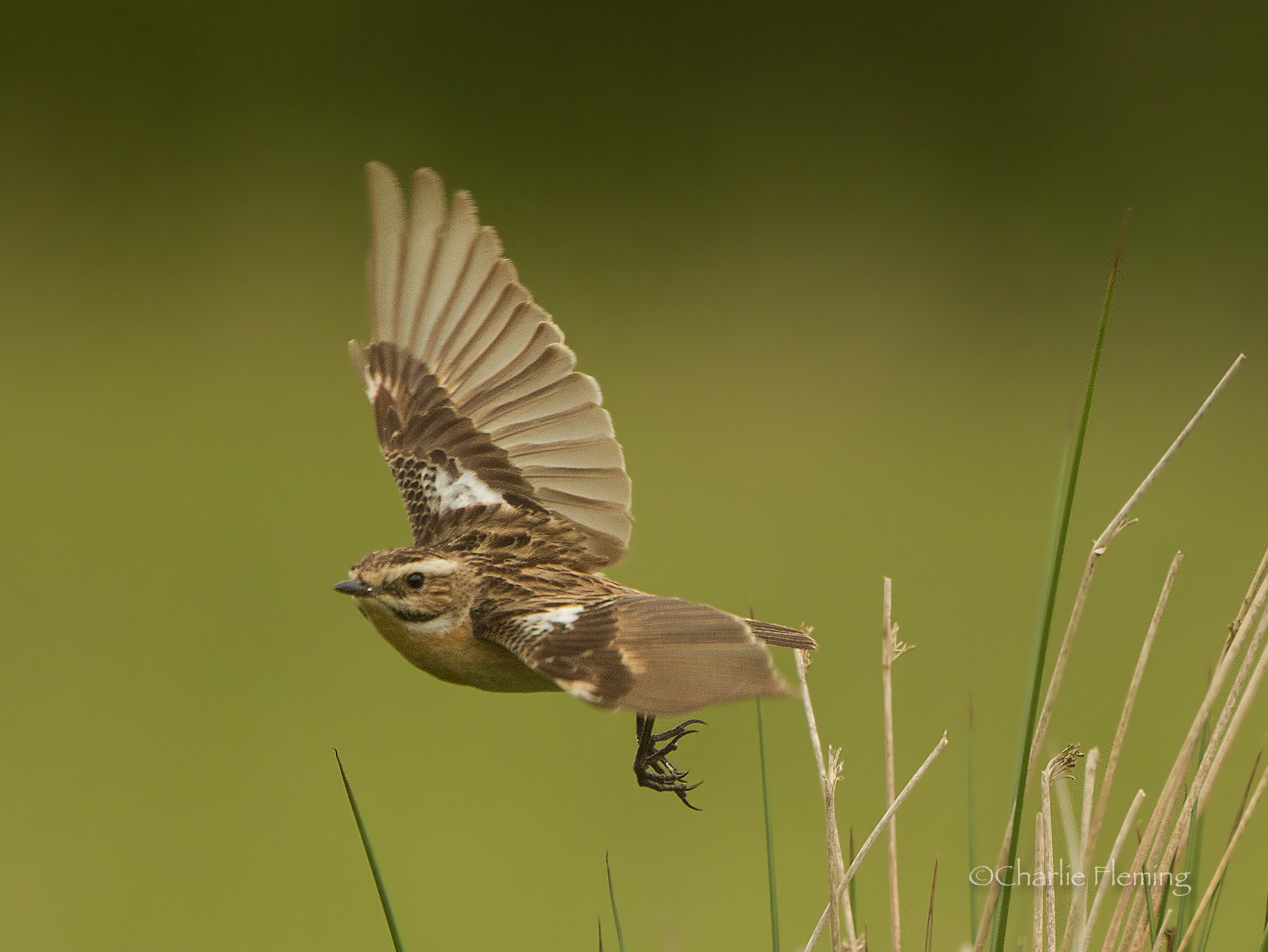 I would have been disappointed if, after numerous opportunities I didn't manage to get at least one or two photographs of Whinchat in flight. So today, in between the Cuckoo visits I tried ery hard to photograph them flying from the various perches in front of me. It's not as easy as you would imagine, small birds fly at an incredibly fast pace and with natural light you have to get the very best out of the camera equipment. I do enjoy seeing and taking photographs of birds in flight though, suddenly you see aspects of a bird that becuase of the speed, you hadn't been aware of with just the naked eye. In the wide open spaces of Dartmoor, even when the sun isn't shining, you can achieve some high shutter speeds for example, above at 1/4000 but even that wasn't quick enough to freeze the wing beats. This is why capturing the moment the bird flies is hit and miss and its hard to get the subject in the frame. The more I look at thepicture above though, the