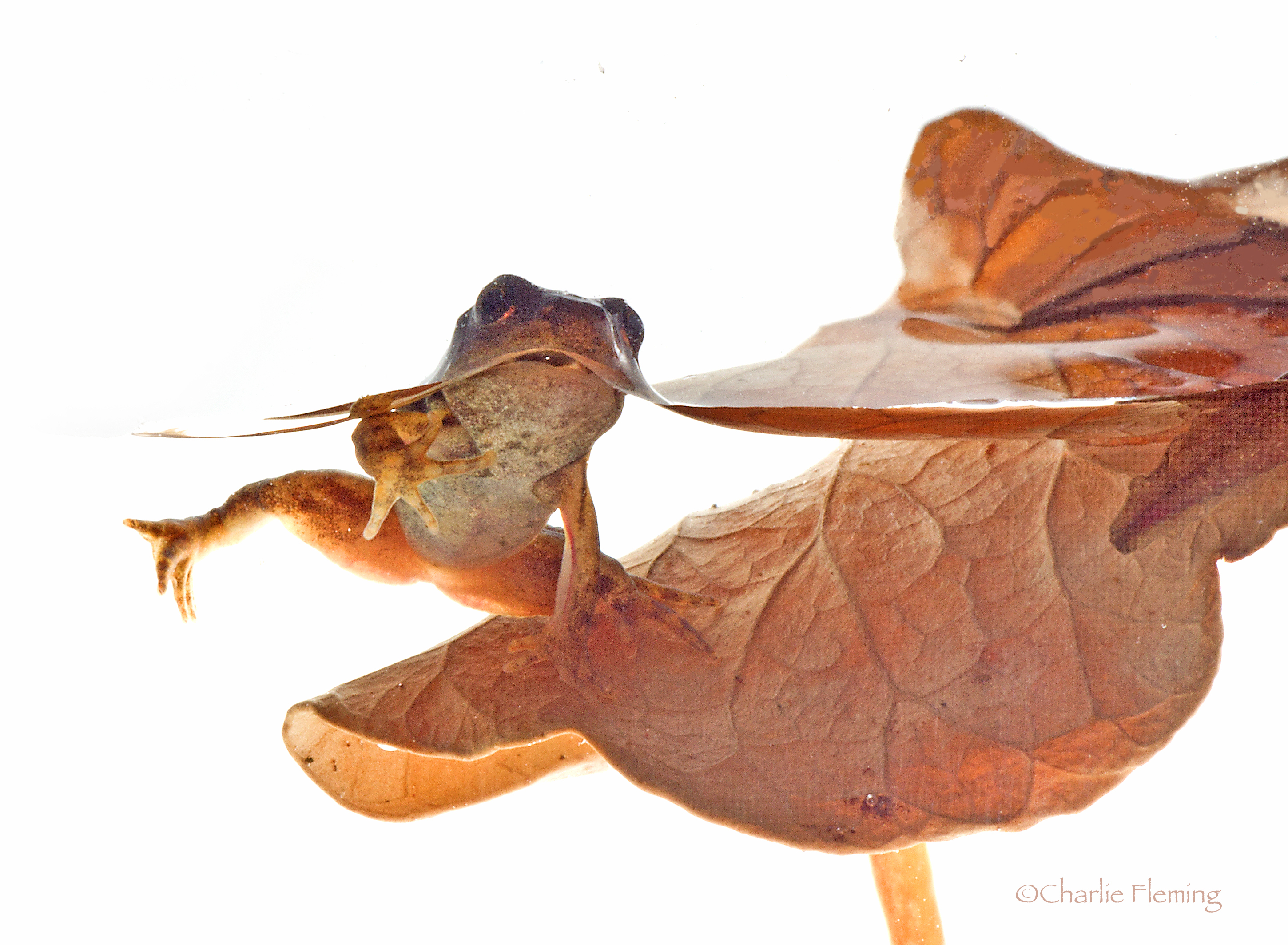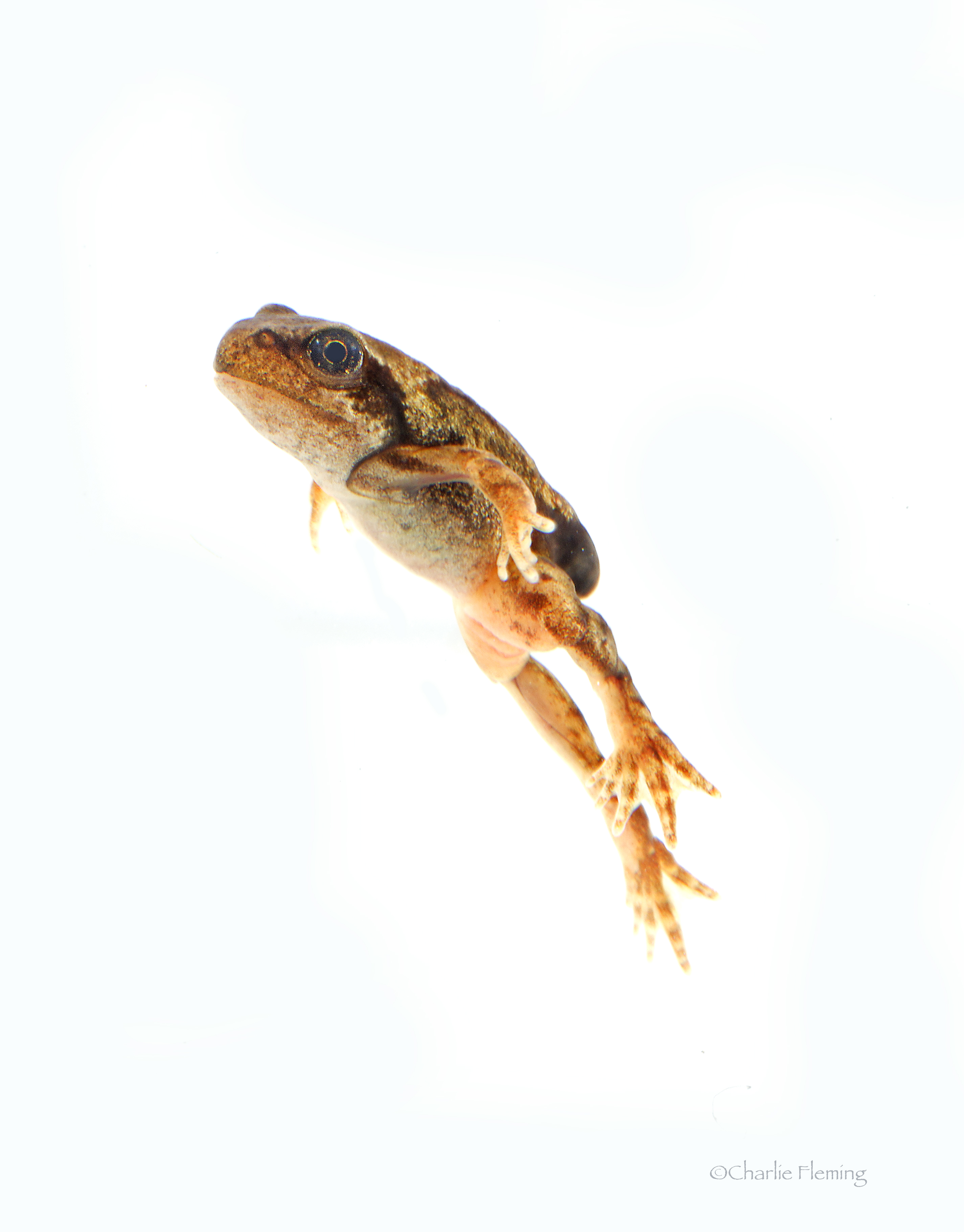 These photos, of little Froglets, only 12mm long and from my garden pond, were taken today in a soft-box. Thats a fish tank lined with white perspex and multiple flash guns are used to light the box and the subject. The flash creates a clean white background as well as highlighting the detail of the subject. I thinkit is a tremendously exciting way to photograph small wildlife, particularly fish, aquatic insects and amphibians. The subject seems to be suspended in mid-air but of course they are actually swimming.