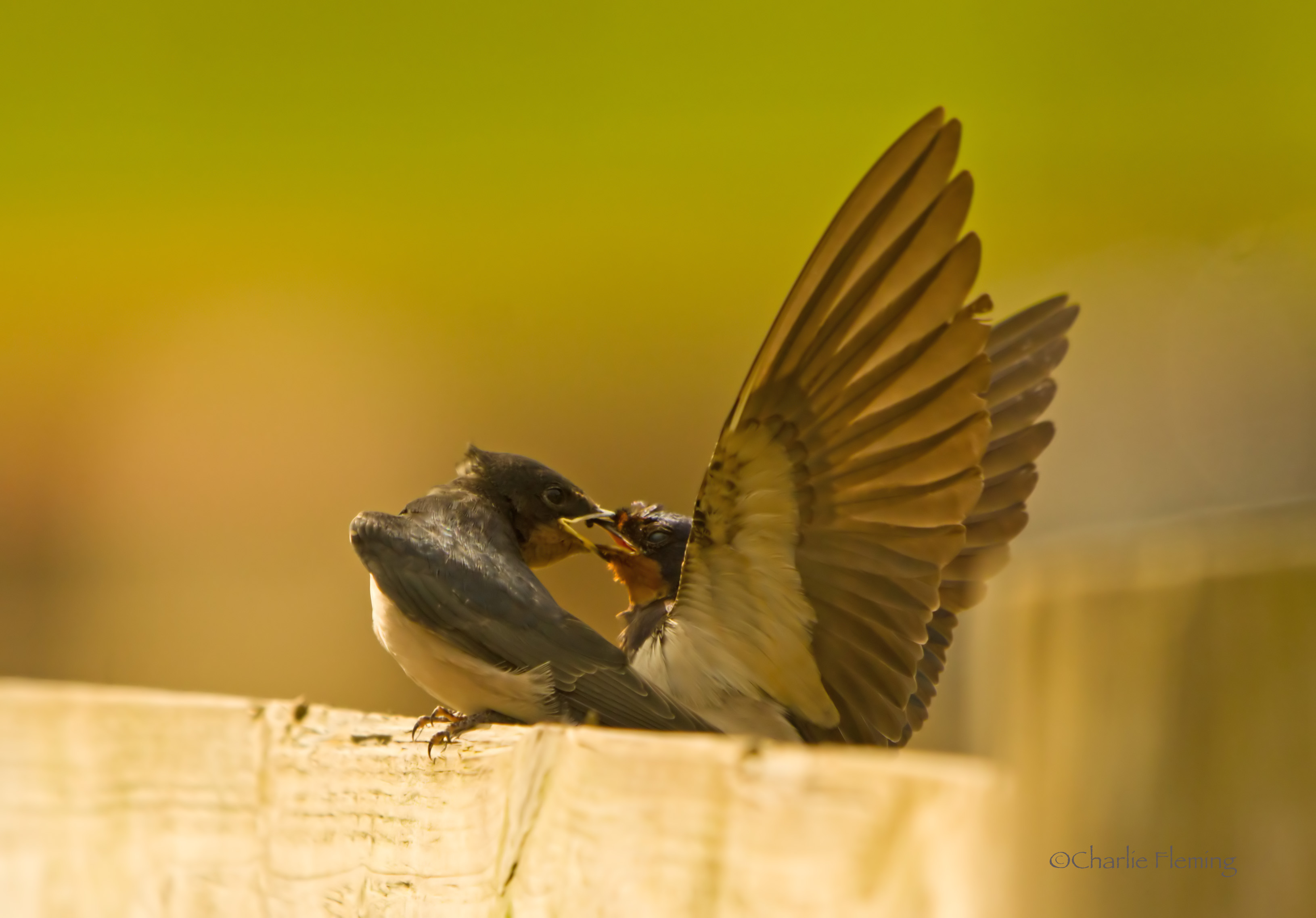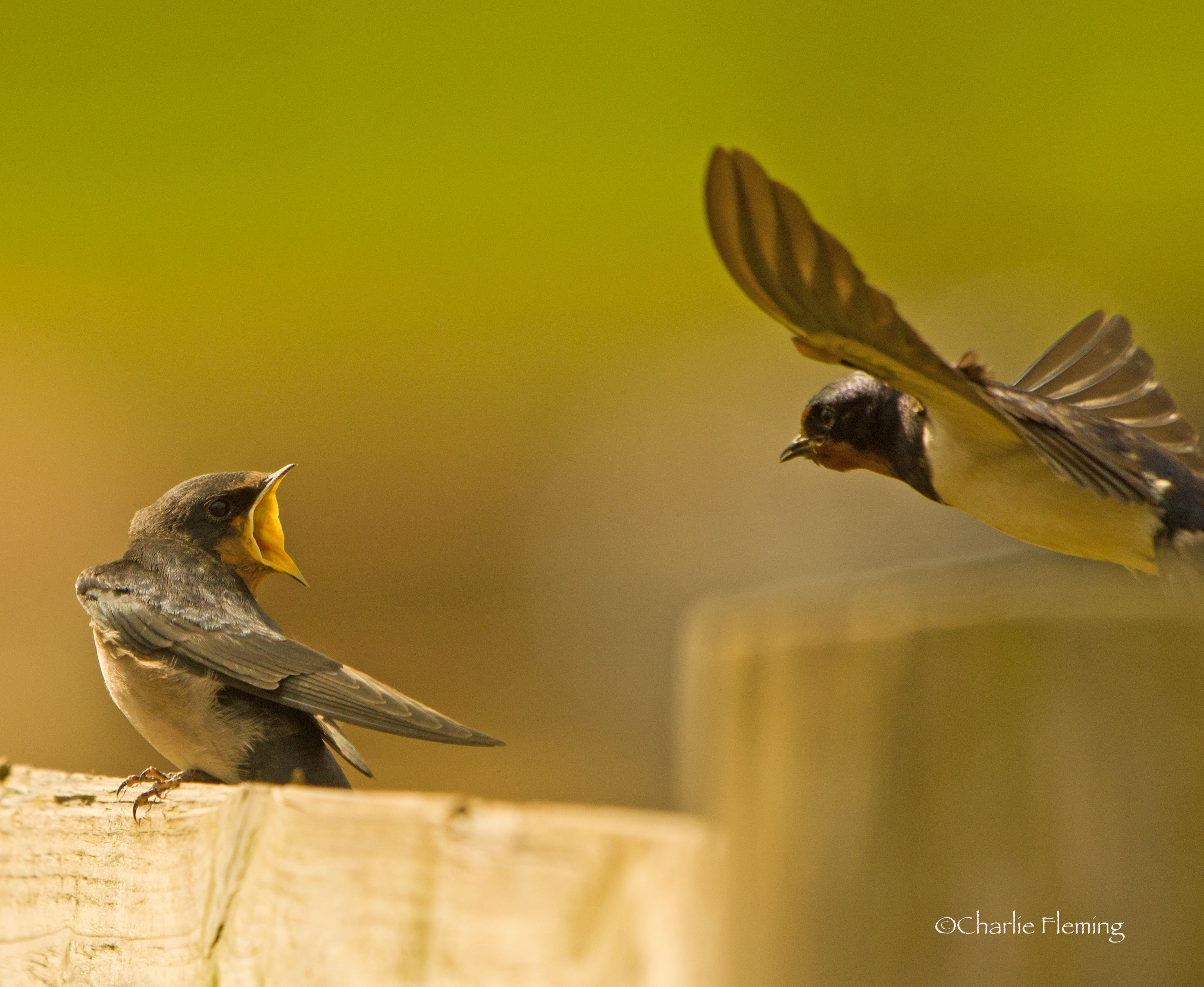 As you may be aware, I always try with my photos to put the viewer right there amongst the action and to try and photograph in a way that shows something that perhaps happens so quickly that it goes unnoticed. This series of a young swallow being fed by its parent is one of those moments. It is something that I have seen very regularly and when I knew that Swallows were nesting in numbers nearby at the local riding stables, I was looking forward to them leaving the nest. I even predicted where the youngsters would perch and wait for the parent to come and feed them. I have been visiting the stables regularly just to see how the nests were progressing and I knew that I would get the chance sooner or later. I scanned the fences constantly this afternoon and suddenly there was a young swallow waiting patiently. Using one of the posts as a rest for the camera, I took a few photos and then waited for the parent to bring food and as the youngster was fed I managed a few shots.