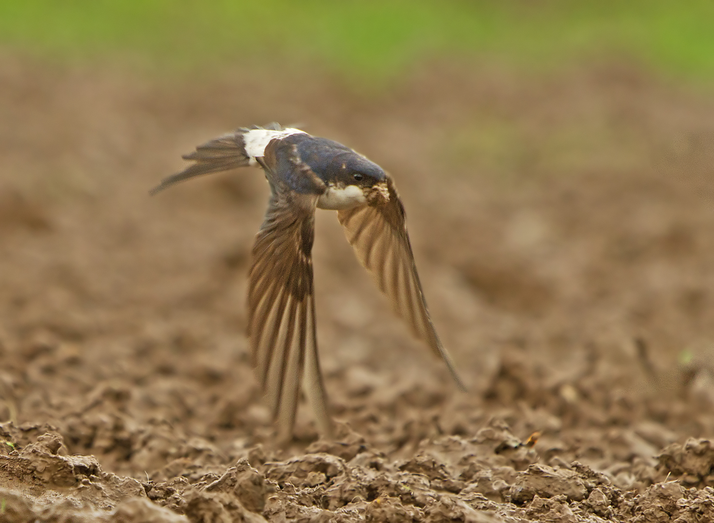 Every now and again I take a photo that is almost the shot of a life time. This is one of them. I just missed the whole bird by an inch, if the camera shutter had opened 1/3000 earlier than this would have been the best photograph that I have taken. As it is, it gives me the impetus to carry on trying to capture the Martins in flight as they come in to gather mud to repair their nests. I took several half decent shots today, patience is the key. I sat waiting for the sun to shine and then hopefully for the Martins to come and collect mud. Eventually, first one and then another came down followed by several during the next few minuts or so.