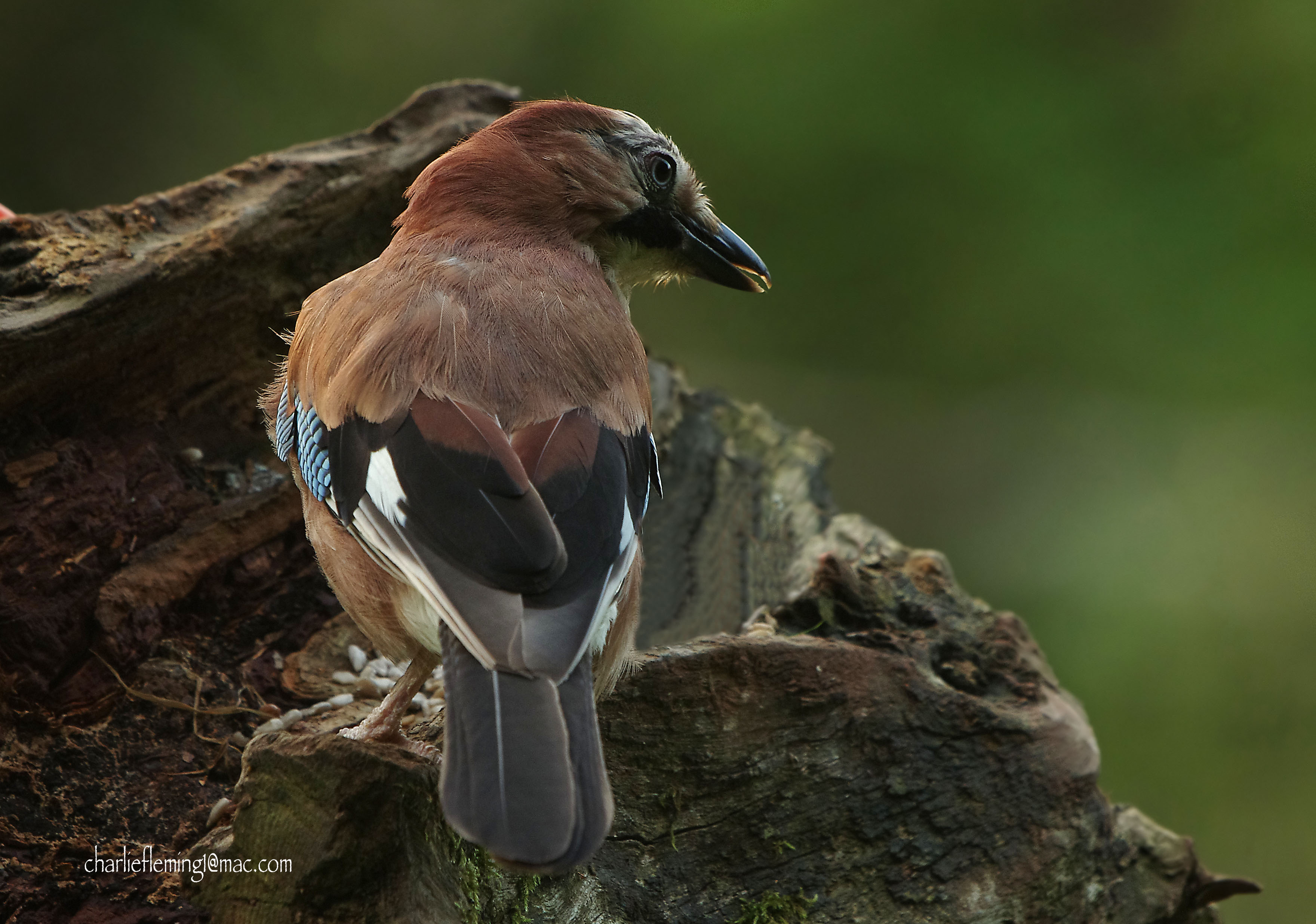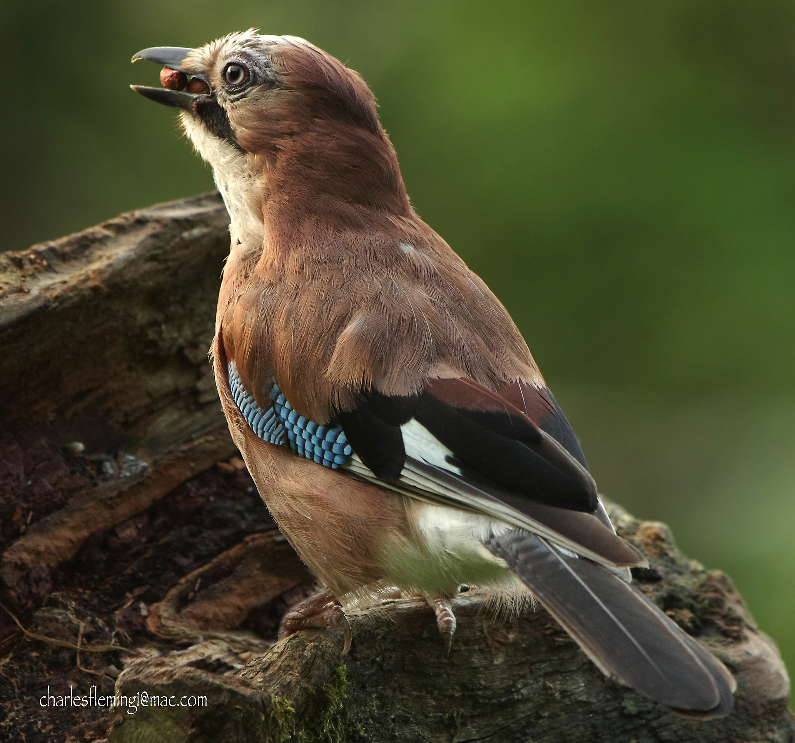 I said this morning, or was it yesterday that I had a plan to get some good portraits of the Jays from my private hide so, as the day developed I thought the plan through. My morning was spent conducting my Brass Band playing hymns to accompany a Seafarers service in the village of Lympstone…….. don't worry, there is a wildlife conection. Firstly I am excited to report that Swifts are using the roof-space of our Band Centre, a previous Methodist Church dating back to the late 18th century when it was a sail makers premises. Then as we performed, (you can still look around when you conduct), I watched the House Martins coming and going to their nests under the eaves of the cottages right next to the sailing club. Greenfinches were singing…… if thats what you call it……… and it was frankly, a glorious scene with the estuary spread out in front, the first sunny day for ages and the band playing beautifuly as usual. I love that band and the people in it.