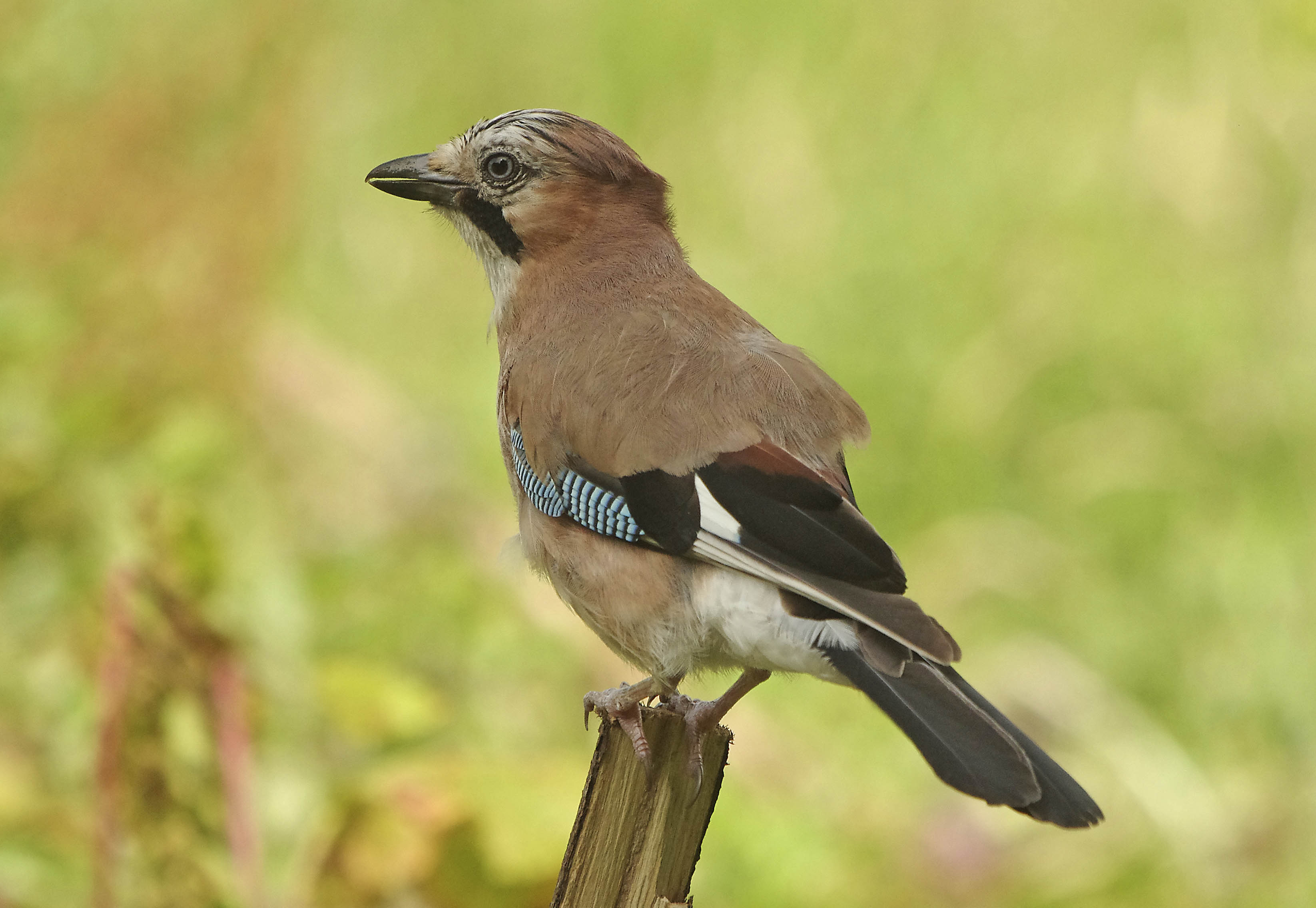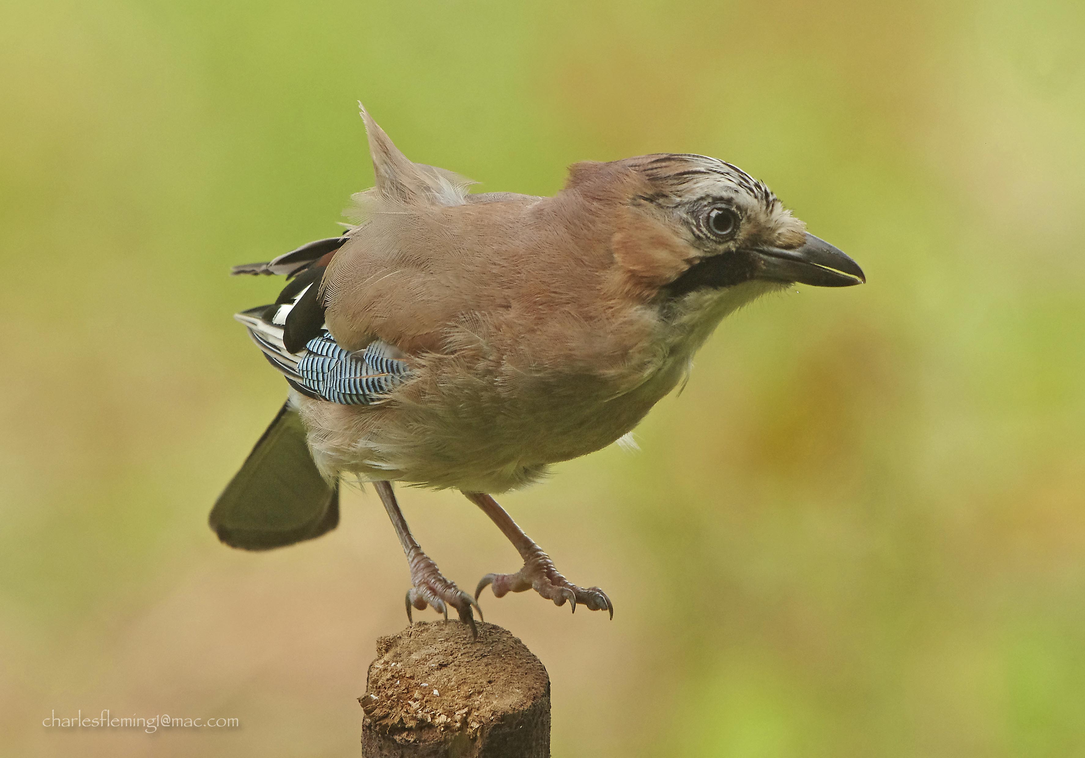 I was pleased with this….. almost…….except for the top of the head which I just missed! I planned this shot by setting up two poles as perches and when I was sure that he was going to fly to the one nearest to me I pressed the shutter. I had already pre-focused on a flower that I had placed half way between the two perches and then it was just a case of the shutter firing at the exact moment when the bird was passing through the in focus spot..