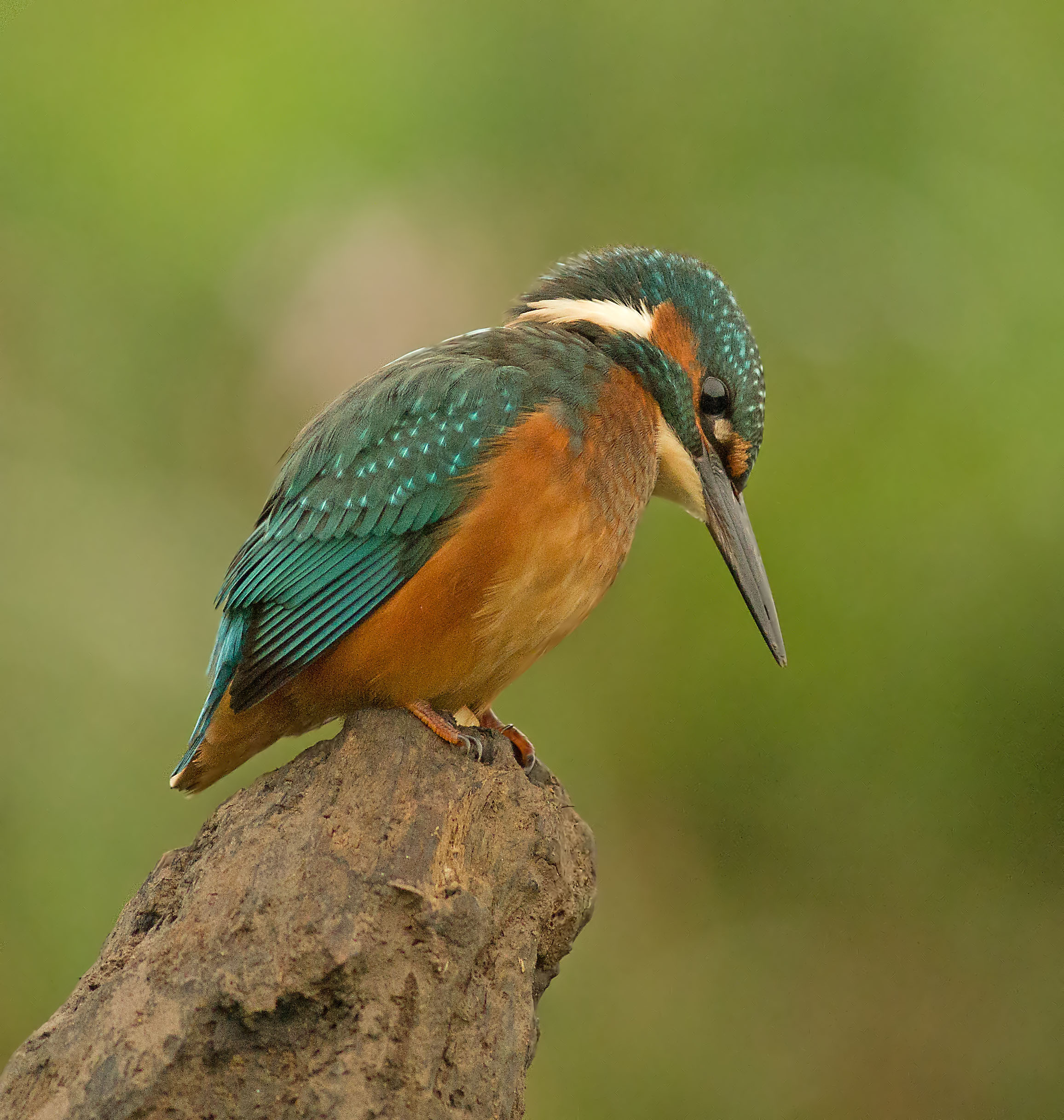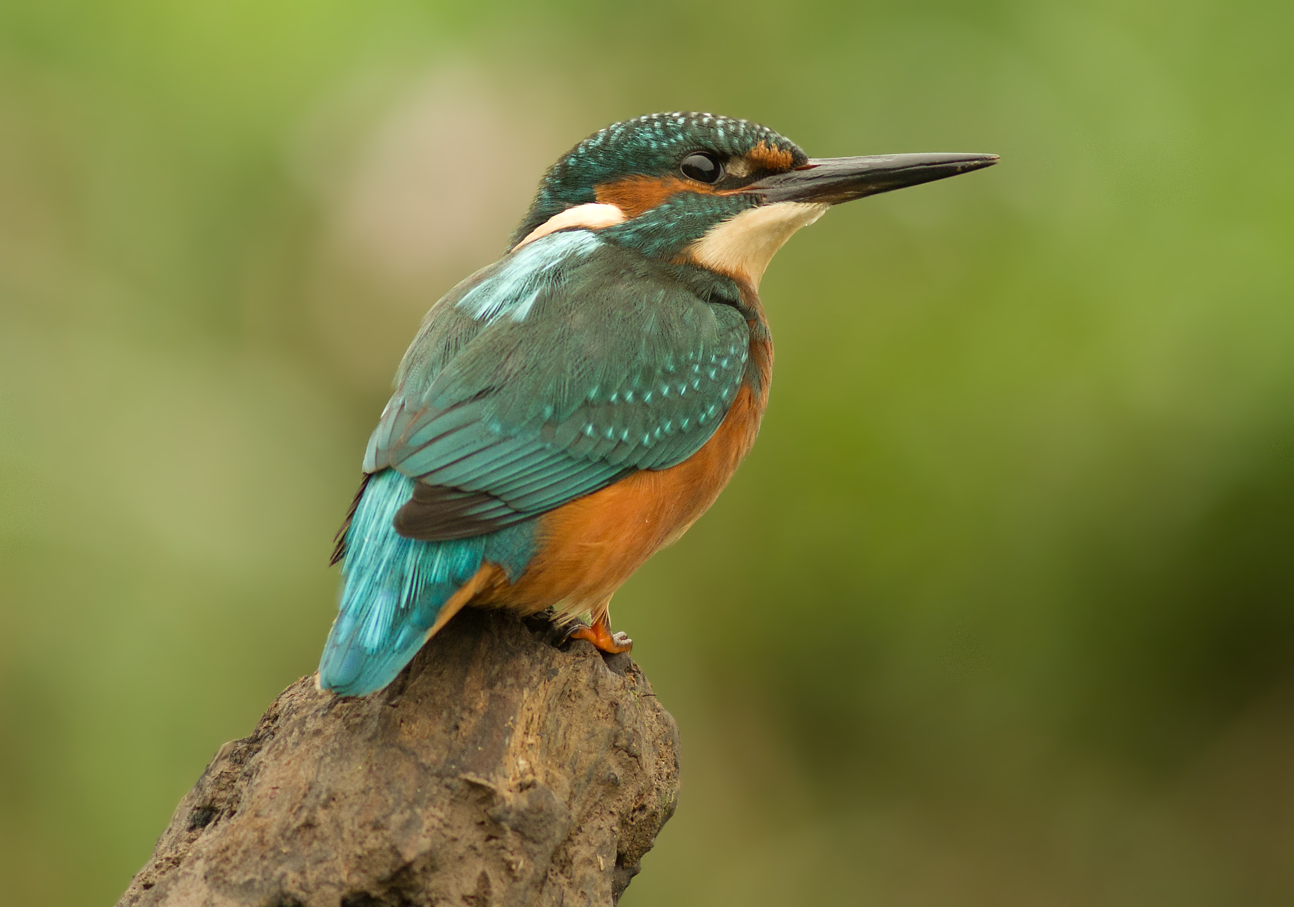 Notice the white tip to the end of the beak, a good indicator of immaturity as well as the dark feet and black smokey marks on the otherwise orange breast, Again he is on the hunt for prey, he's probably not too good at fishing yet and more than likely has lots of failures. He has also got to contend with territorial disputes with his siblings, quite a stressful time for young Kingfishers. It's a wonder that any survive to maturity at all.