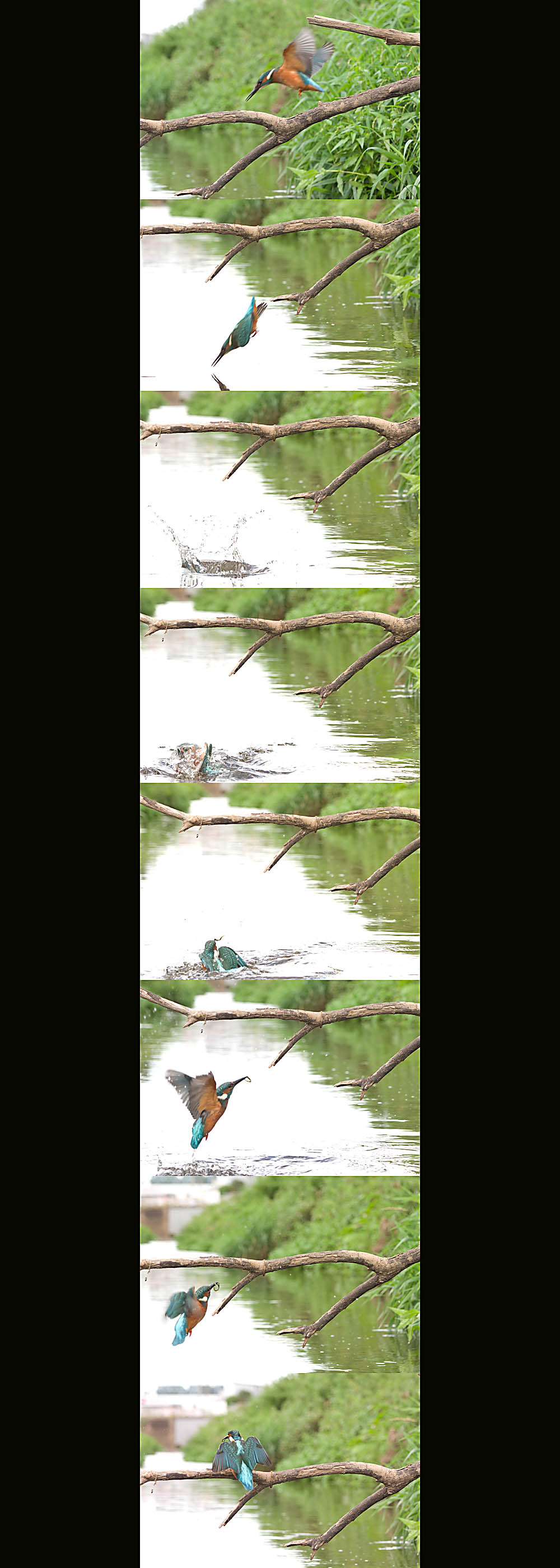 A sequence of a fishing Kingfisher as it happened this morning.