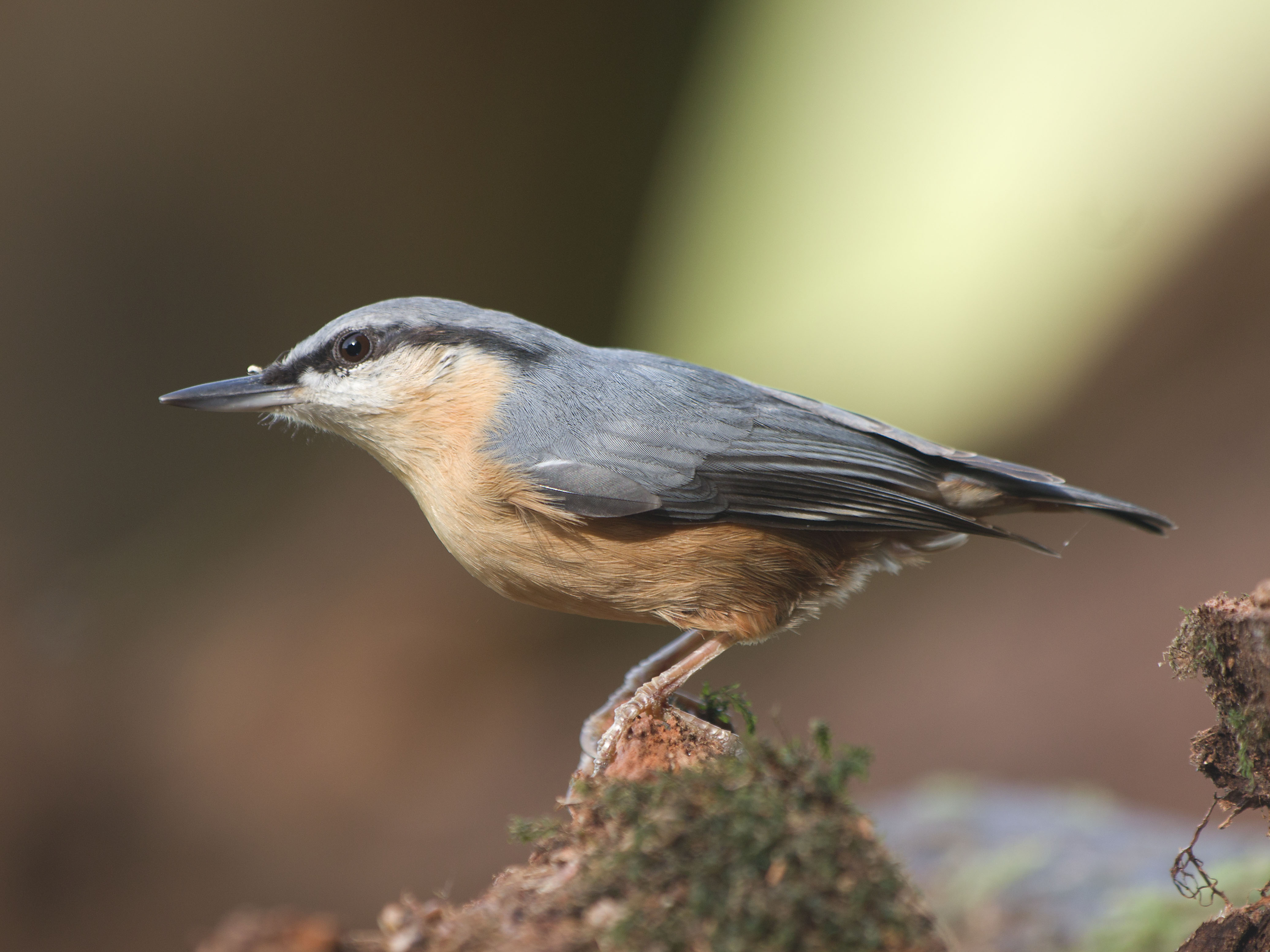 it was relatively easy to see the difference between males and females. Look at him closely and you can see that he has quite prominant dark "brick-red" flanks, in a female this colour would not be so intense. Also the under-tail coverts are edged with the same colour, (you can just about see them here), in the female this is less intense. This is obvious if you have two birds to compare but one thing that was quite a surprise was the size of the male, noticeably larger and more bulky with much thicker and bulkier, larger beak. In silouette this difference in size was quite noticeable. To help me, his bird also called in the musical way that male Nuthatches do.