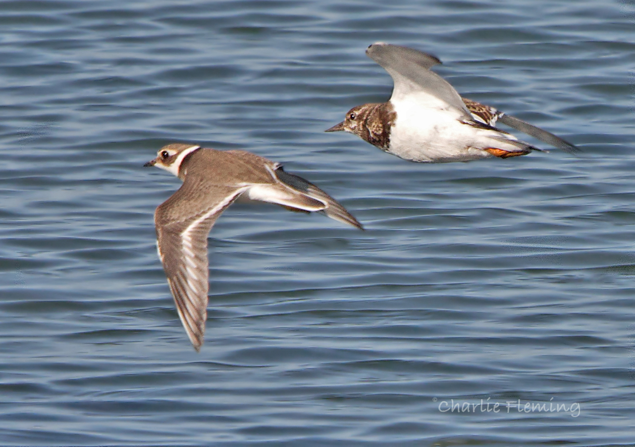 These two were particularly "close" seeming to seek each other out and even when the main group of Plovers moved away it stayed in the company of the Turnstone.