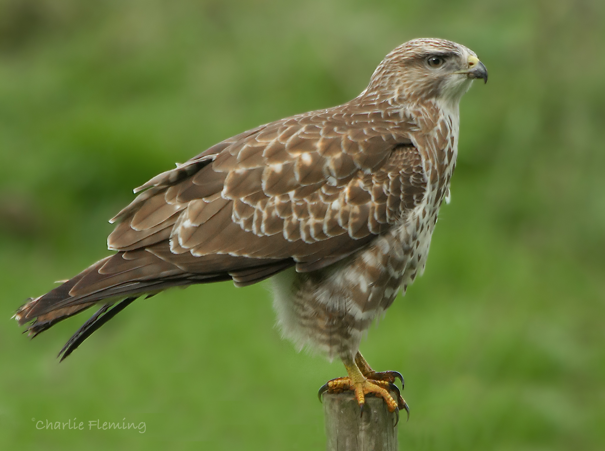 1349. Buzzard success, after 3 1/2 hours! A Buzzard came down to the remains of the old carcass placed in the field for the fox. I saw it fly in, hesitate for a while and then fly off with the rabbit remains in it's talons. I can't see it from this position at the moment but I suspect that it is on the gate or fence just out of my field of vision, not too far away, 50 feet or so. I honestly didn't imagine that it would take the remains, mostly already eaten when it had the choice between that and a nicer, fresher and more appealing "meal". I am on a steep learning curve.