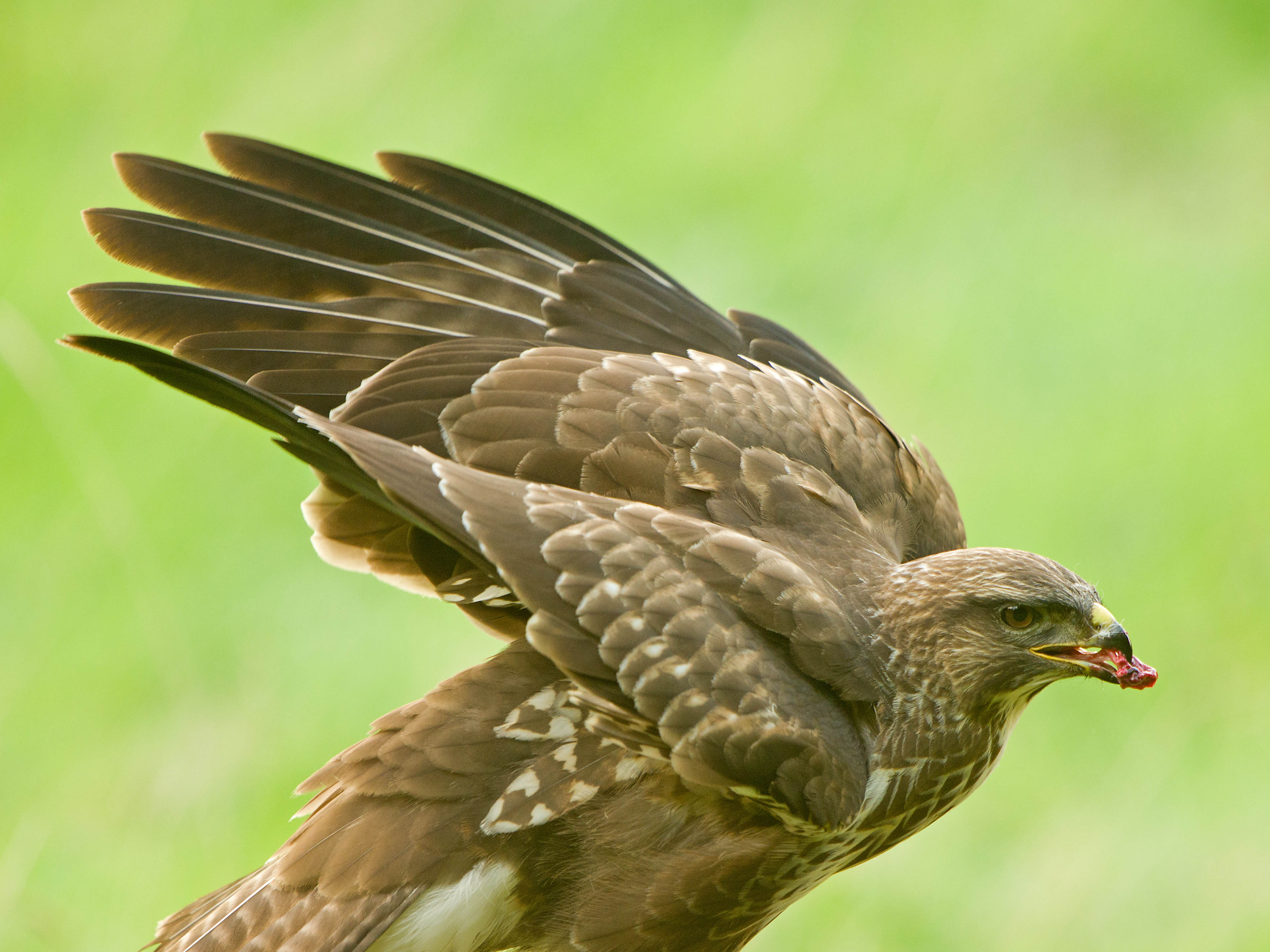 It quickly moved down to the prey which I had opened up for it. It seems that they will wait for other birds, Ravens and Crows etc to open up a carcass first.