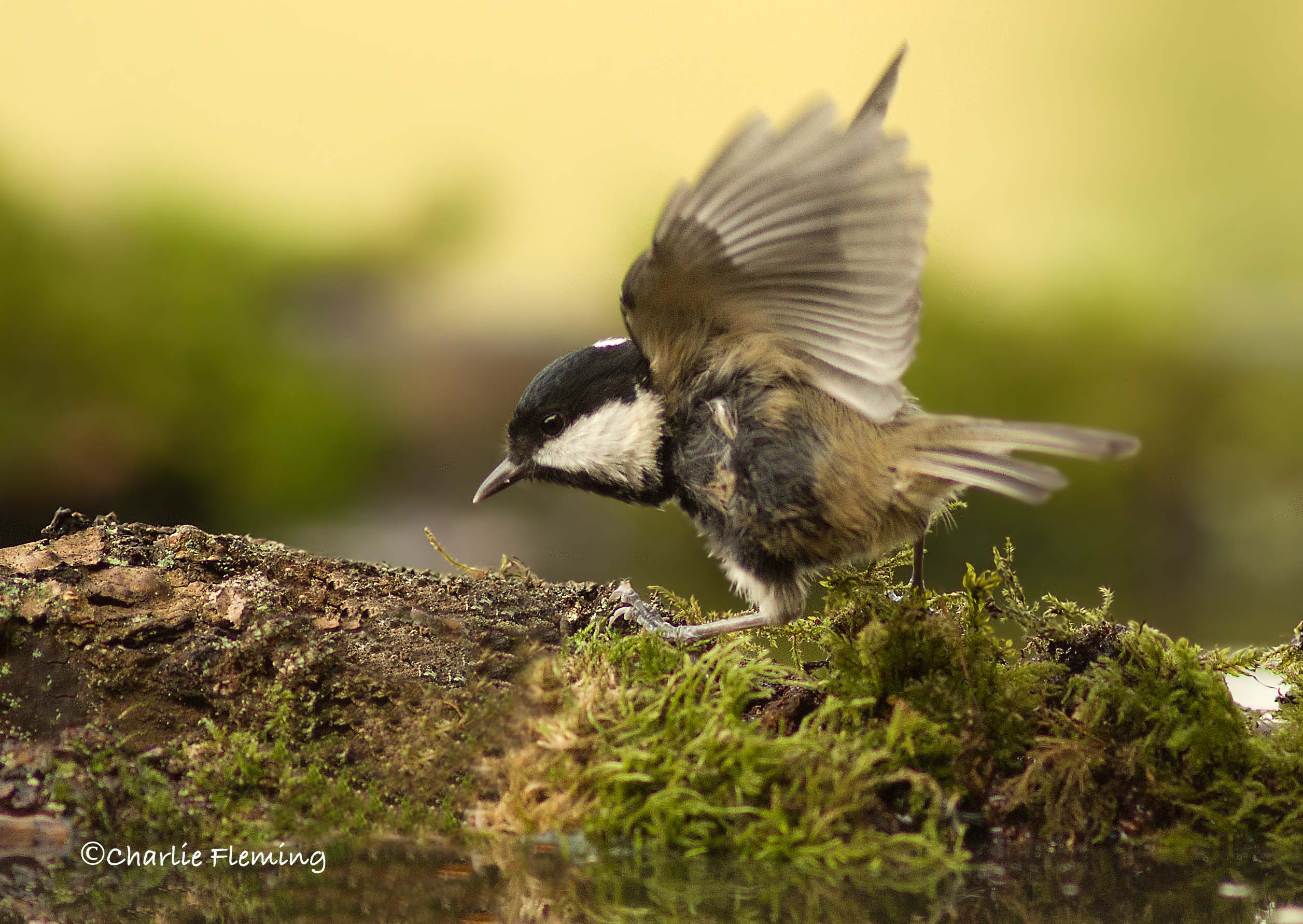 An interesting shot as a Coal Tit flies in.