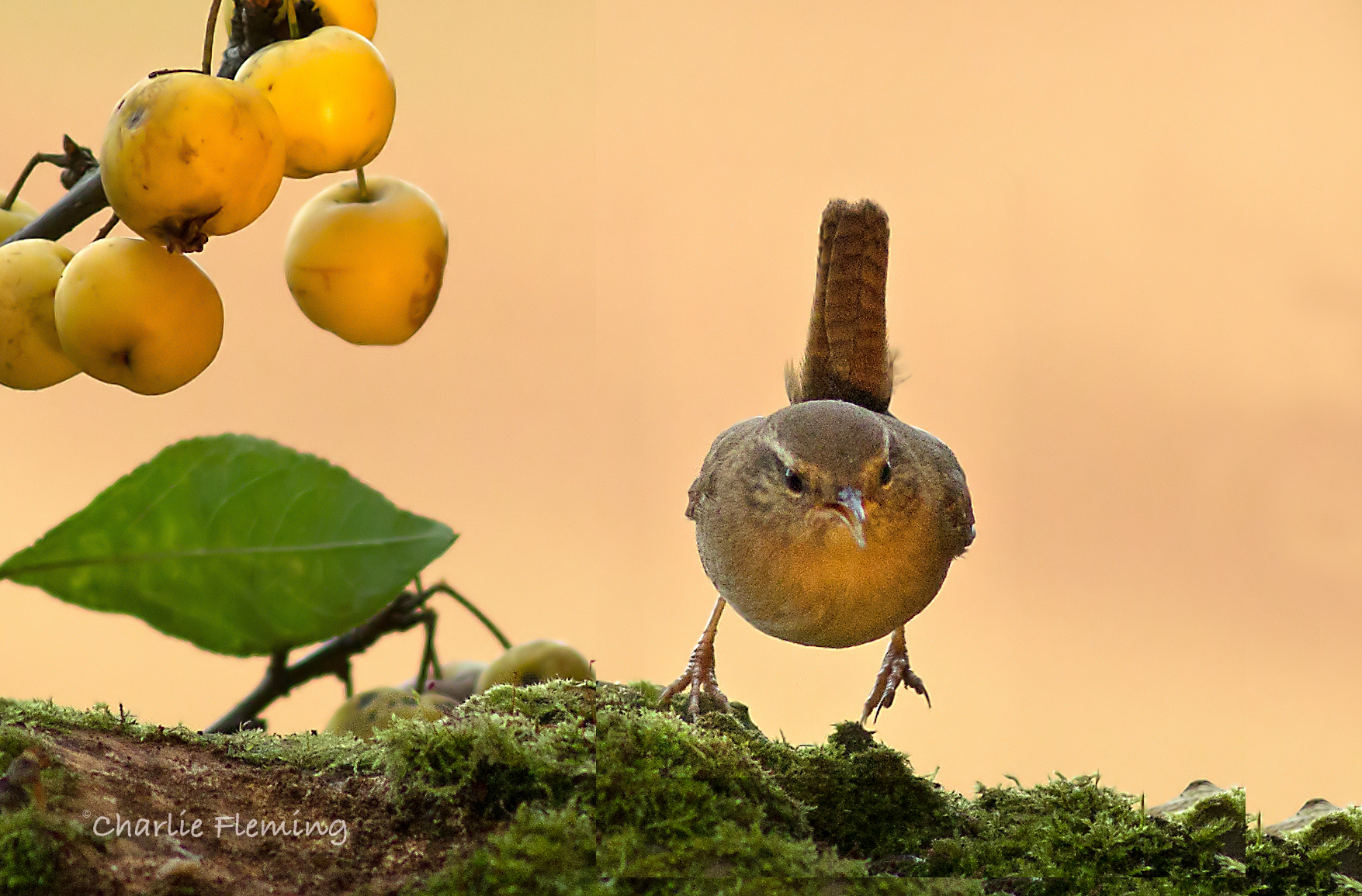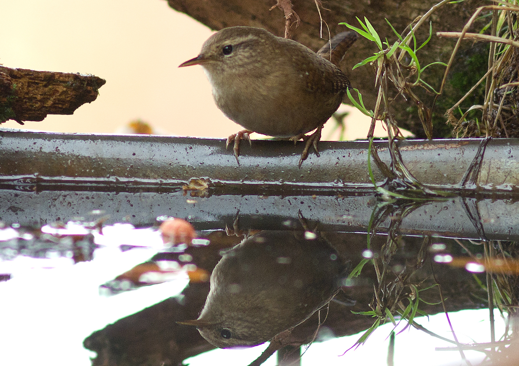 I was pleased when suddenly a Wren landed on the log, obviously attracted by the presence of the other birds.
