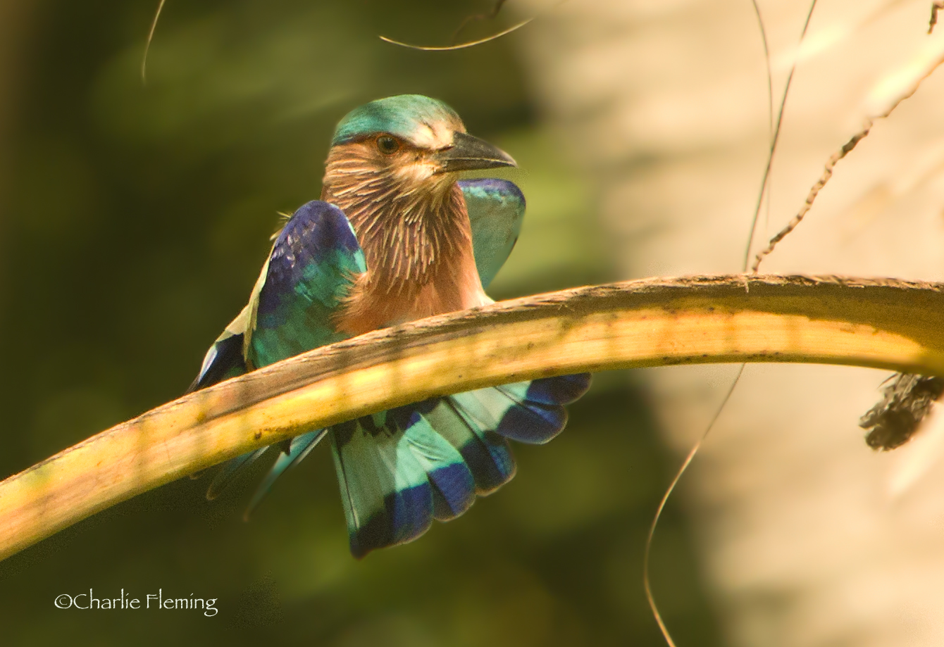 This fabulous bird is an Indian Roller. It has a territory in the garden/waste land right next to my house and I am confident that I will be able to get even better photos in the next 10 day. I have already worked out which are its favourite perches and watched the way it behaves. I can get really close but I need to be even closer to get that once in a lifetime shot. I have already take 200 or so photos of it and am working through them but need to stop because while I am doing that I am not out looking at the other birds…… in the bar tonight will give the chance and I will be posting more then.