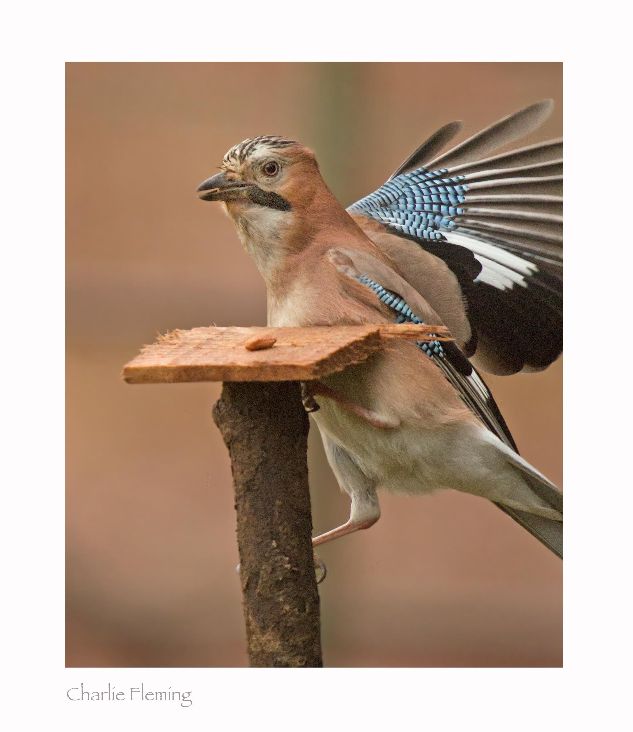 We had another terrible day today here in DevonUK. It was mostly wet and cool and the sun was almost a distant memory. Yesterday had been a right off as well, also wet, dull, dreary and misty pretty much for the whole of the day and today wasn't much better. I went to my hide anyway, well what else is there to do in the UK on a wet December day apart from Christmas shopping? Oddly the small birds were not as plentiful as normal and even the Nuthatches were absent which was really unexplainable, obviously due to the wet weather? The Buzzard kept away as well…. surely even if it's wet they have to eat? Thankfully though, the Jays, or more specifically the female Jay was with me almost constantly. She announced her presence by immitating the Buzzards and Rooks, I thought it was just the male that immitated other birds. Now I know that female Jays are also good mimics. Even though it was dull, I experimented with high ISO settings on the camera and tried to get some in-flight photographs by placing peanuts on short posts set 10 feet apart and then trying to photograph the Jay as she flew from one pole to the other. It was really reassuring to know that my new camera is capable of taking action pictures in low light and I am very, very pleased with a few of the hundred or so photos taken today.