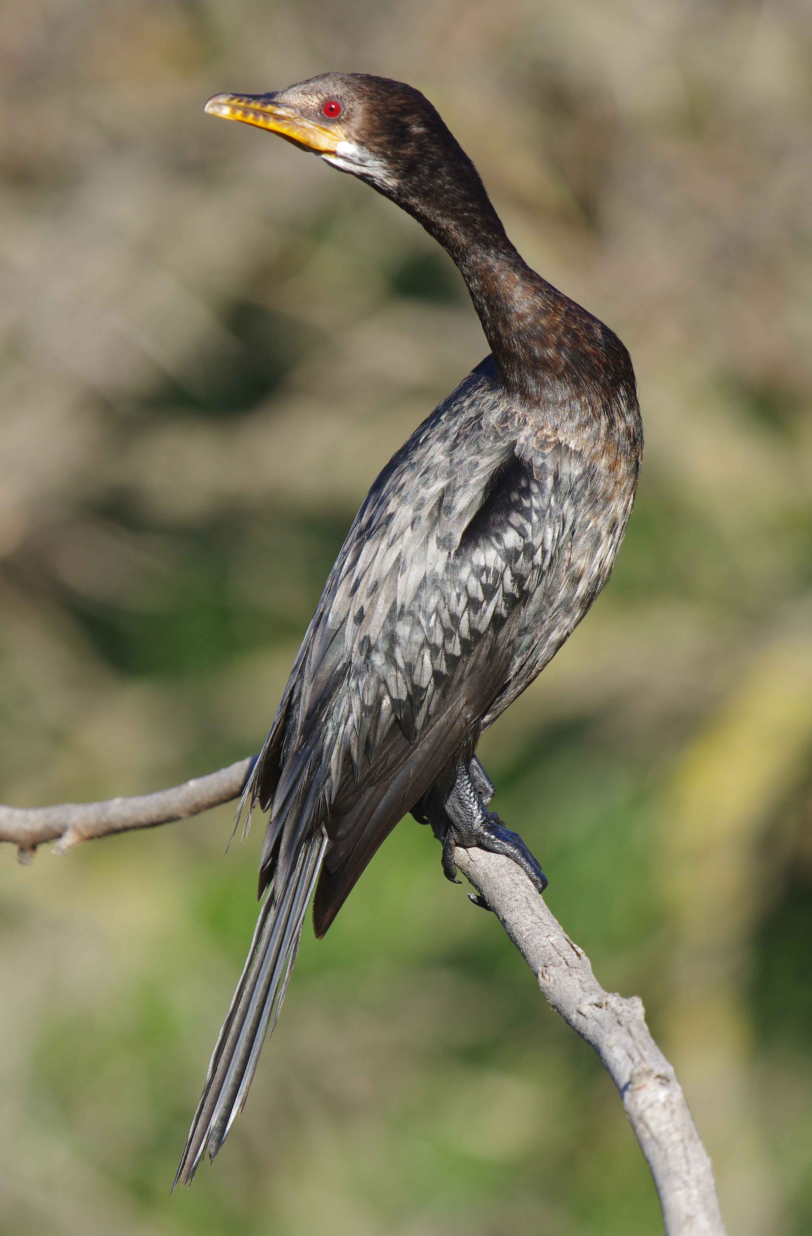 I find cormorants an interesting family of birds. So far I have photographed 12 different species, (they can be seen in my galleries here .) In South Africa last week I managed to photograph 5 new ones. Possibly the most attractive species seen was the Reed Cormorant (above), they are also known as Long-tailed Cormorants and found commonly all over Africa. I was sat waiting for a Malachite kingfisher to perch in front of the hide at Intaka Island when suddenly this magnificent little cormorant flew in to land on the perch and then after a few minutes went down in to the water to fish.