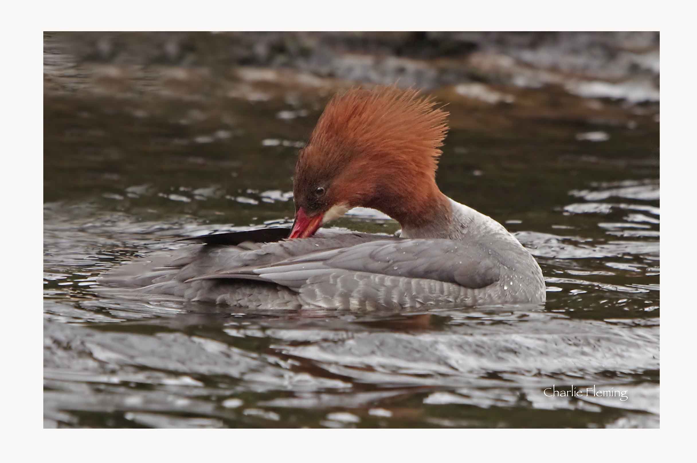 This "icon" above is a link to a Podast where I talk about the Goosanders seen from my hide this morning. Click on it to listen.