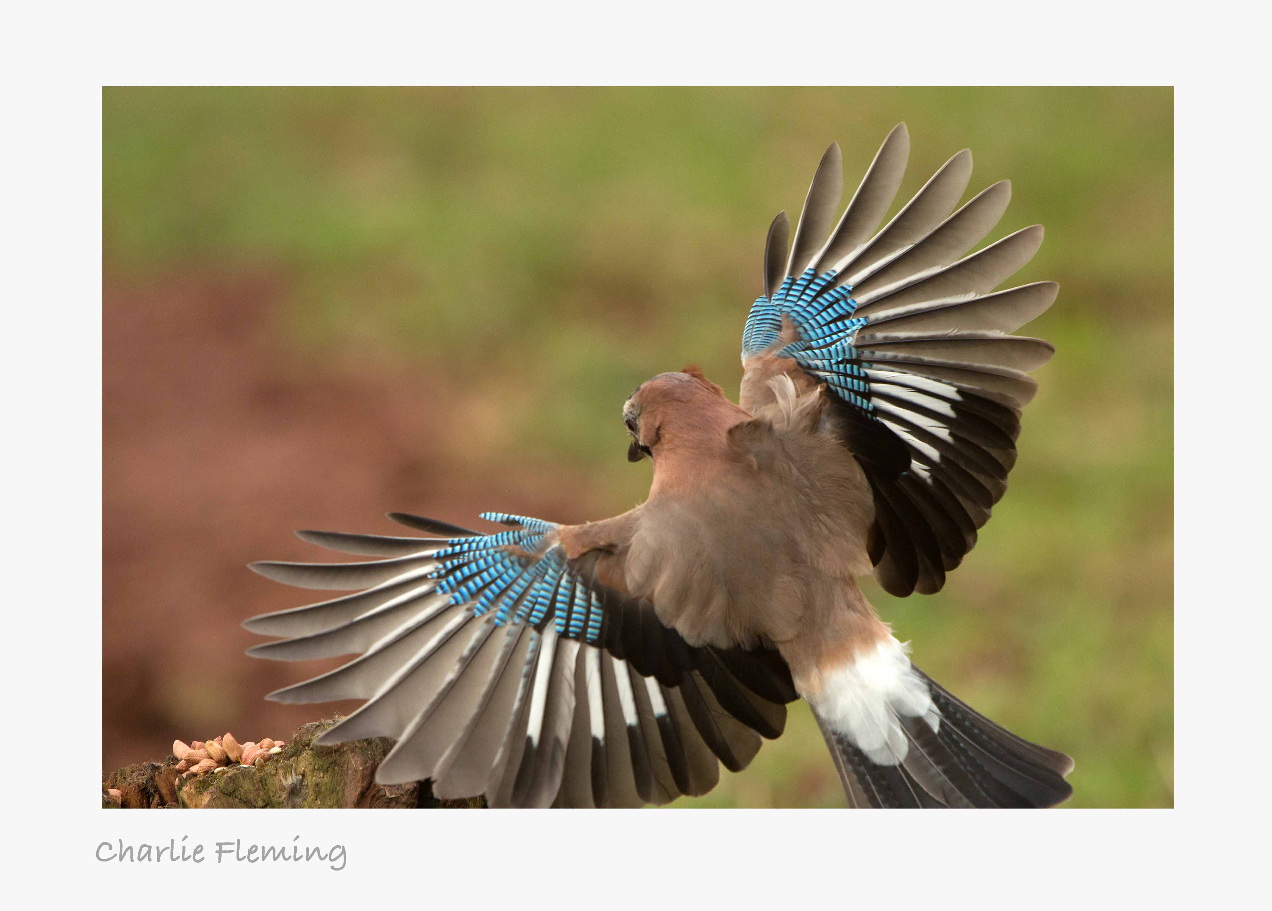 With some bright sunny weather this afternoon I returned to my caravan hide where I was confident that I would be able to photograph the Jays that always put in an appearance to take peanuts that I put out for them. There is a pair and I can recognise them both visibly and also by the noises they make. One, the male is a great imitator and his favourite sound is a distant Buzzard call. They were taking the nuts today and stashing them in various places around the field.