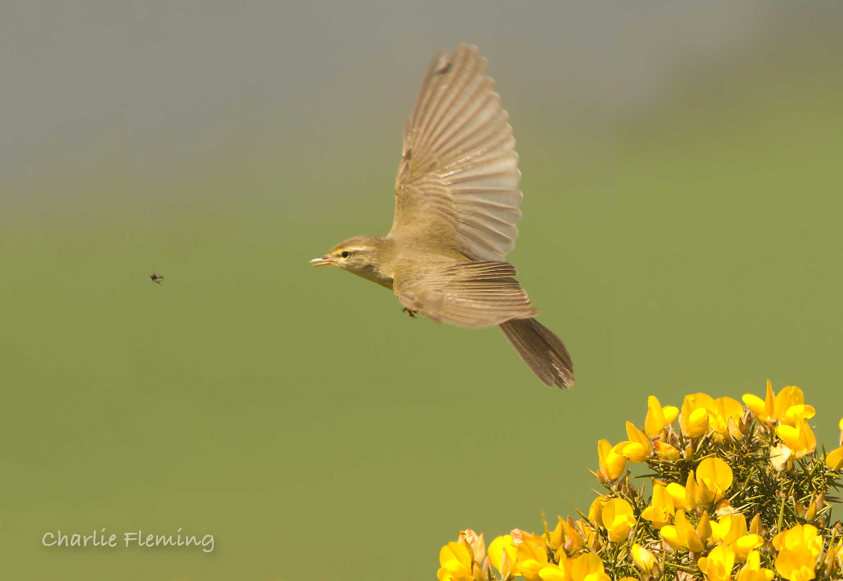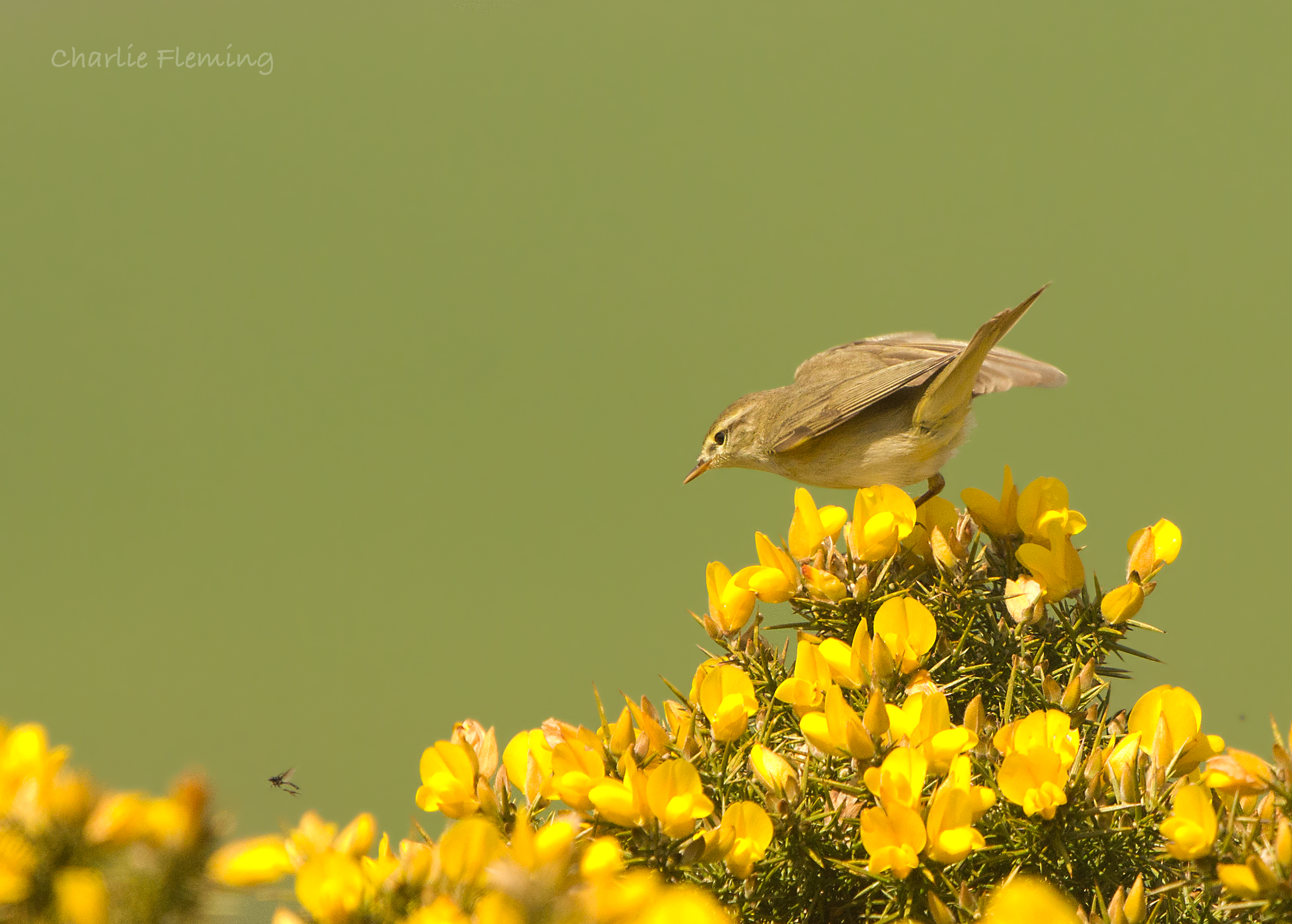 I was photographing Willow Warblers out on the edge of Dartmoor today when one bird seemed to focus on a small fly. I quickly snapped off a few shots and was pleased when I saw that I had actually captured the action so to speak. It must take a high degree of agility and skill to capture a fly in fight like this and one of the beauties of photography, particularly high speed photography, is the ability to freeze this kind of action that can't be seen with the naked eye.