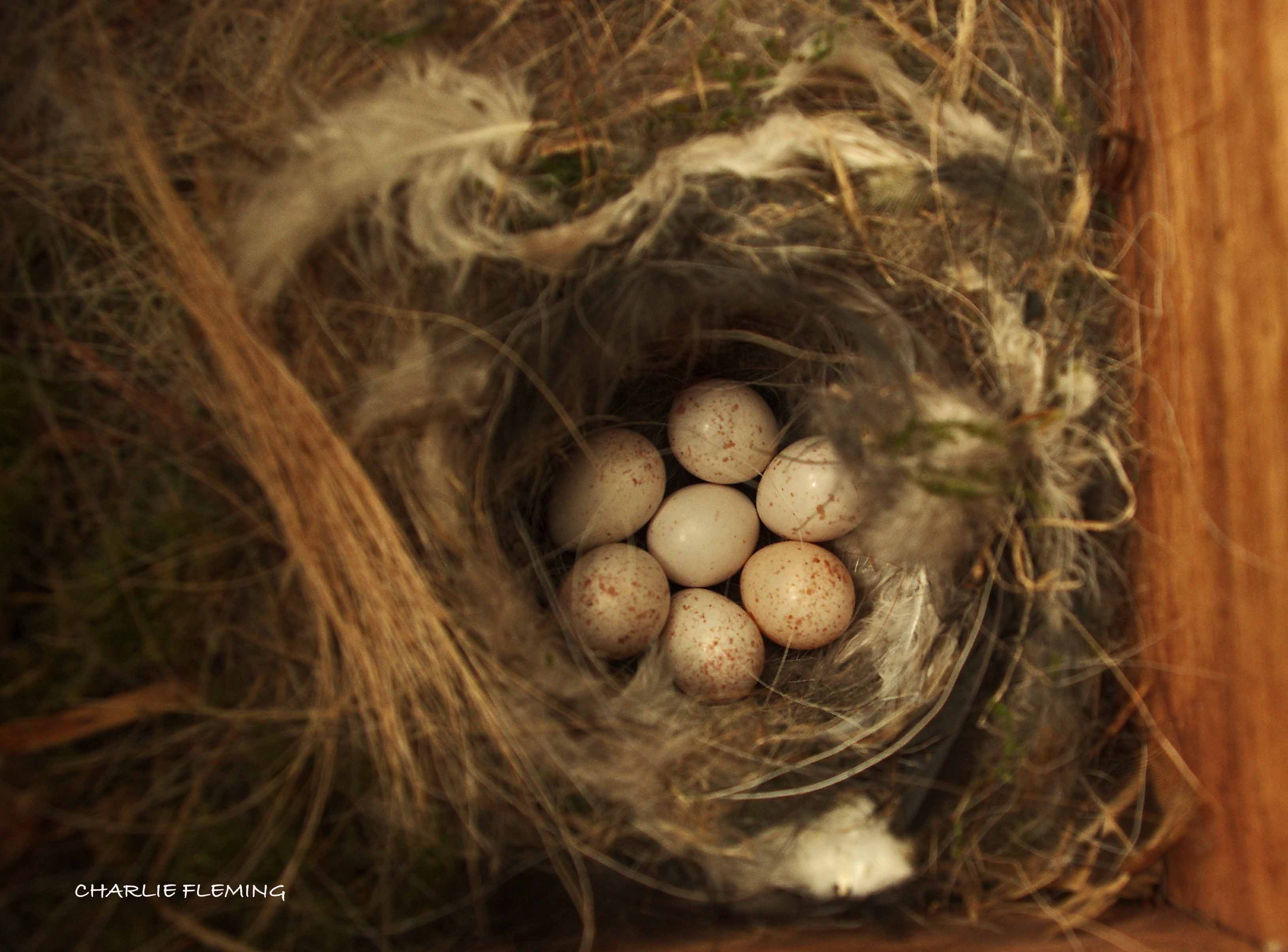 We put a couple of nests boxes in the wood last Autumn and as spring arrived I kept my eyes on them in the hope that Blue Tits would use at least one. I knew that one of the boxes had been used for roosting over the winter and I kept a close watch on it to see if any nest building took place. It all started in April when at first, a few bits of moss were seen in the box and this was gradually added to over the course of the next week or so. It was obvious that a nest was being built. Things progressed really well and eventually it was almost full of moss and a large amount of downy feathers and animal hair. The eggs when they arrived were laid in a cup in the corner of the box and 7 were laid on consecutive days. Incubation has begun and I could see when I checked today that at least 6 of the 7 look fertile. I can tell this because they look darker and heavier. When they are first laid you can see, just by looking in the nest, that the eggs are translucent at first, once the embryo begins to develop the eggs look darker and heavier. As a way of explanation it is similar to porcelain and pottery, one is almost see through and the other appears solid.