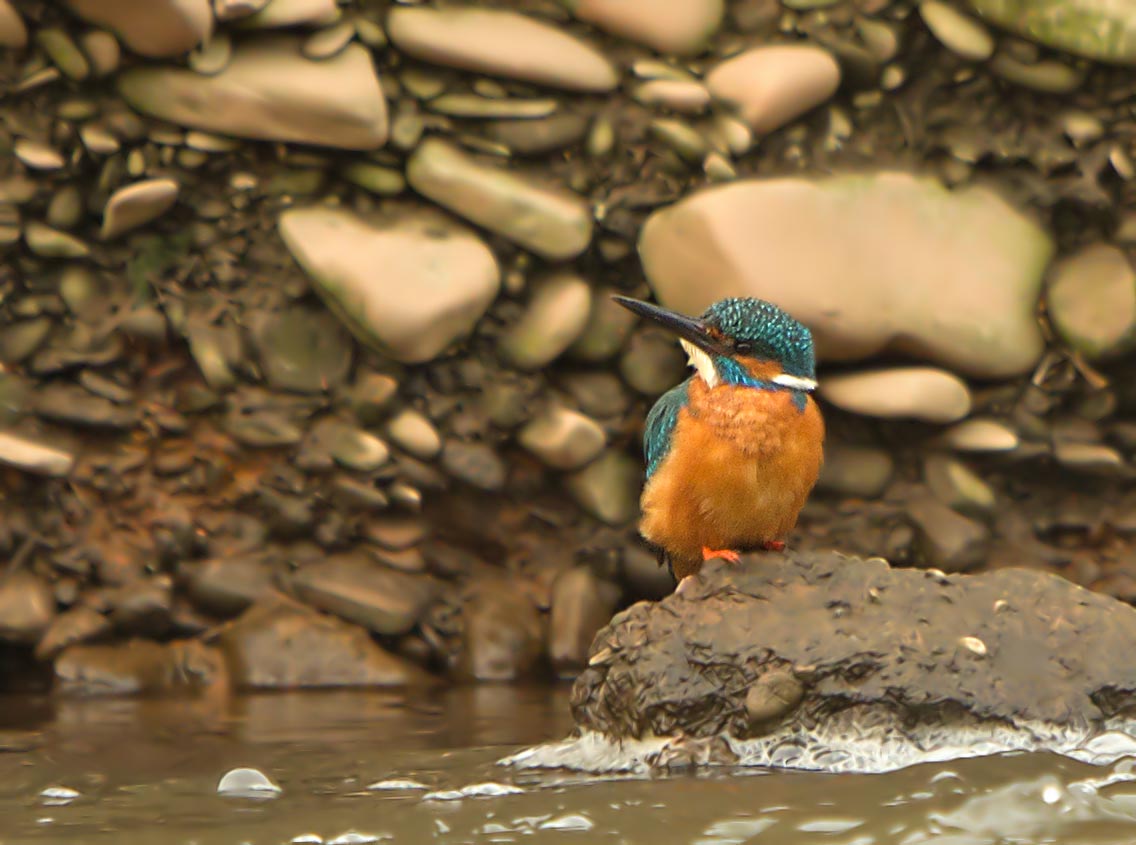 It was a good 30 minutes before I saw and heard the first bird of the day.  A kingfisher seemed to be flying up and down the river in front of the nest burrow.  I could hear it calling for several minutes both to my left and right but I couldn't seem to see it.  Then I realised that it was perched at water level just beneath the nest and it continued to call.   I assumed it was one of the youngsters and it wasn't until I fixed the lens on it that I could see that it was the adult male.  I realised what was going on when after 10 minutes I caught sight of a Kingfisher disappearing in to the nest burrow. Then another bird, obviously the female who had apparently been relieved of duties in the nest flew away up river.   The calling male was letting the female know that he was there and ready to take over.  What is going on? There are two possibilities. The first could be that there are still almost fully grown chicks in the nest still waiting to fledge?  Or more likely,  the female has already started on a second clutch of eggs and has begun incubation.  I am going with the second theory because if there were near fully grown chicks in the nest, food would be delivered almost constantly and this is not the case.  It is odd though that the youngsters from the previous round are being allowed to remain in the territory.  Later on before I came away I saw two other Kingfishers, obviously youngsters.