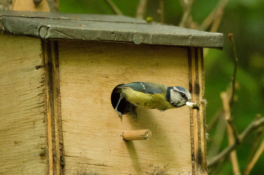 My breeding Blue Tit nest box has been interesting today and yesterday with the youngsters about to fledge. The parents are visiting the nest every minute or so with beaks full of food. I dont know how many youngsters they have but there were 7 eggs so there may be 7 hungry mouths to fill.