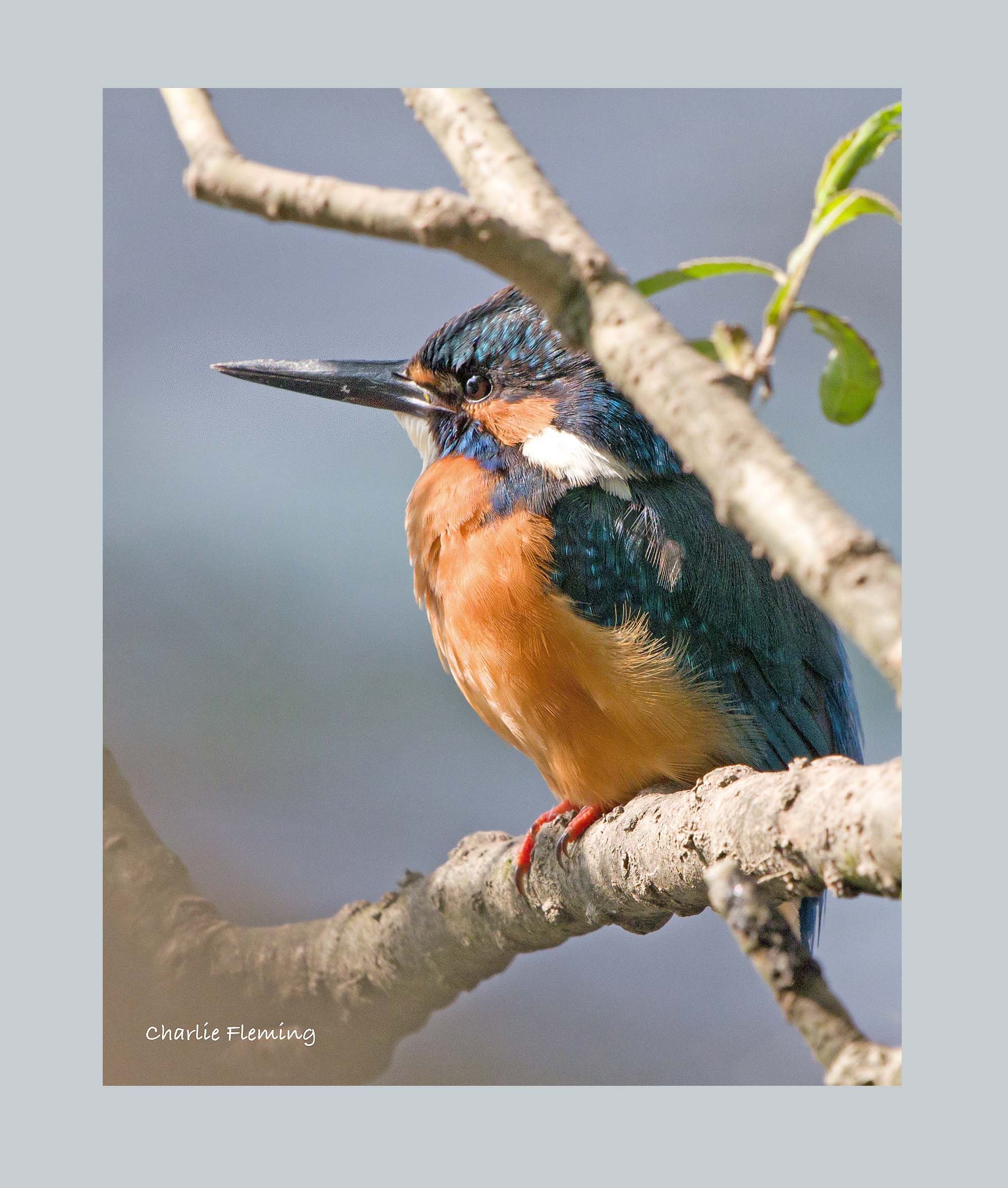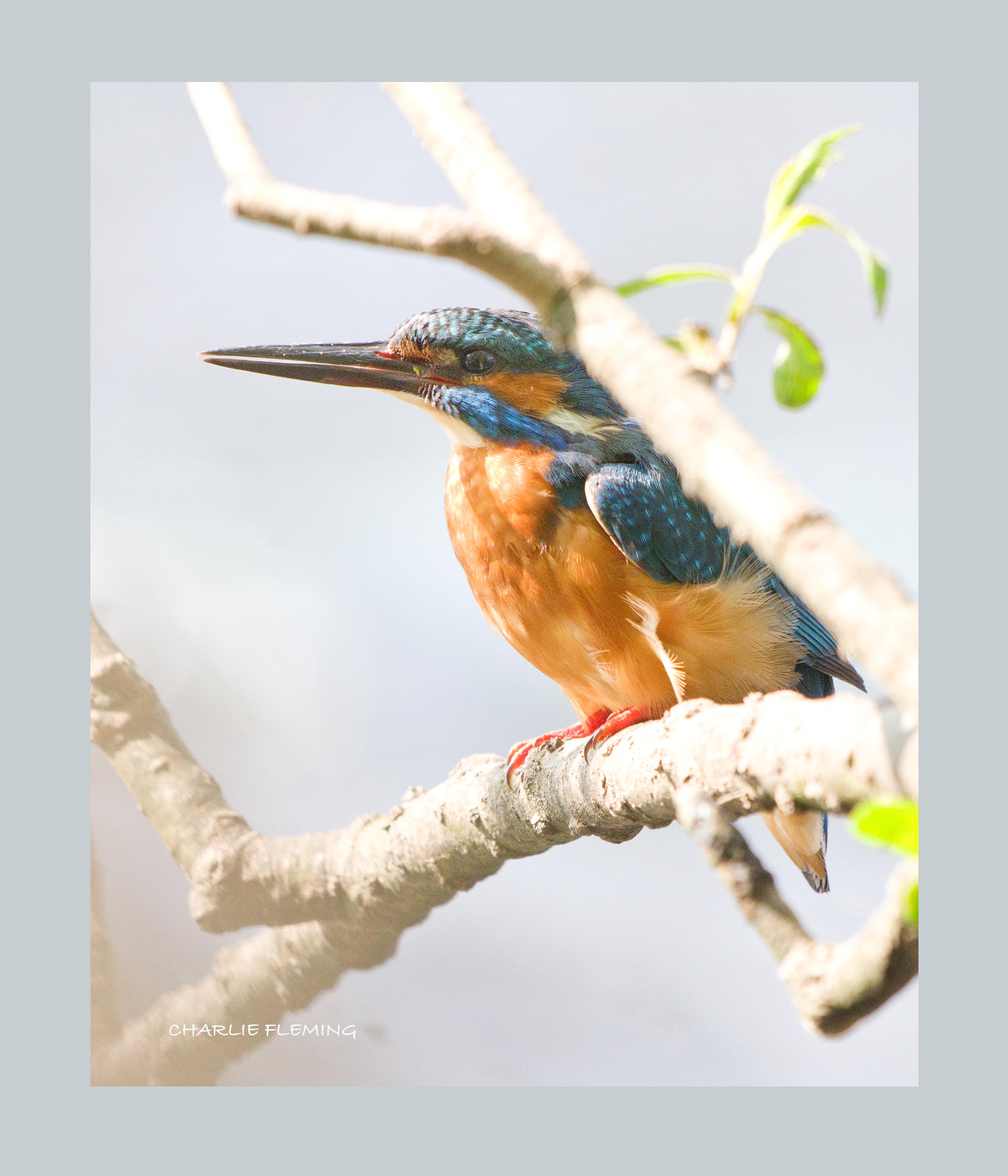 I had a strange premonition this morning as I walked towards the Kingfisher nest site, the thought struck me that it was about time one of them came close enough to get a good photograph. I had been inside the hide, which is opposite the nest burrow for just 6 minutes when I heard a Kingfisher approaching from my right and then he landed in the willow tree in front of me and to my left and at last, very close. I worked out that I have been watching for a total of 16 hours so far and I have seen both birds almost constantly from the opposite bank and now here he was, right in front of me. ! As you can see, I had some obstructions to deal with, branches and the like and the light was not ideal, it was from behind the bird and almost in my face, fortunately the sun went behind a cloud for a few moments and I had the opportunity to get some half decent pictures. I needed to use all my experience to make the best of the opportunity. This is the male bird, you can tell by his solid black beak, the female has an orange lower mandible. He remained on the perch here for almost ten minutes before moving off to join his mate who had flown from the nest burrow. I couldn't see him now, nor the female but from the amount of calling I imagined that they were mating. I didn't manage to see what hapened next but I think he flew in to the nest burrow. I was slightly concerned though because I hadn't seen either bird enter the burrow yesterday or today but then I caught sight of one disappearing inside, confirming that breeding activity is taking place. It seems that the female is spending most of the time in the nest. I have no evidence that proves the male has done any incubating as yet but thats not to say he hasn't. The male is far noisier than the female, he always calls to announce his presence whereas the female is more furtive. However, she does call as well. I am not certain but there seems to be two differing calls, without any scientific evidence to prove it but it seems to me that the female seems to have a two sylable call, differing to the male's single sylable. I actually stayed at the hide for 3 hours this morning and during that time the male came to the same close perch on three different occasions. On the last visit he first flew to the nest burrow calling loudly all the time, he didn't land but circled around and then came over to my side, landing in that very same spot and this time with a very big fat minnow in his beak, held tail first. This was without doubt an offering to the female. He reamained on the perch with it, calling constantly, for a minute or so. I was praying for the female to join him, hoping to see a common breeding interaction called the "fish-pass" but she didn't, much to my disappointment. Eventually he gave up and flew up stream with it. I was keen to see if any of my pictures were aceptable and I left for home just as the clock struck noon.