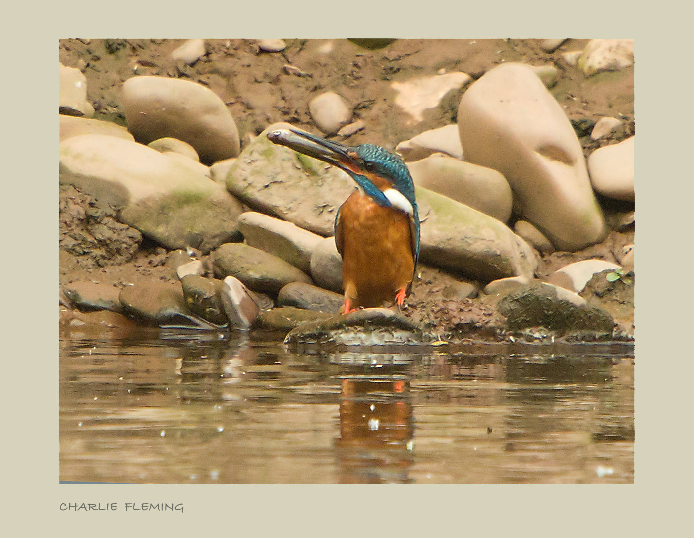 Quite interestingly, whereas yesterday the birds always seemed to arrive at the nest from down stream, today appeared to be the opposite which suggests that they are returning repeatedly to a spot where they know there are shoals of small fish. Why go looking elsewhere when you know a good source of food. I have come to the conclusion that if the birds are delivering a smallish fish, then they will fly straight in to the nest burrow without even calling. However, when they have caught a large fish such as the one pictured above, they tend to perch on the bankk beneath before they deliver. Quite why this makes a difference is hard to say. This is a very large prey item even for an adult, surely the youngsters must be very advanced and almost adult size to be able to eat a fish this size.
