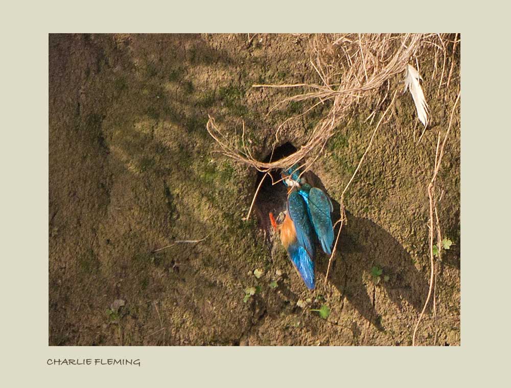 It was more of the same at the nest this morning but it is worth recording a pattern that has started to emerge. At first when I arrived, it was 40 minutes before I even heard a Kingfisher let alone saw one. The usual fears started to go through my mind as I waited, had they been disturbed so much yesterday that they had deserted the youngsters or had they fledged the nest and departed the area? Both of those scenarios were dismissed when I heard a bird at last. As is usual, after hearing the bird and then noting the silence it was less than a minute before, there it was disappearing in to the burrow….. always a relief to see…… Then, during the next few minutes their were two further visits before it went quiet again and after another half an hour there had been no sign. So, heres my theory. The birds have settled in to a pattern of feeding each youngster, one at a time and then resting for the next 50 minutes or so before reapeating the pattern again. Could this indicate just 3 chicks in the nest, it certainly points to that. But what is now becoming obvious,incubation commenced later than I thought. Also, I have read that chcks can spend an extended period in the nest depending on the amount of prey that they recieve from the parents so it could be that the disturbance which takes place with alarming regularity is having an effect on the progress of the youngsters. More likely though, and having studied my diaries from earlier on, it seems that incubation probably started 5 days later than I guessed which would mean that the chicks are due to fledge either today or tomorrow. I hope so!