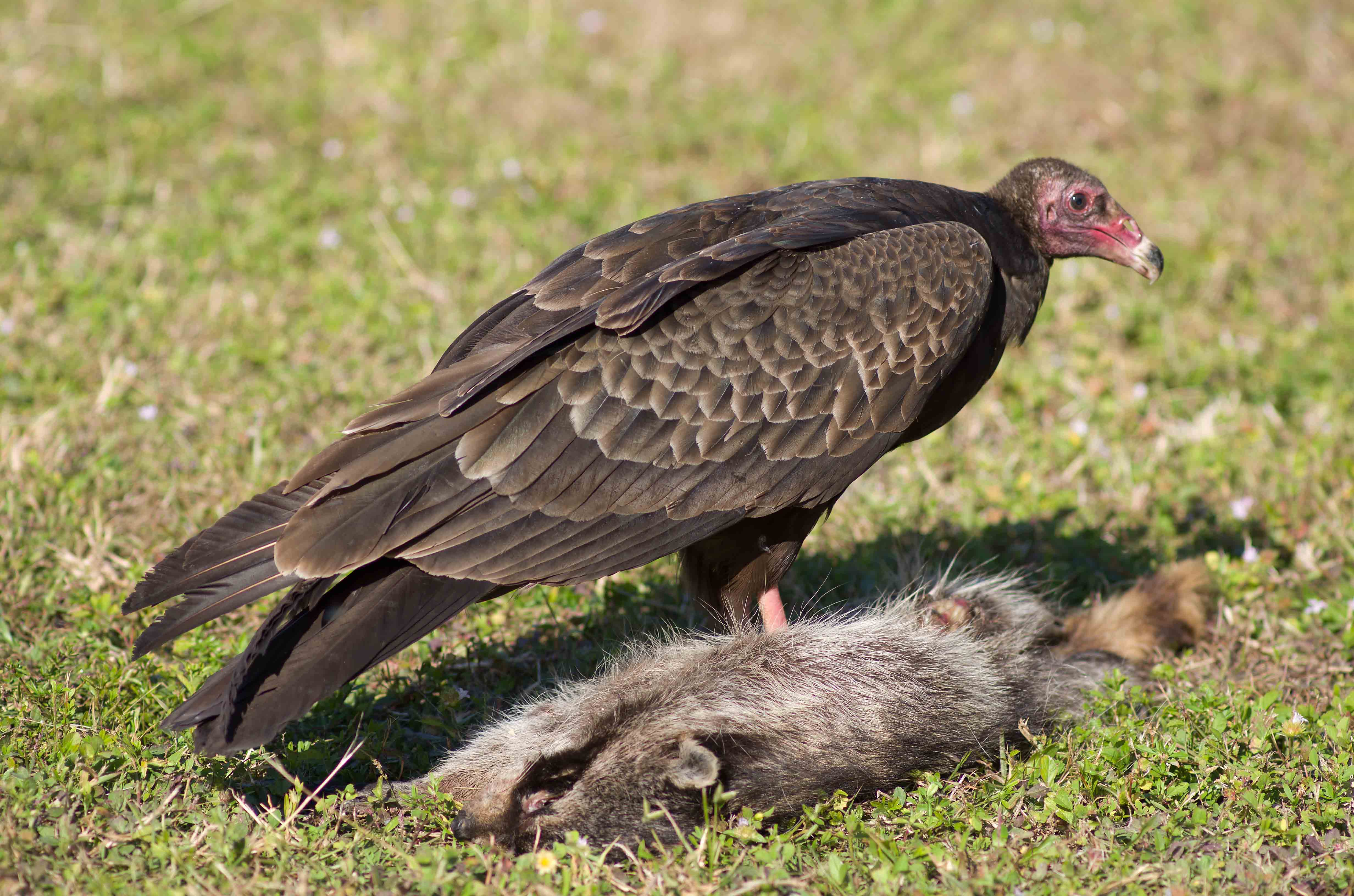 I have an extensive collection of photographs featuring around 1000 species from 5 continents. I get a lot of pleasue from looking at them and I have decided to feature them on the blog more often. Today I am featuring some vulture species. The first is the Turkey Vulture (Cathartes aura), a common bird in the USA. I see them on every visit to Florida and I have also seen them in New York State, Belize, Mexico and the Caribean. As you would guess, they are scavengers and do a useful job removing decaying bodies from the habitat. The Turkey Vulture is not related to the Vutures of the old world but convergant evolution means tha they are very similar. They are a large bird with a magnificent two metre wing span. They locate their prey by smell and can detect the chemicals given off by a freshly killed carcase which is an unusual skill. They are a protected species in Canada, USA and Mexico.