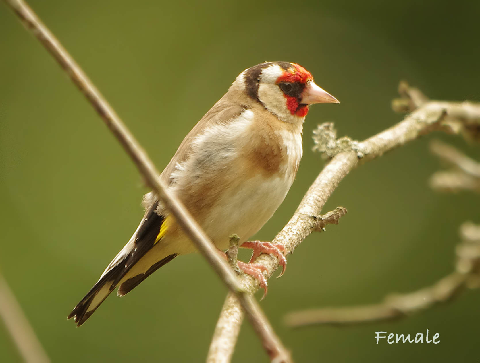 I have noticed over the years how often people come to the blog to try and find out how to tell the difference between a male and female Goldfinch (carduelis carduelis). I saw a pair today and it was so obvious which one was which. The female, as you can see was noticeable brown on the head whereas the male had a much darker mask… thats the dark patch between the eye and the beak. It's often said that the red on the face extends further back but in these individuals that isnt the case. However, in the female the red is not as intense and hass a little hint of orange. The male is much more intense red.