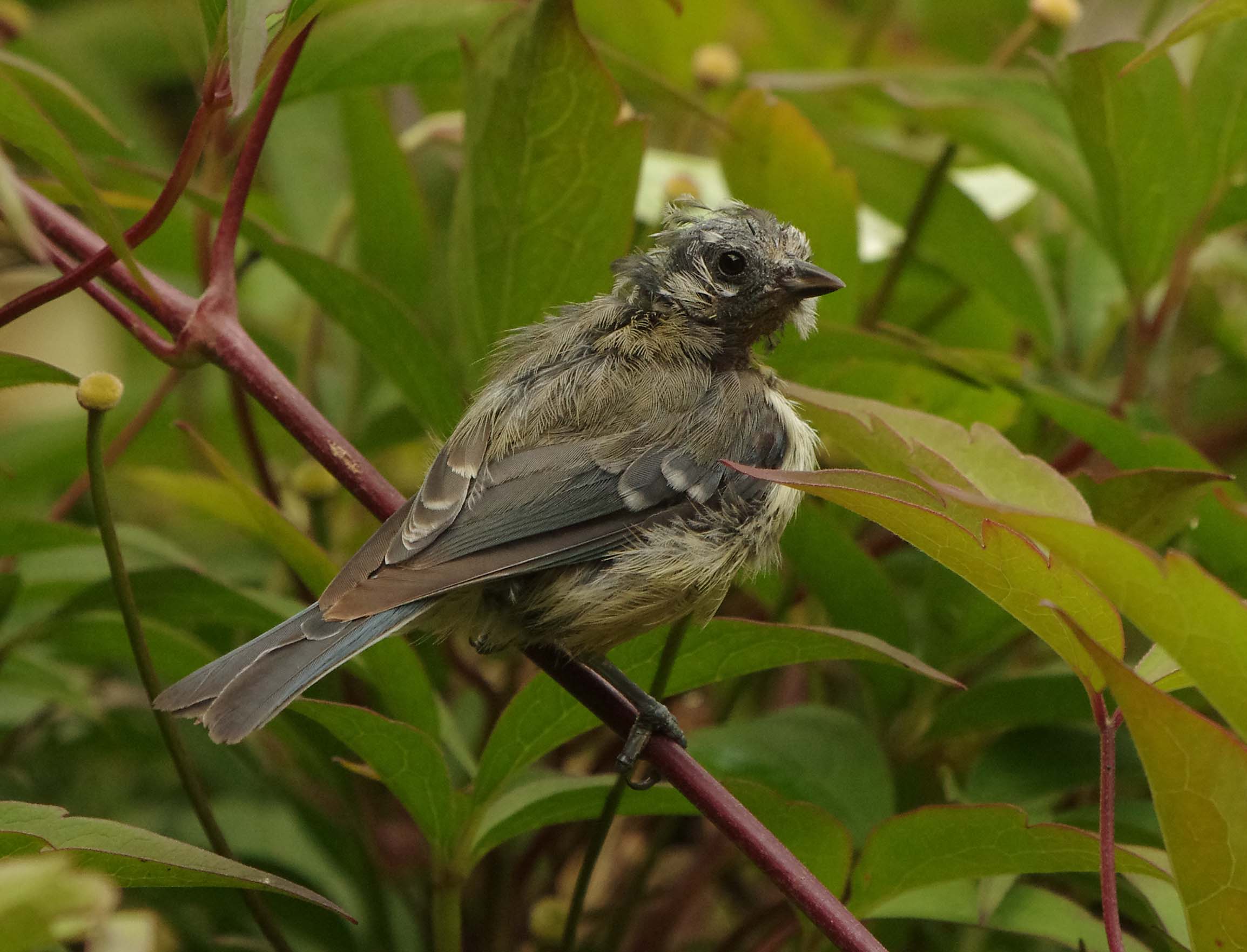 The woods and gardens have a different feel abou them now with lots of immature birds around. The adult tits are in a bit of a state and in their moult. This one is a real mess.