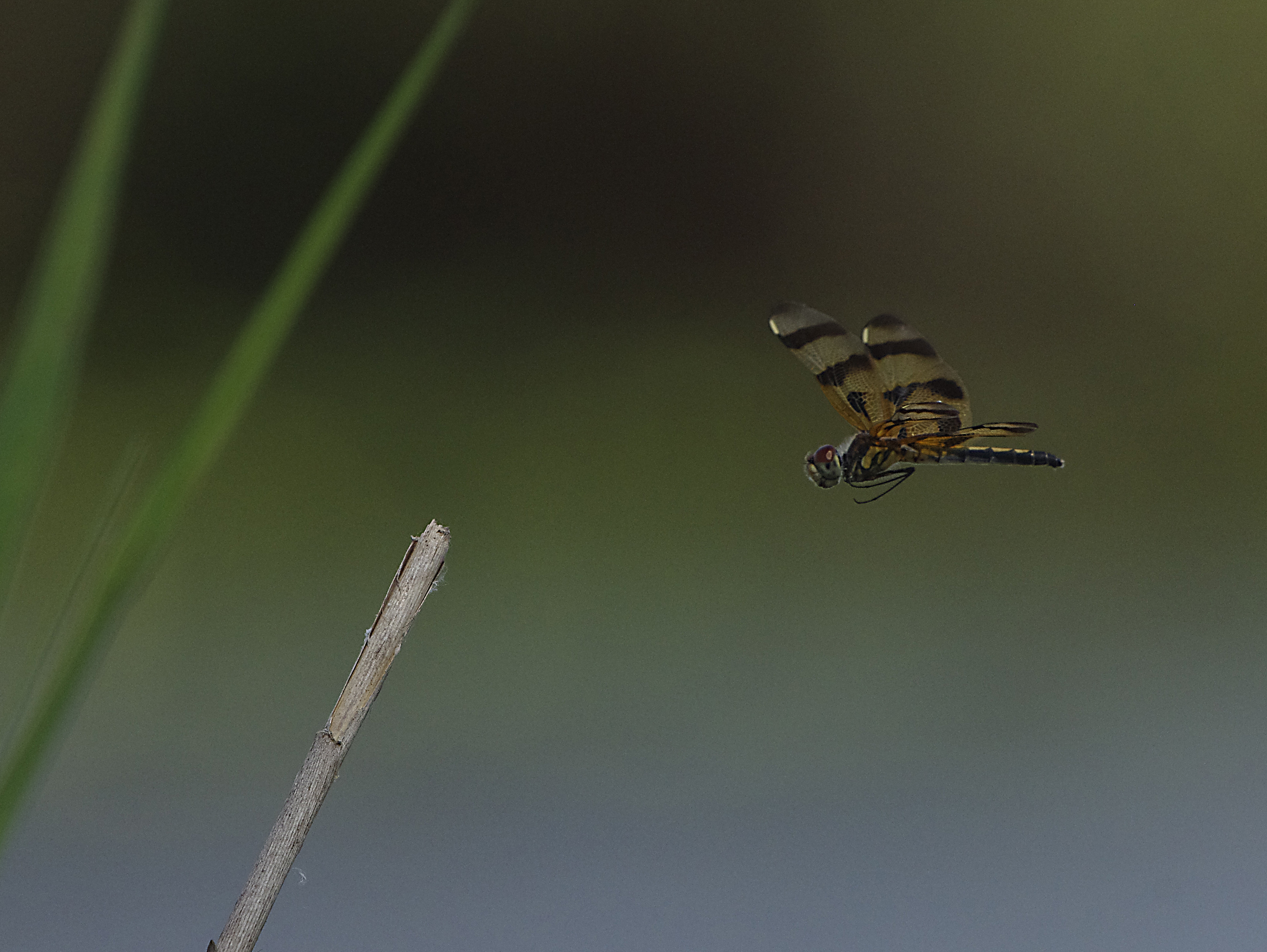 Thi is a Tri-coloured Heron, one of the most attractive of Florida's heron species. This one was feeding by creeping along the edge of the water and now and then, grabbing a tiny fish. Tri-coloured herons are smallish herons, quite common and seen regularly. I tried to photograph Dragonflies in flight today, with the bright clear light that you get here in South Florida, with a bit of patience this is a bit easier than at home in the UK. The Halloween Pennant (Celithemis eponina) is a very pretty Dragonfly, they also seem very common especially at this time of year.
