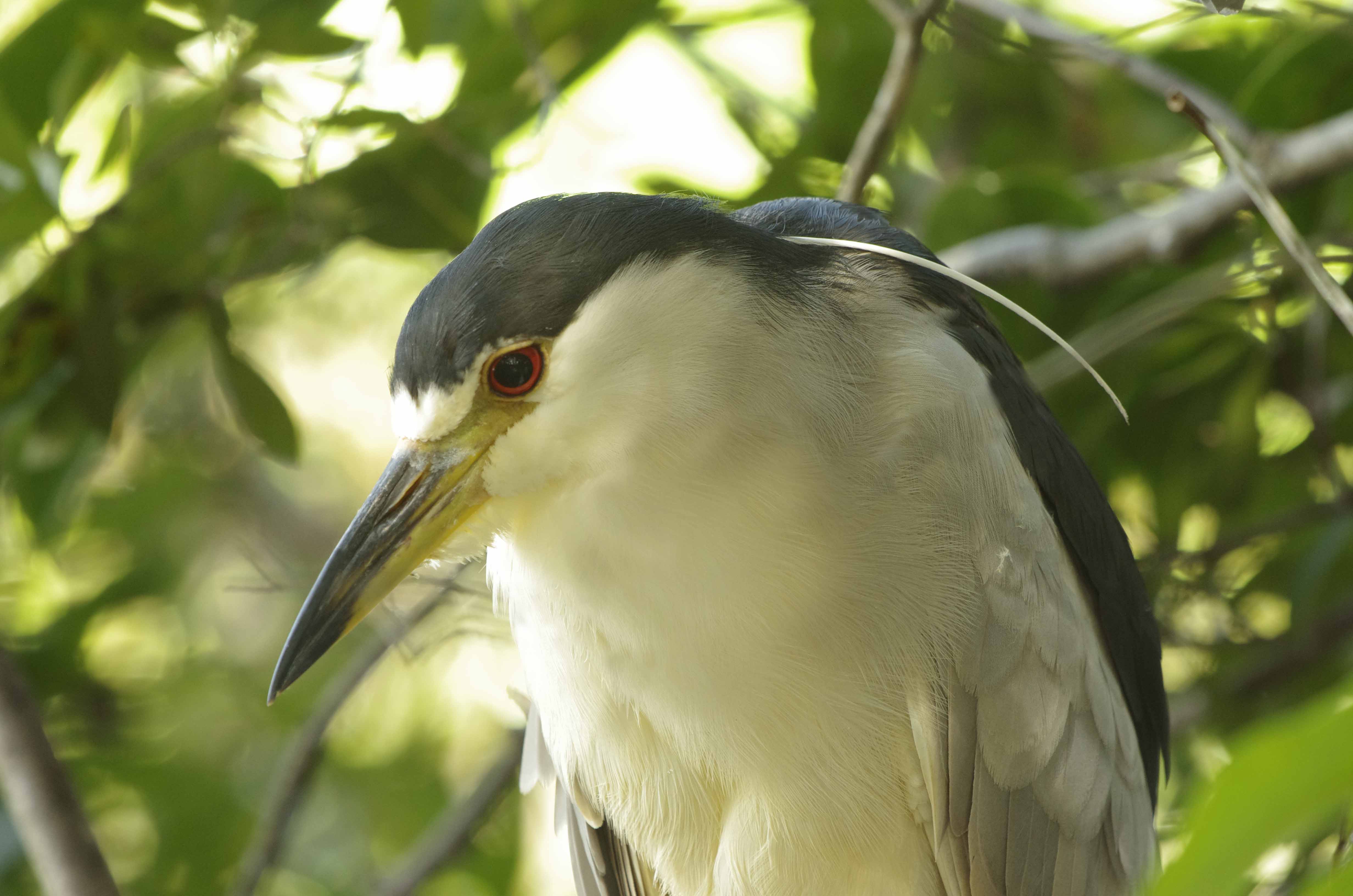 Apart from the Hummingbird, probably the best sighting of the day was a Black crowned Night Heron Nycticorax nycticorax. It was tucked away quietly on a branch close to a walk way. Jenny spotted it and then pointed it out to me. Even though it was close to the path it was hard to photograph because of branches and intense light bursting through the gaps. I havent been able to get close to this species before so it was nice to see it so close. We actually get this species in Europe and from time to time they are seen in the UK. Interestingly, they breed on every continent as well as the US. Look at that single plume on the head.
