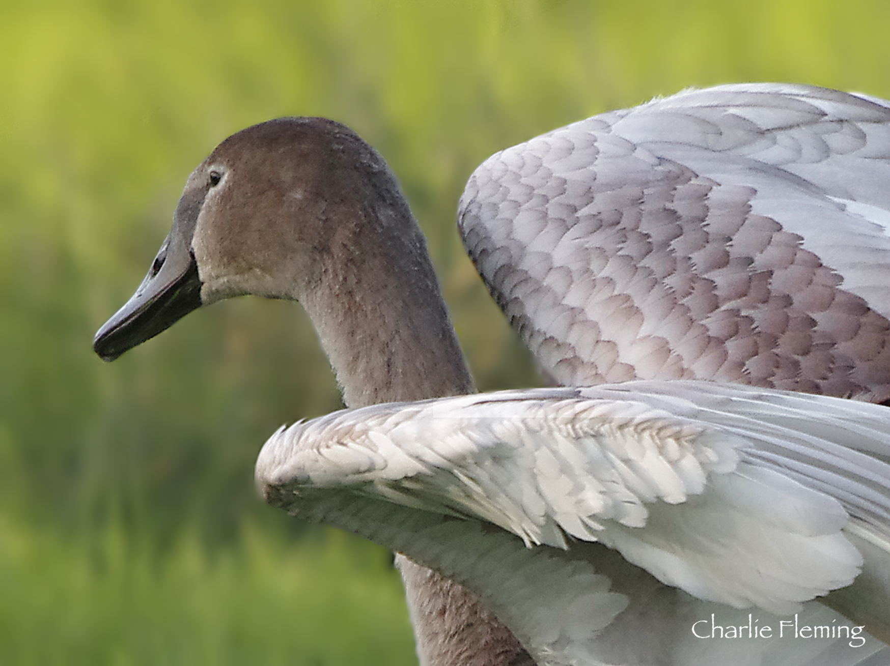 The Mute Swan is one of Great Britain's most loved species, not only loved but  afforded a unique status, not just protected but in fact every swan in England is the property of Her Majesty the Queen. They are such a massive part of the landscape that they are not treated as wild birds but taken for granted by everyone.  Sadly there have been recent reports of  attacks on swans by migrants from parts of Eastern Europe where they are not protected.  They are a massive bird with a huge wingspan.  They feed like a goose by grazing grass and eating water weeds.  Cygnets spend the first year of their lives as brown, dull birds and in the following spring they start to aquire their adult snowy white plumage.  Most people are familiar with the Hans Christian Anderson story that tells of the ugly duckling that is driven away in the autumn and then returns in the spring as a magnificent white swan. This is not particularly accurate as young swans at this time of the year are also quite handsome (as you can see).