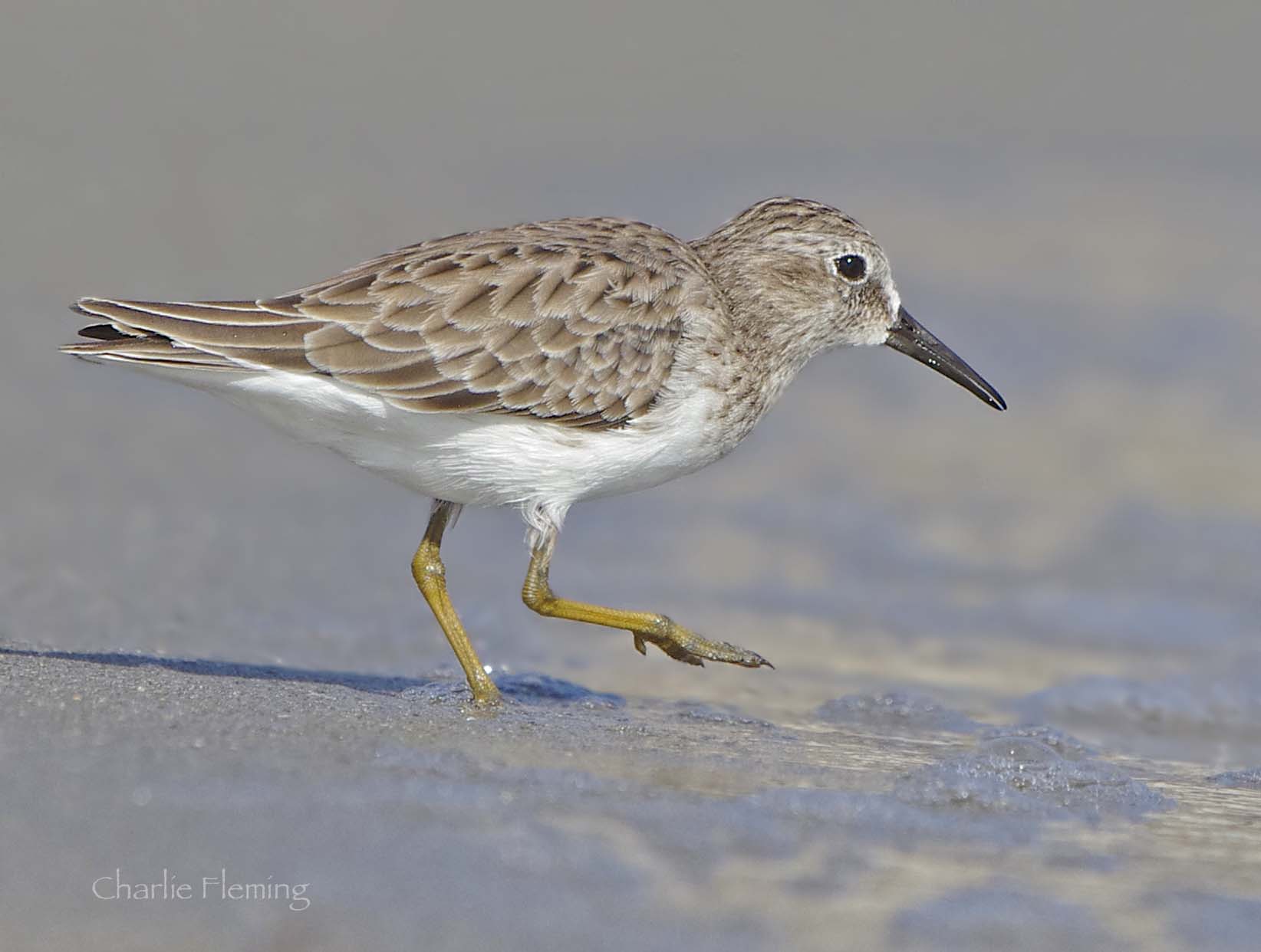 A bird that is easier to recognise is the Willet but even this species can be sperated in to two sub-species. I am quite confident that this is a bird of the western sub-species because of its slender bill.