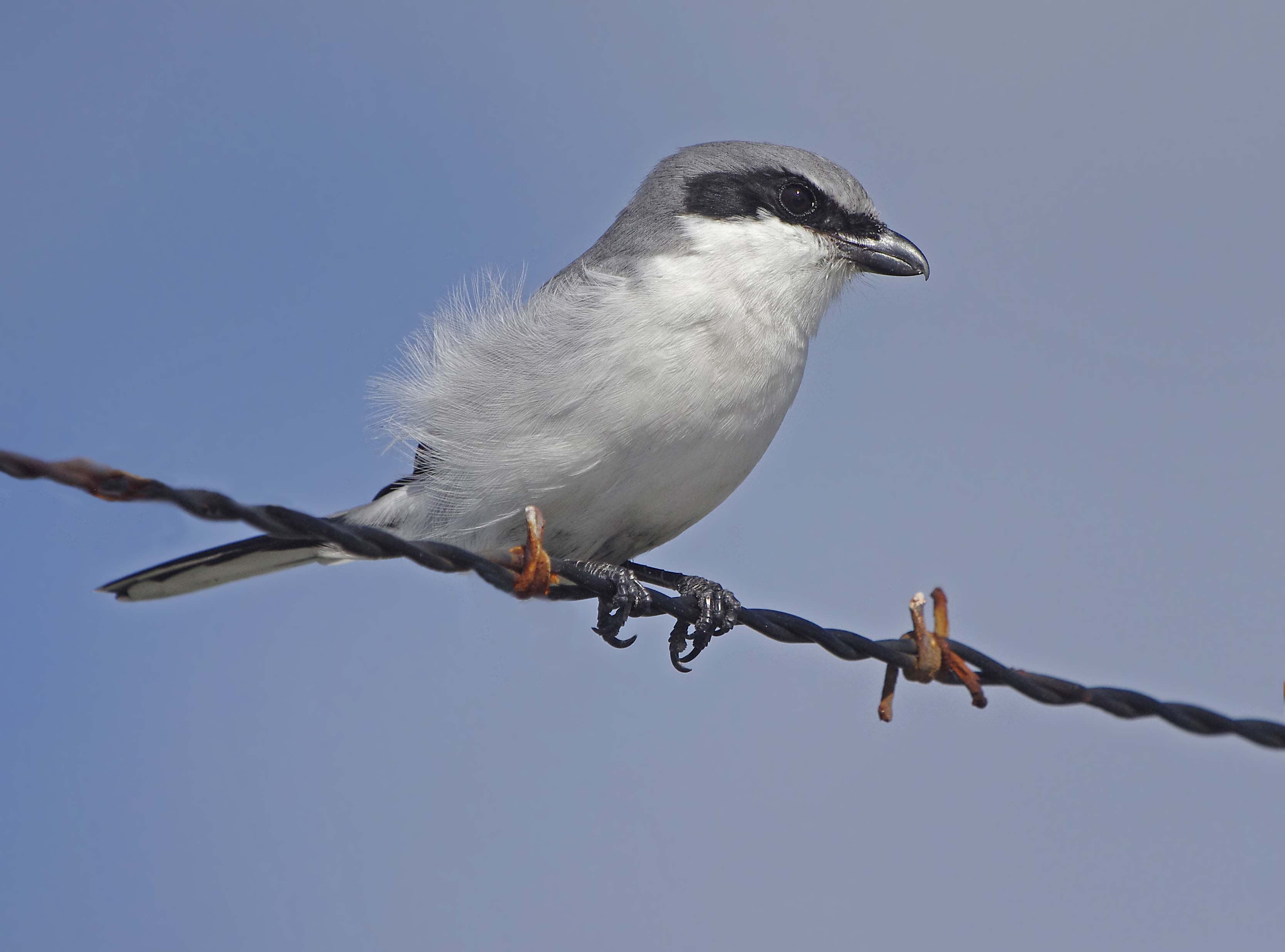 Having been back from Florida for more than a week now, I am sorting methodically through the pictures that I didn't have chance to work on when I was there. I didn't see as many birds on this trip as in previous years but with another years experience, I was hoping to improve my images. I have taken good photos of Loggerhead Shrike before but I think I have nailed this one. You can see a lot of detail and most of the bird is in focus. The light is always very bright in South Florida and it is not always that easy to deal with. When its very brigh,t the shadows are strong and the whites get burned out. The early morning, from dawn until around 10 is the best and when I returned to the spot where I had seen it before, at around 9 o'clock, I was very pleased to see it on the fence even as I got out of the car. It's method of hunting is interesting. Without exception, it would perch on the top of the 6 foot high fence and watch for movement on the sand dune beneath. Once prey was spotted it would glide quietly down and grab whatever it was. It seemed to be feeding on quite small flies which it would always eat before returning to the spot it had left from. I know that their prey can include small lizards and even mice and it would have been good to see it catch something like that but I wasn't that lucky unfortunately. However it's a smart bird and a fascinating experience to watch it feed like this. Having the opportunity to see birds like this from around the world is the reason that I love to travel and love to photograph birds. I find Shrikes in the genus Lanius very interesting and I have photographed several species now. One feature that they all have in common is the black facial mask that adults of all the species display.