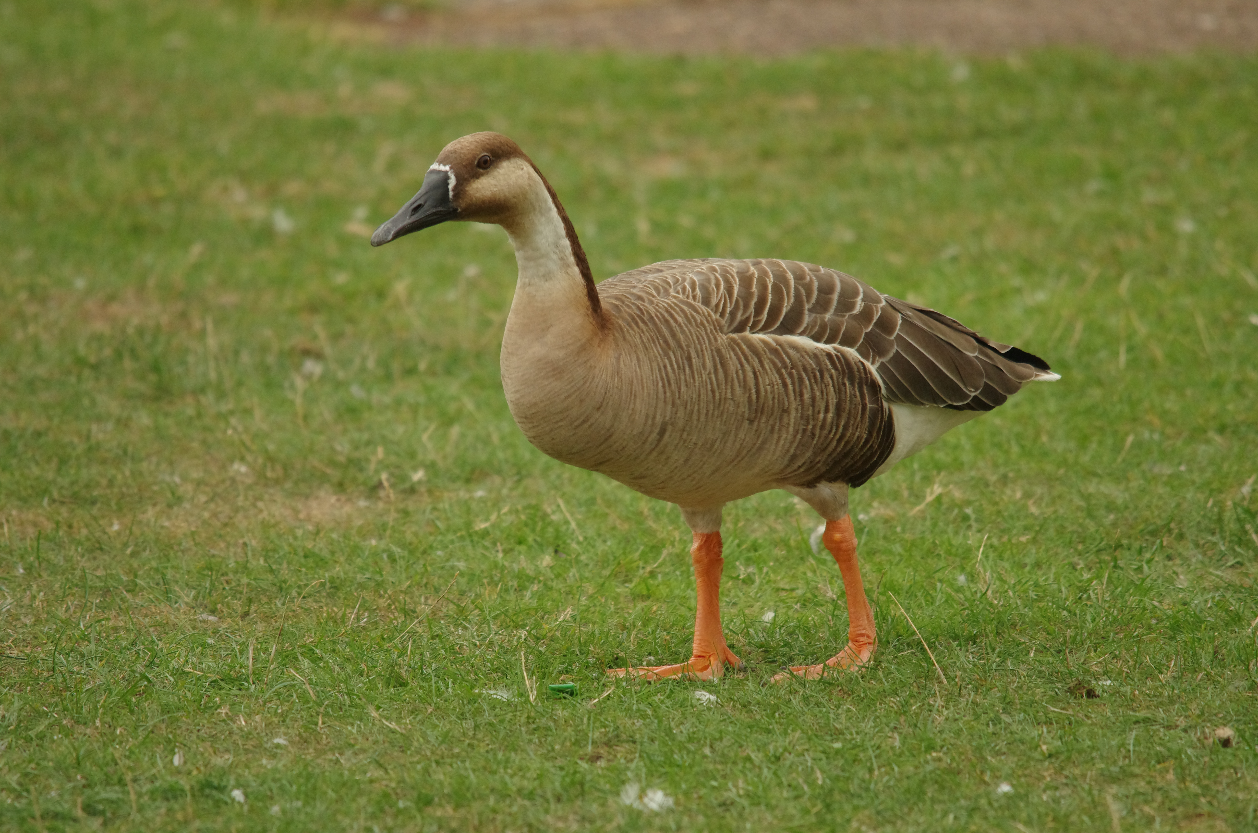 I photographed this goose amongst the swans and Greylag (farmyard type) geeese on Exetr Quay last month. I have been trying to identify it and eventually I have discovered that it is a Swan Goose (Anser cygnoides) In the wild this is a rare goose but there are a few feral birds living wild in the UK and this is one of them. It is an extremely attractive goose. You can see that, in common with the White-fronted Goose it has the same facial markings and it's obvious that they are closely related. It is living wild and free. As my gallery of Devon Birds exists to help people to name the birds that they see in Devon, I have included it.