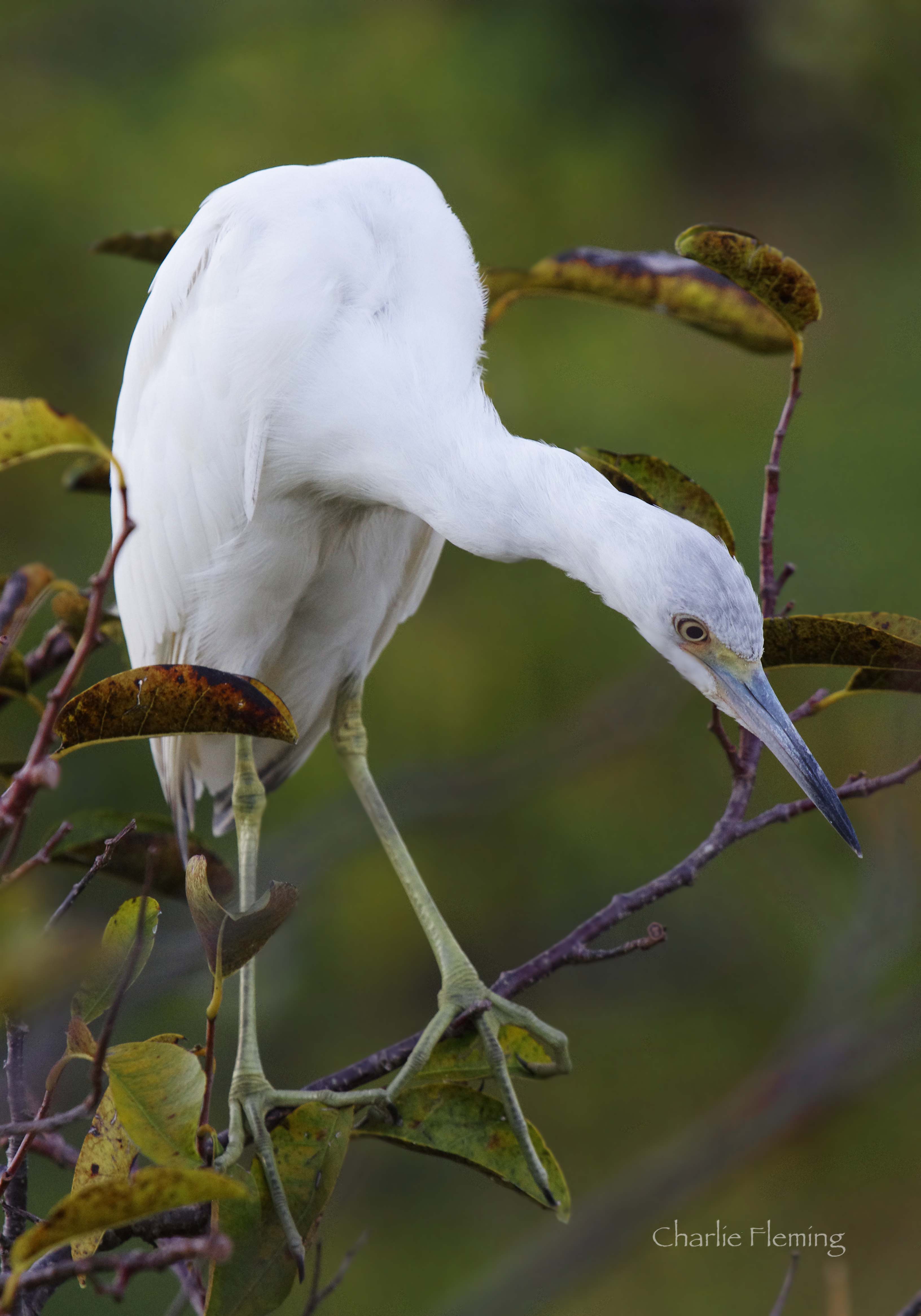 This is a juvenile Little Blue Heron, white as you can see until they attain their adult blue plumage. This was a very interesting encounter, it was almost dark as we left the Wakodahatchee Wetlands and the Herons were comming in to roost. This young bird was perched right next to the walkway and I could see instantly that because of the different light, I was going to end up with a special image. This image is not cropped at all and the only work I had to do in photoshop was to remove a little bit of noise.