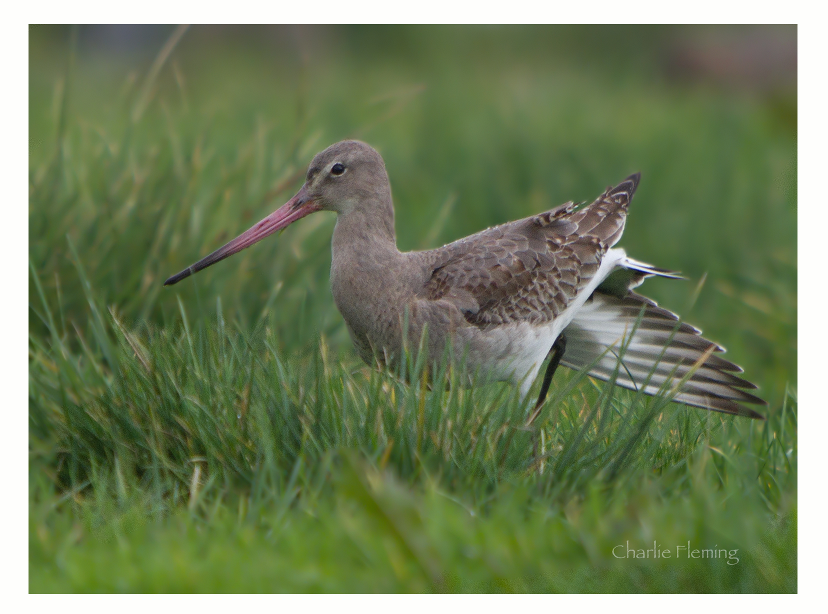 Awful weather here today in Devon, UK, a typical dull and dreary day that could be depressing if you let it. I went out anyway and I remember, as I stood there, thinking that it was cold and wet but then I wasn't going to see anything sat on the sofa at home. Thats the way it turned out, nothing particularly special for this part of the world but when it's quiet, Black -tailed Godwits do feed in the long grass and close enough for a photograph from time to time. I have a soft spot for Black-tailed Godwits, they are very photogenic even in their non-breeding plumage. They feed by probing in to the soft earth and with an obviously very sensitive beak tip they find earth worms deep in to the sod. They feed in the same way in the estuary mud. You will also see Curlew feeding in this way however Curlew have a curved beak and are rarely as confiding as Godwit for some reason. These Black-tailed Godwit are of the "islandica" race that breed in Iceland.