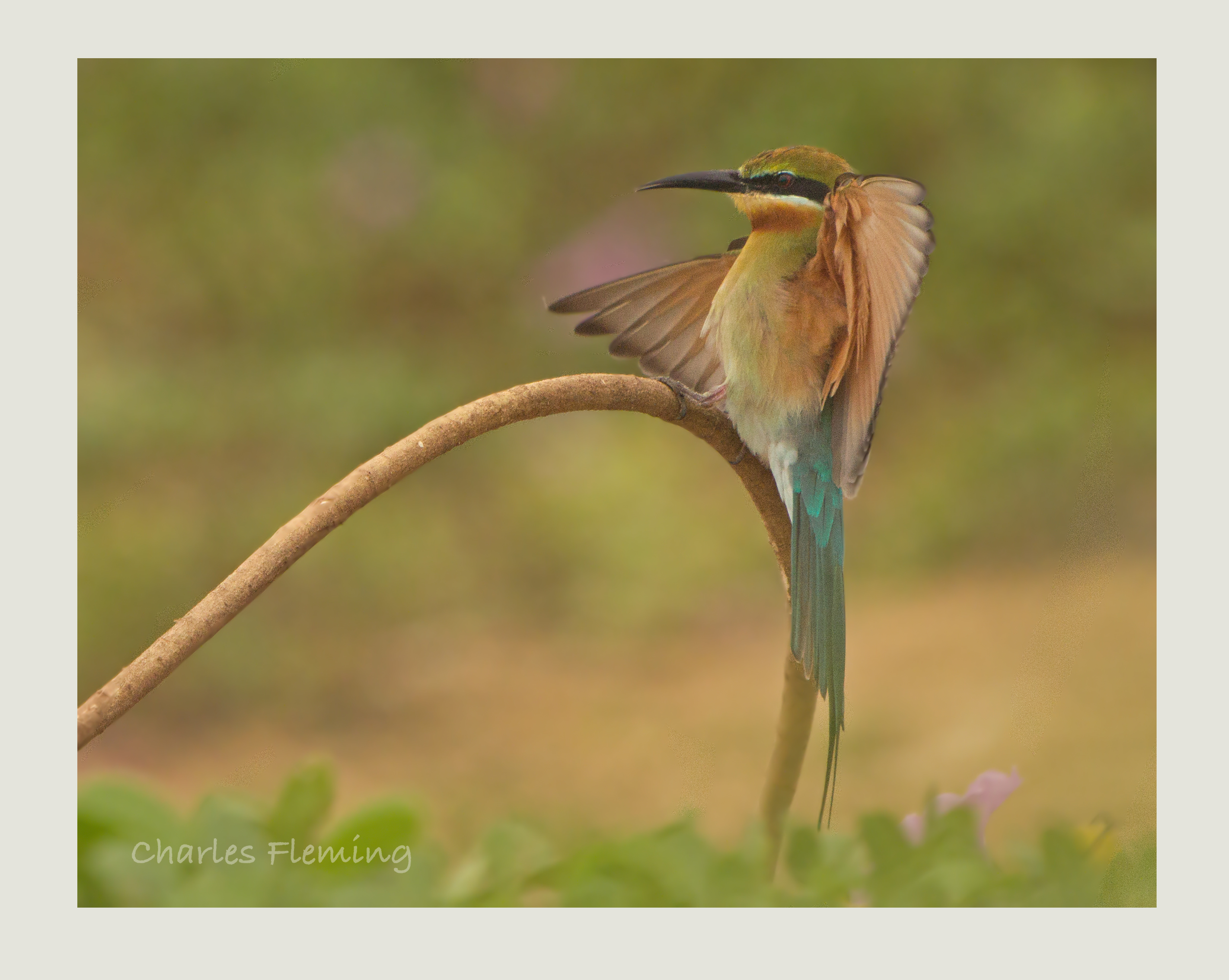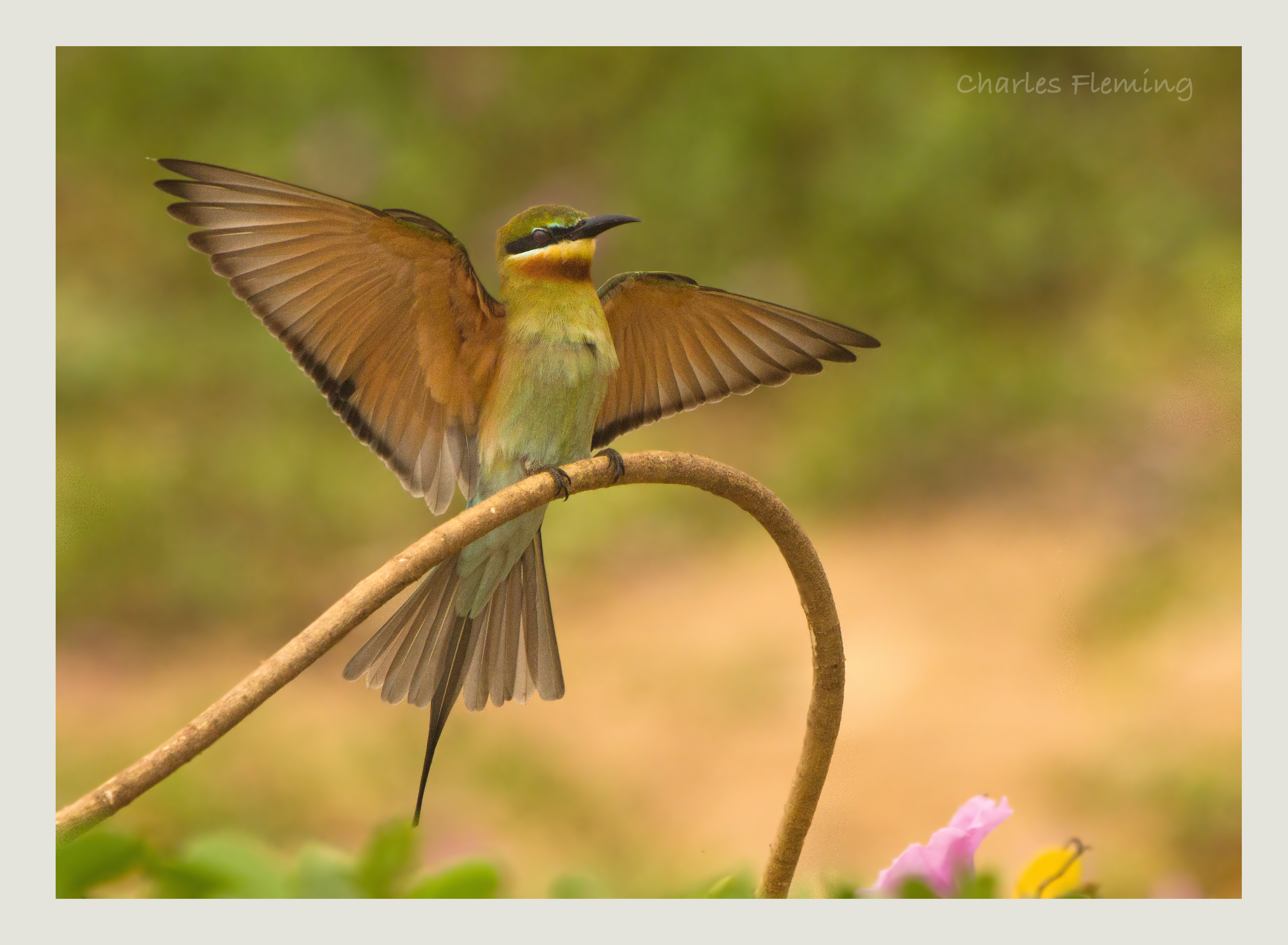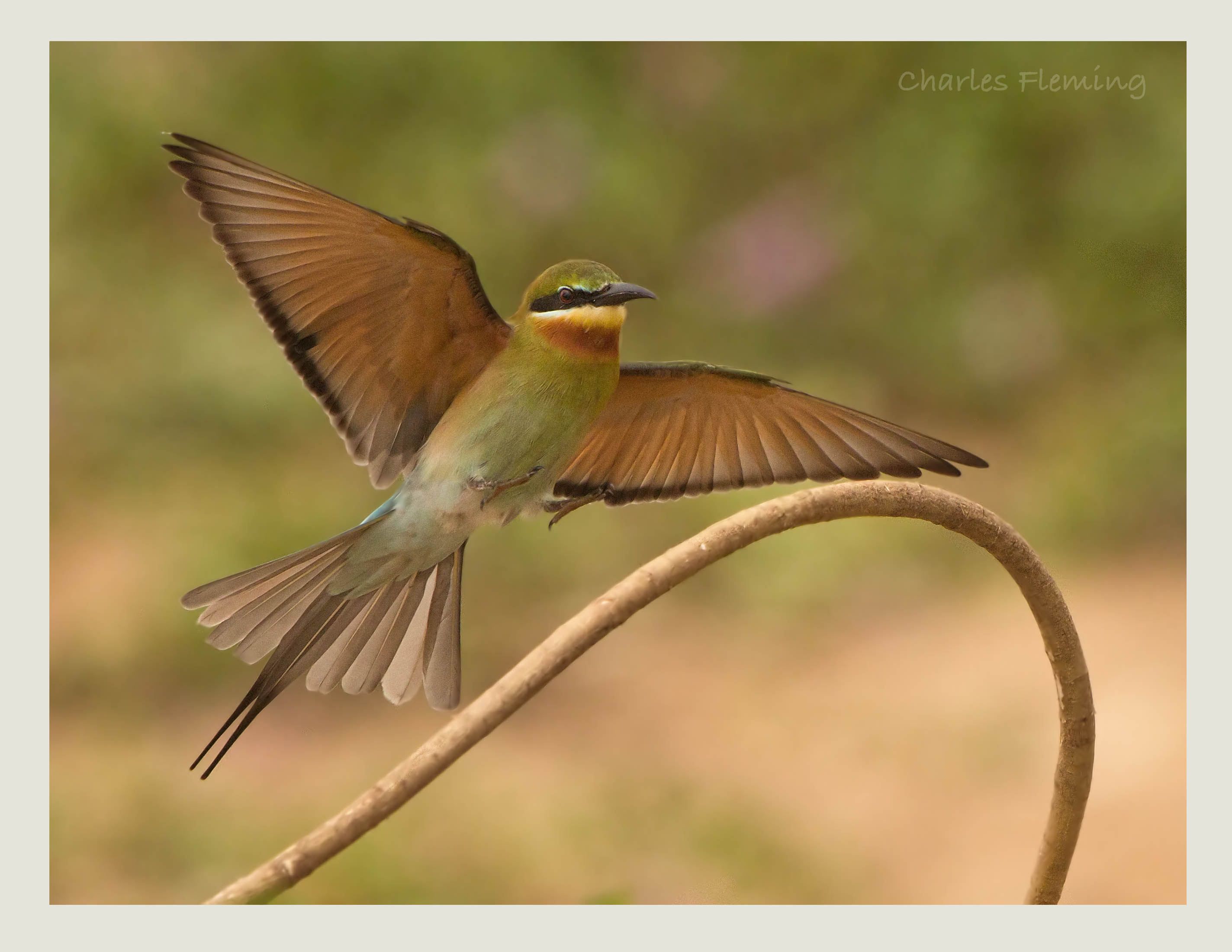 I had a great couple of hours early this morning with the Bee-eaters, a really common bird here. The species that I am seeing is the Blue-tailed Bee-eater. You can see them on just about every outing and hear them passing over head very regularly. Being in a situation to photograph a species like this is the reason that I came all the way to Sri Lanka. It took a lot of patience and persistence to get the shots. It's not always easy to be in just the right spot for a good shot, in fact it rarely is to be honest. Part of my success ( if I have acheived any of course) is to be in the right position which is a big skill. There were several Bea-eaters on the beach which seems to be a good place to see them particularly when they are feeding. I had noticed that one particular bird had a favoured perch quite low down and I managed to manoeuvre myself in to a position just in front of it and then gradually I moved myself nearer and nearer. Then I set the camera up for the in-flight shots by trying to get the very fastest shutter speed possible. This meant that I had to choose a high ISO which can make images look a bit grainy if you are not careful. I was very excited when I realised that I had achieved some success. It's always rewarding to set out to do something and then get a result. In the end I finished up with about 50 shots of the bird alighting on this perch. Very quickly when I came back to my room I had a look and selected these.